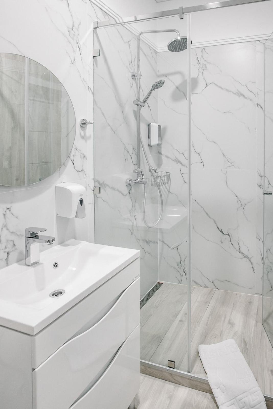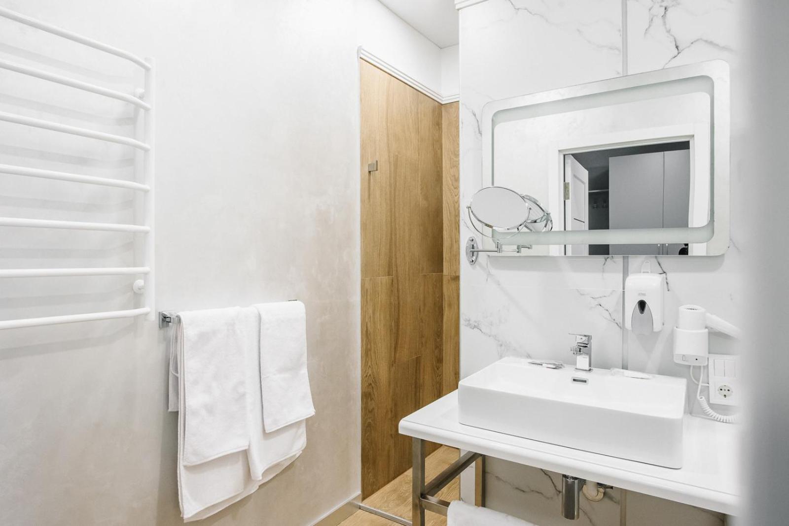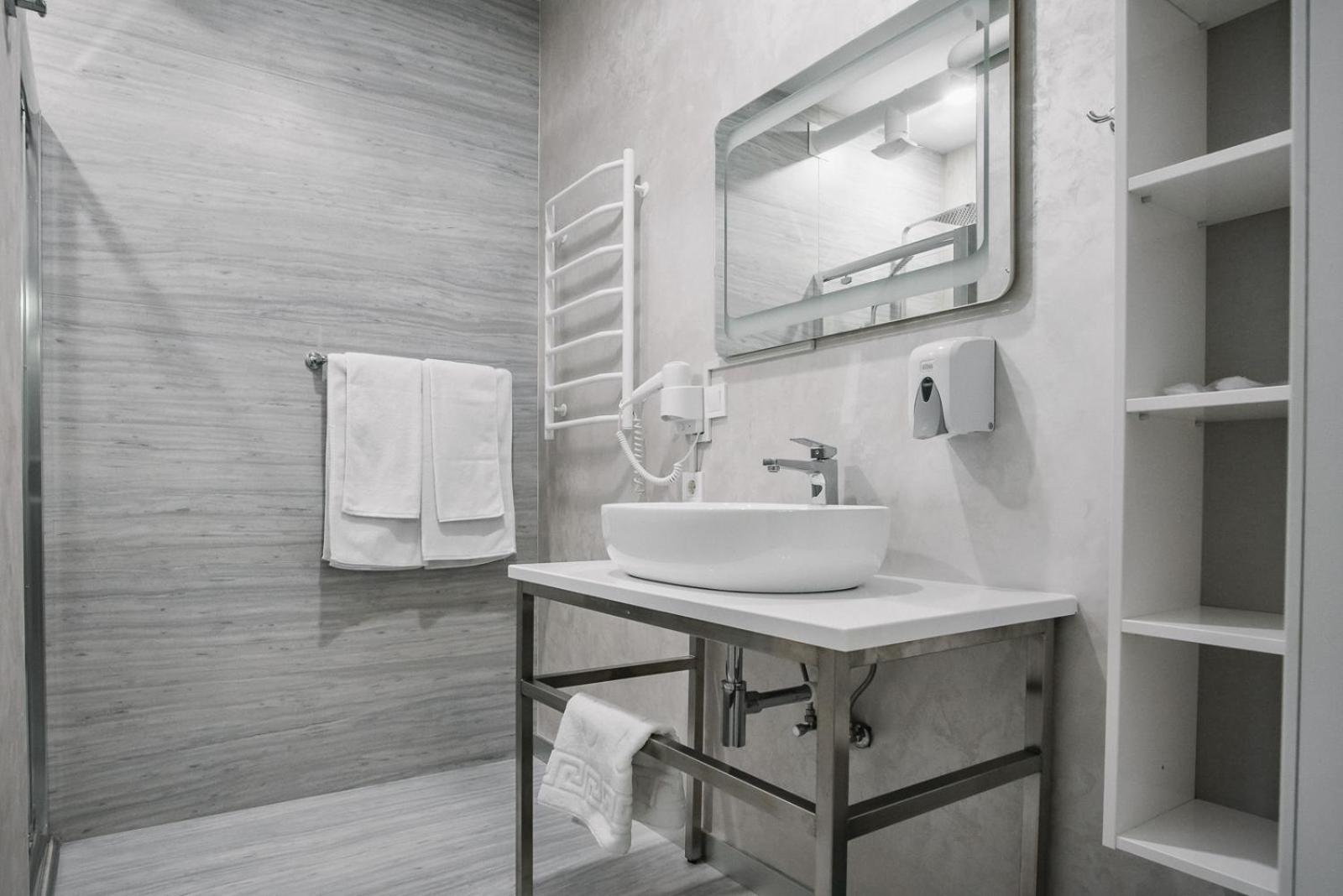 2. Горячую воду в умывальнике так и не дождались, в душе будете ждать её 20-25 минут. Неимоверно удобно.