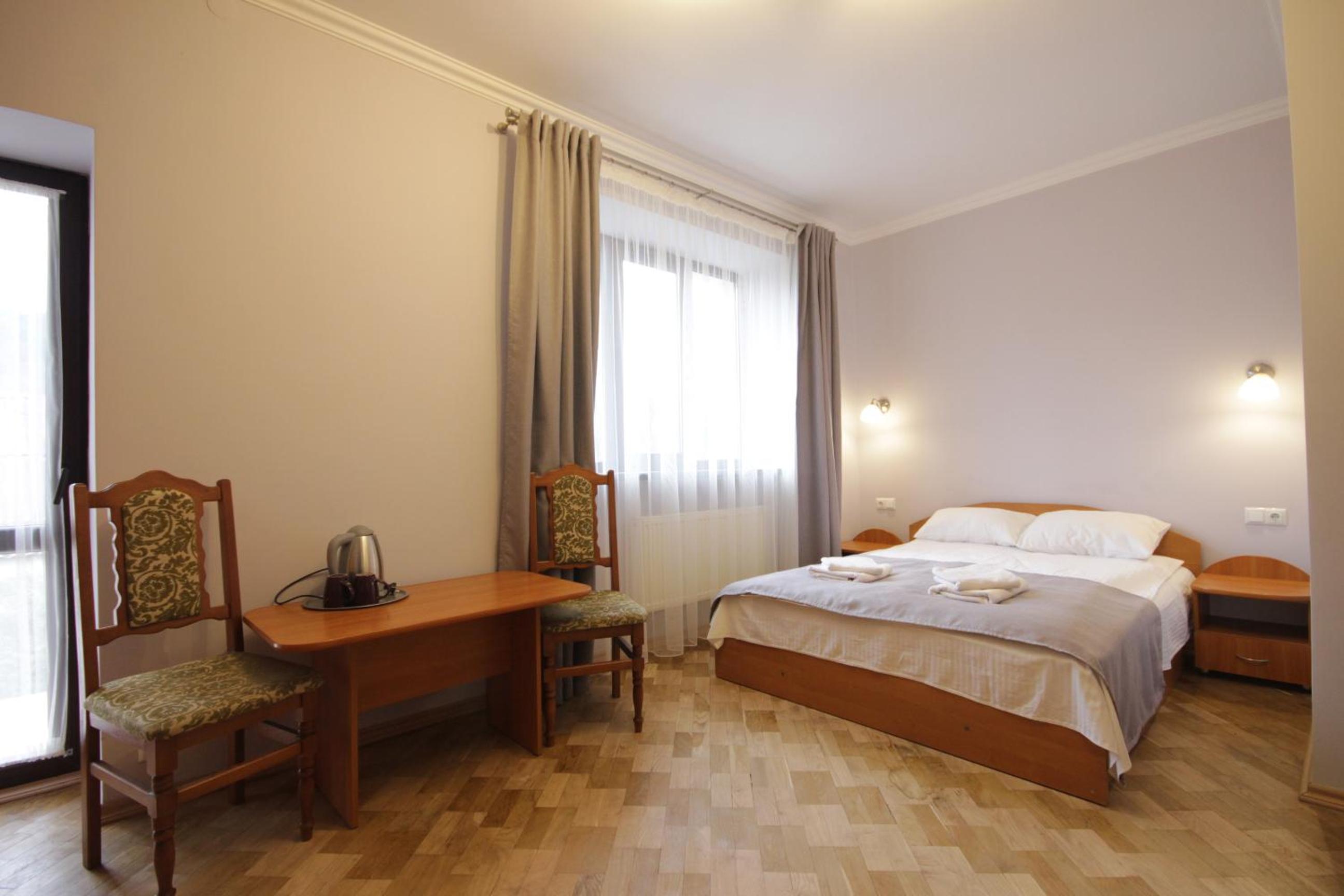 Experience comfort and elegance in our well-equipped rooms with modern amenities such as TV with satellite channels, kettle, and more.