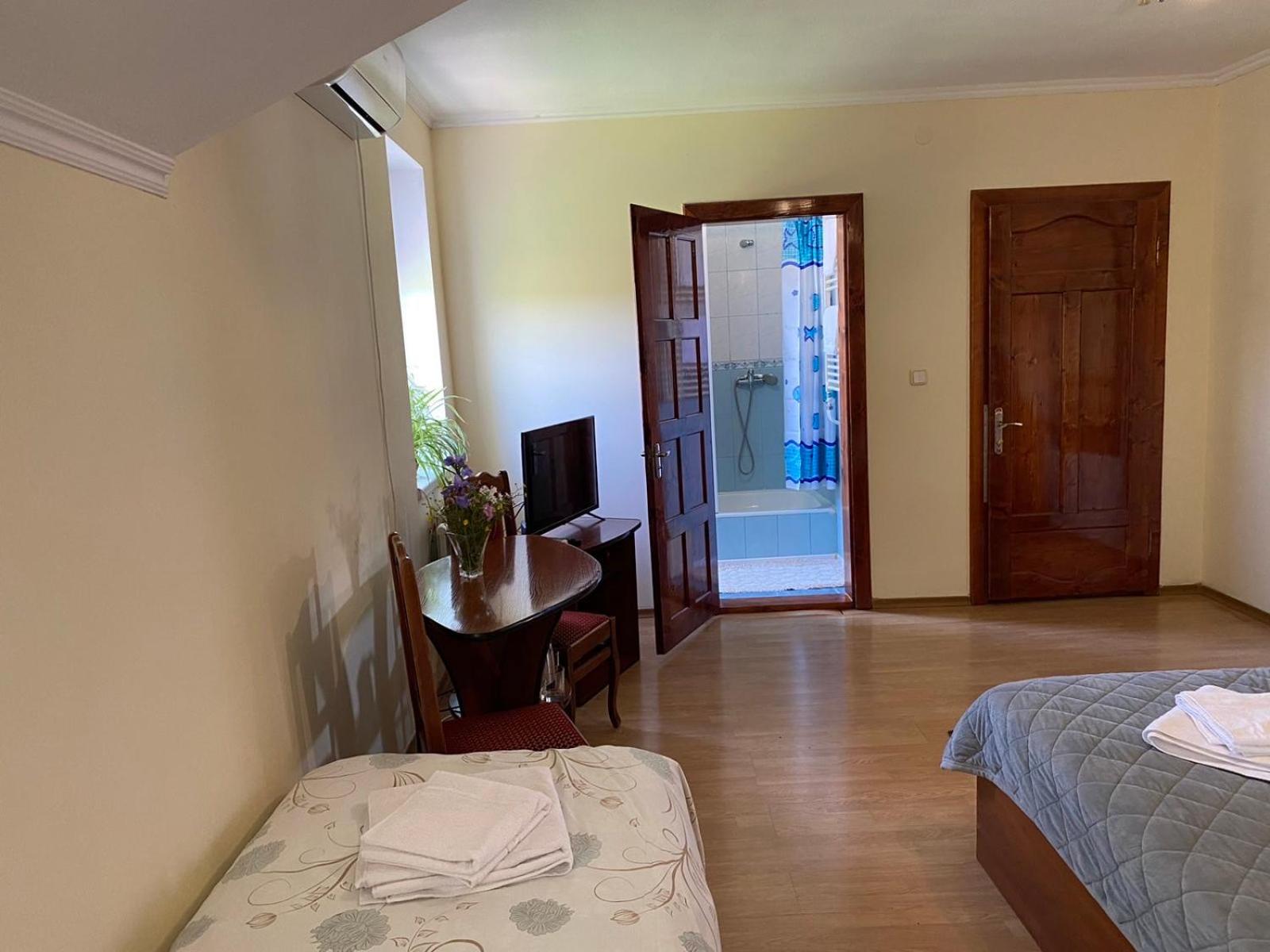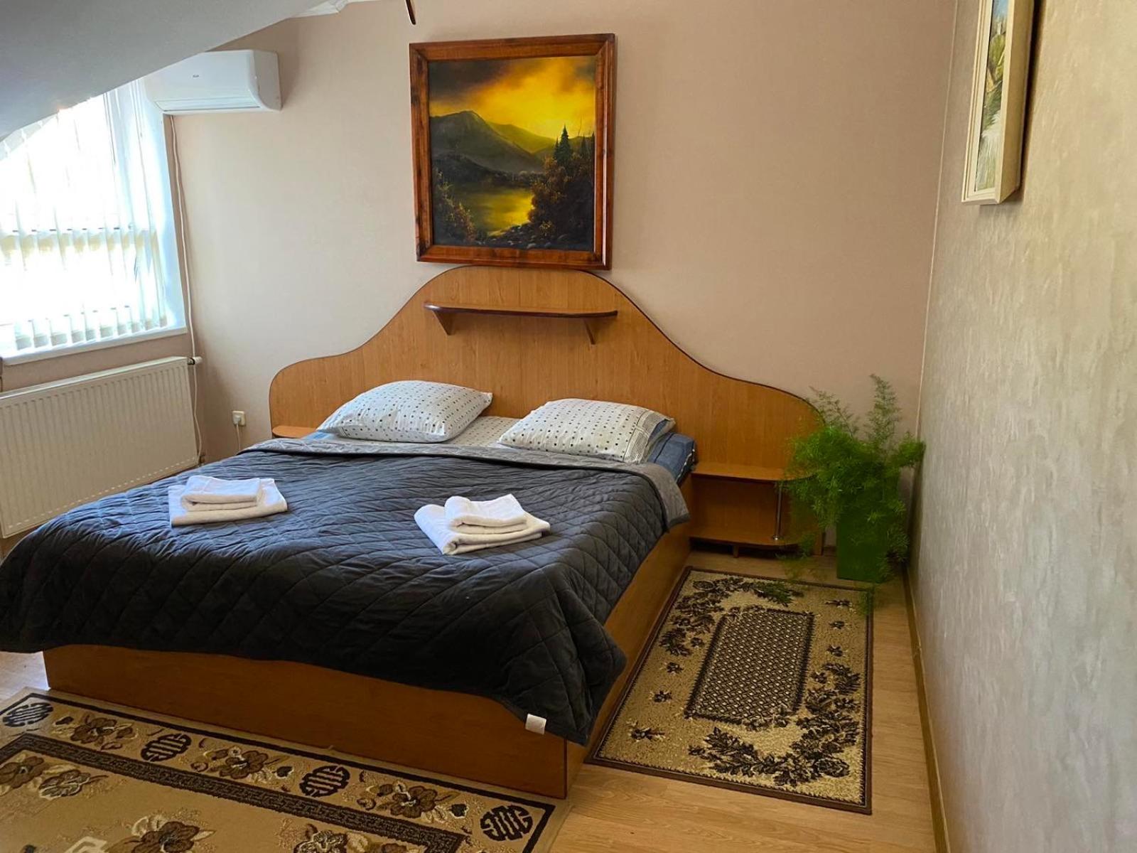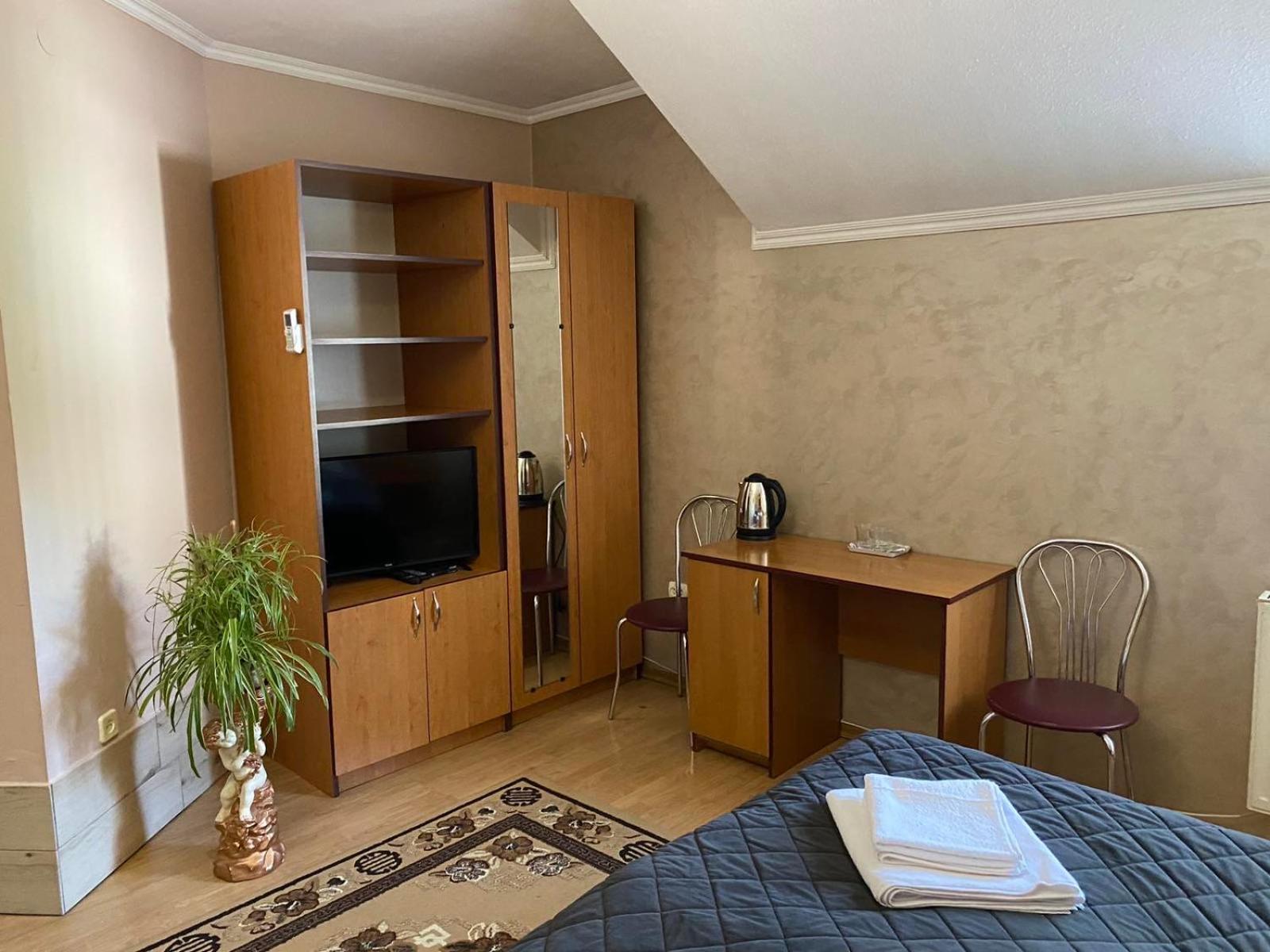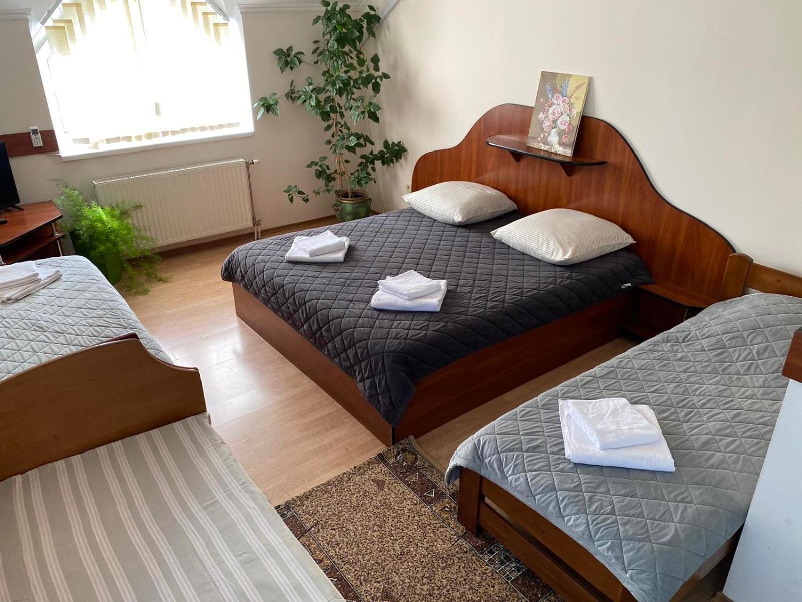 Номер, в якому ми зупинились не має свіжого ремонту, рушники після величезної кількості прання давно втратили свою свіжість та потрібний колір, не було повного комплекту постелі (чомуль на двохспальному ліжку було односпальне одіяло, навіть не полуторне), ванна кімната має ну дуууже втомлений вигляд(((