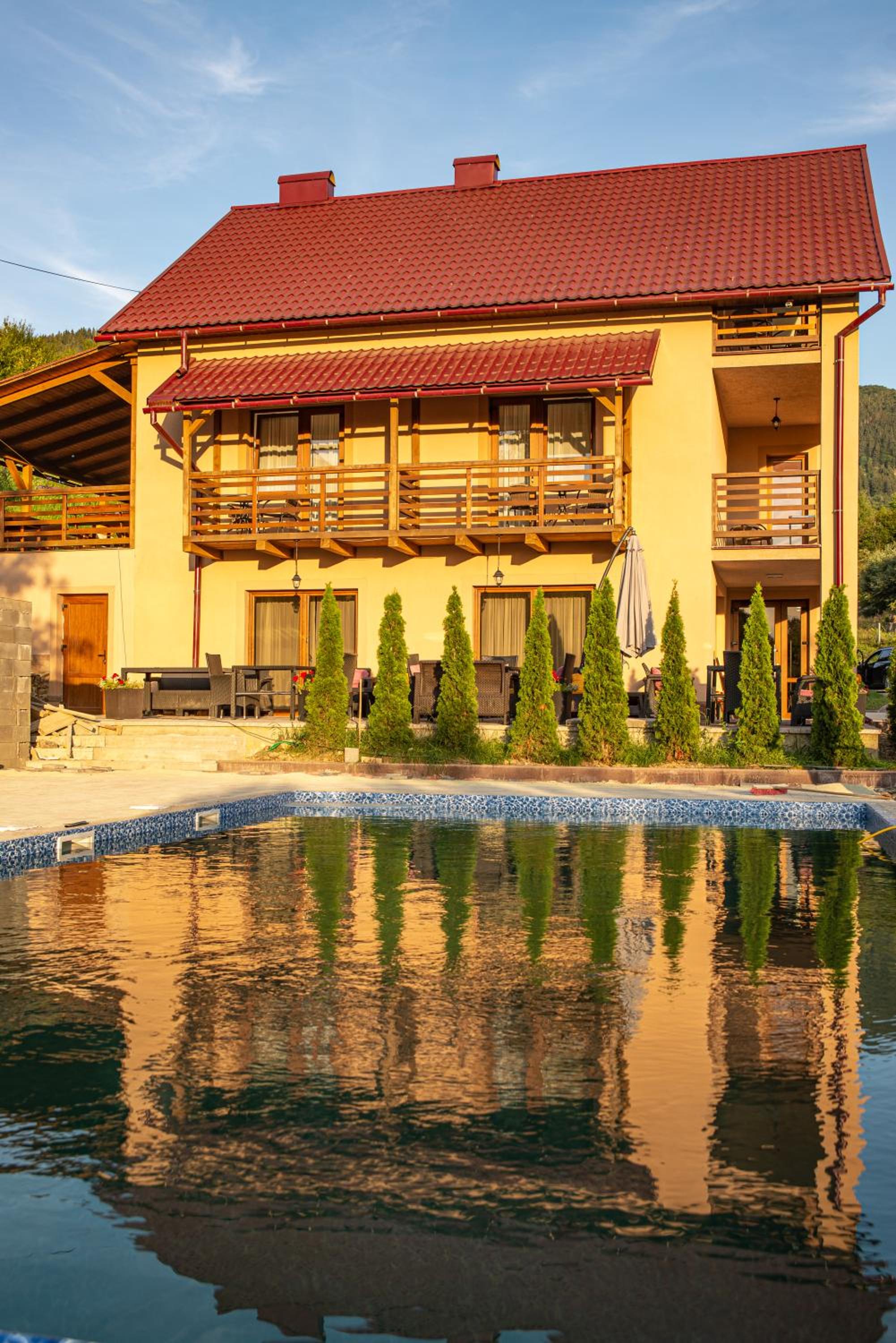 Чудовий готель сімейного типу. Дуже привітні власники Оксана Василівна та Ярослав Васильович. В кожен куточок вкладена душа і багато праці. Чистота всюди неймовірна, чудовий басейн з підігрівом, якісна їжа. Можна порибалити прямо на території готелю, є невеличкий холодильник зі смаколиками. В 10 хв їзди - підйомник з неймовірним краєвидом