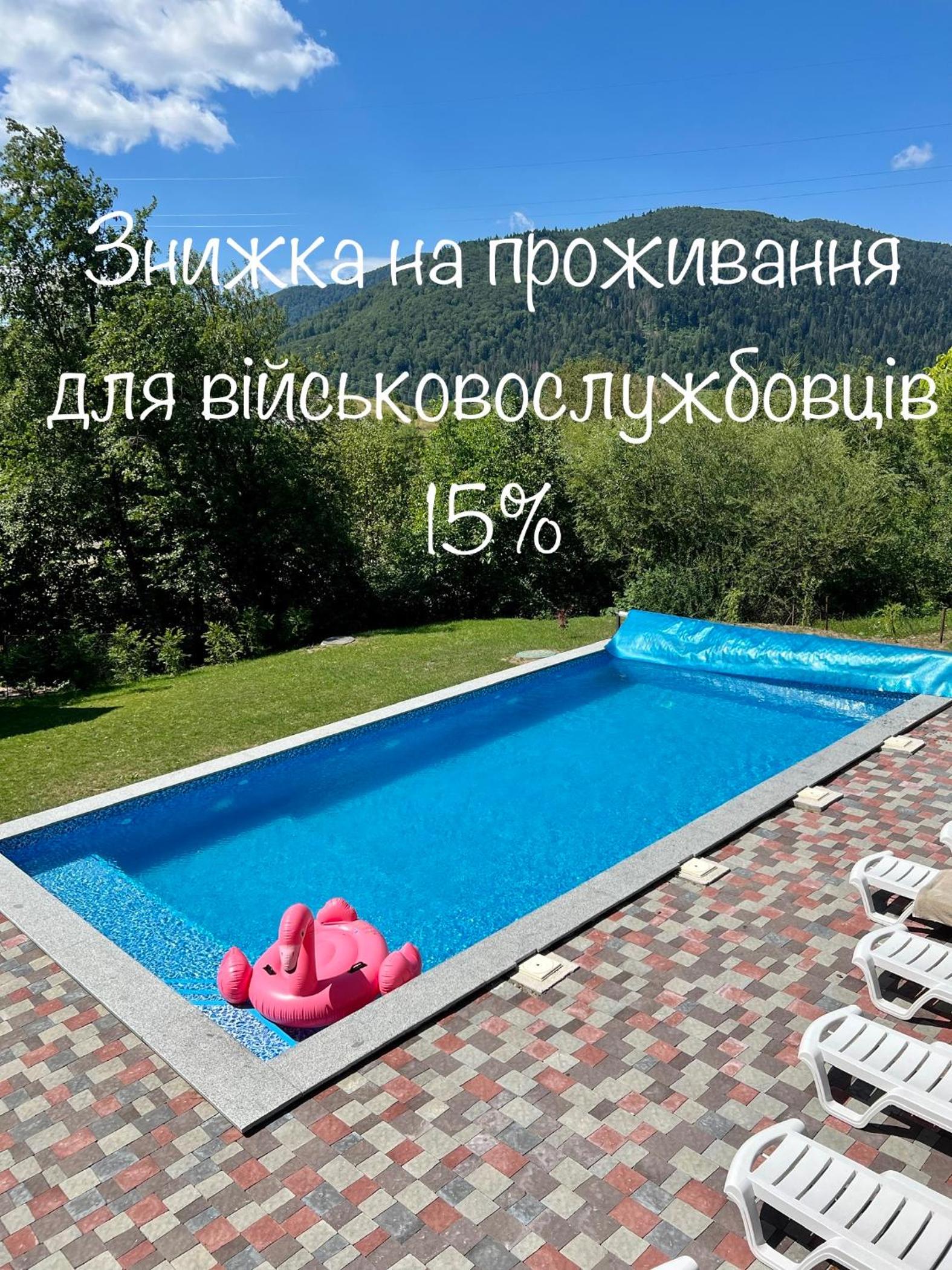 Дуже затишна, приємна атмосфера відпочинку. Персонал ввічливий, а власники завжди готові допомогти. Гарна природа та басейн з підігрівом зроблять ваш відпочинок прекрасним.