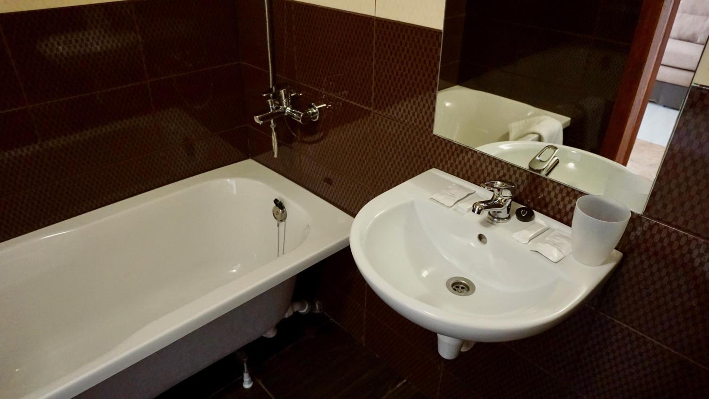 Далі, з ранку, ти хочешь випити щось горяче, в води питної не має. Мені ще запропонували набрати воду з крану. Люди, у вас з крану тече рижа і дуже жахливо пахнуща вода!!!