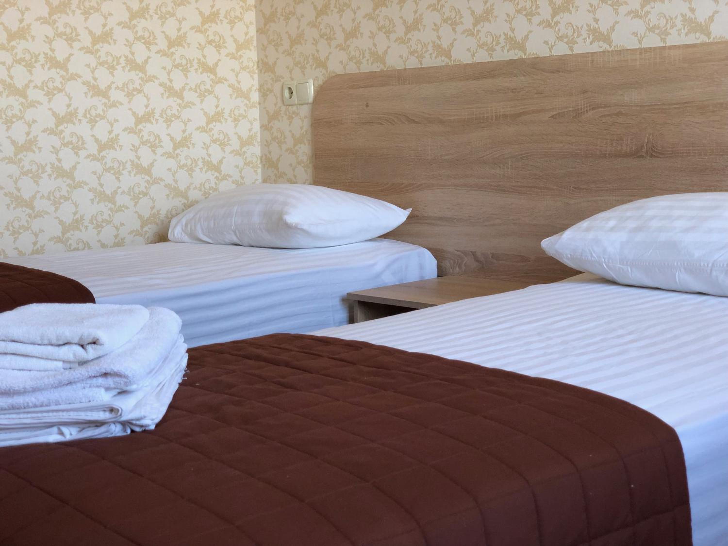 Коли попросили у адміністратора видати ще один набір, де дали постіль з п'ятами, полотенце риже, на вигляд не чисте. Пододіяльник був меншим за одіяло. Коли лягли спати, десь о 22.30 з'явився дуже сильний запах газу, в ми були на 3 поверсі. Нам сказали що хтось не закрив газовий балон. Вибачаюсь, готель використовує газові балони, а це безпечно? Те що адміністрація повинна була хоча попередити, я вже про це не кажу. В коридорі був дуже сильний запах газу і ніхто з персоналу навіть вікон неповідкривав. Просто жах!
