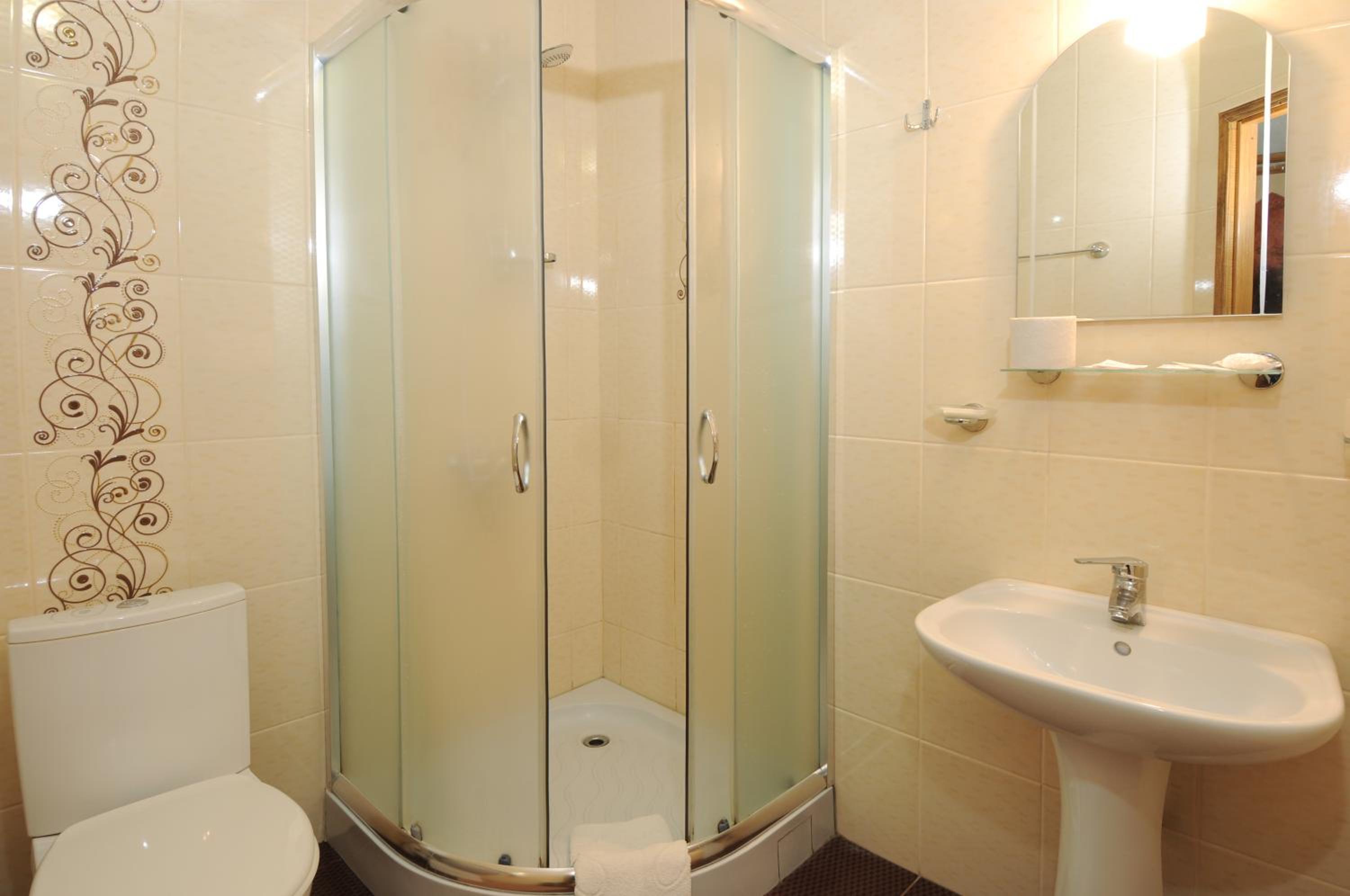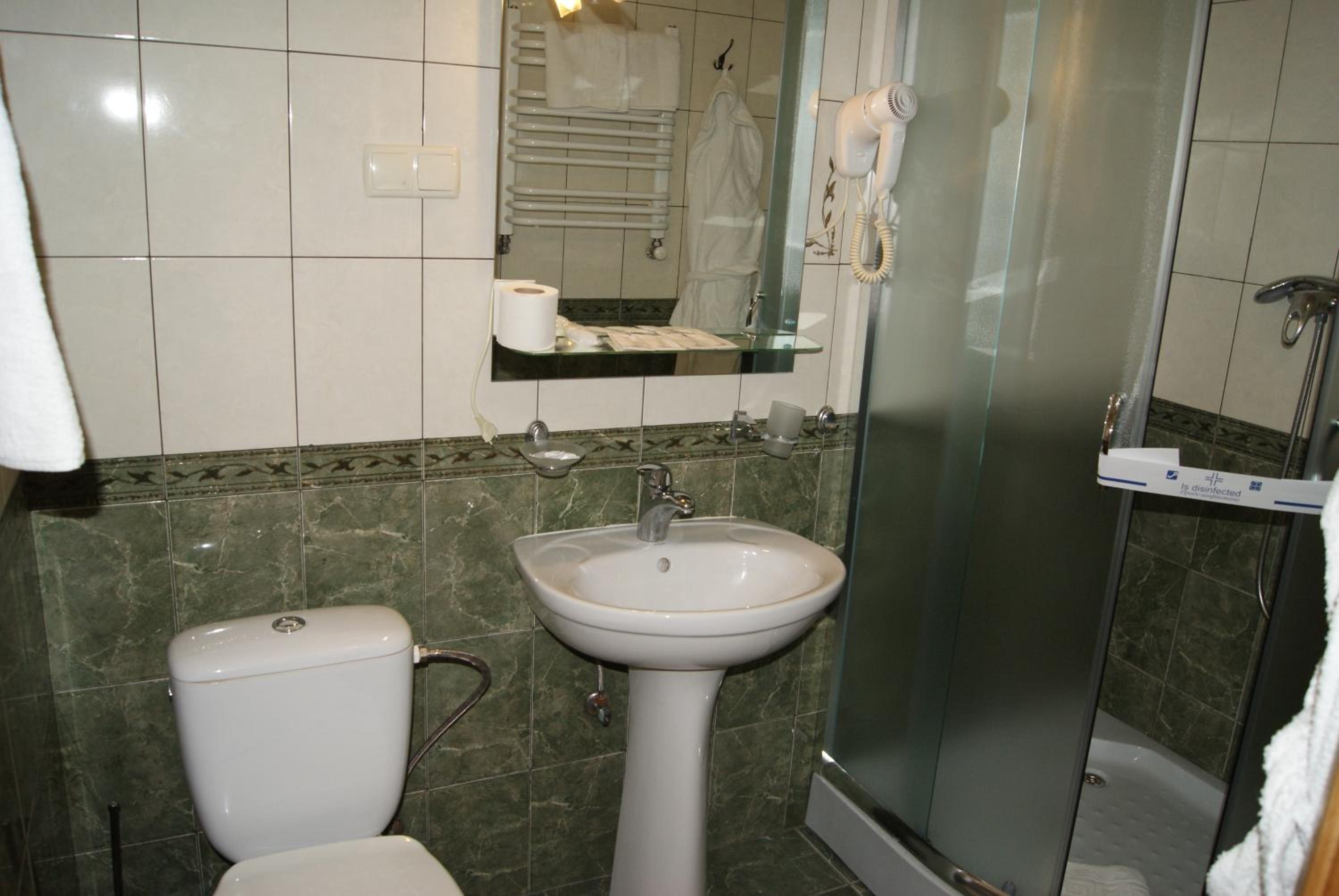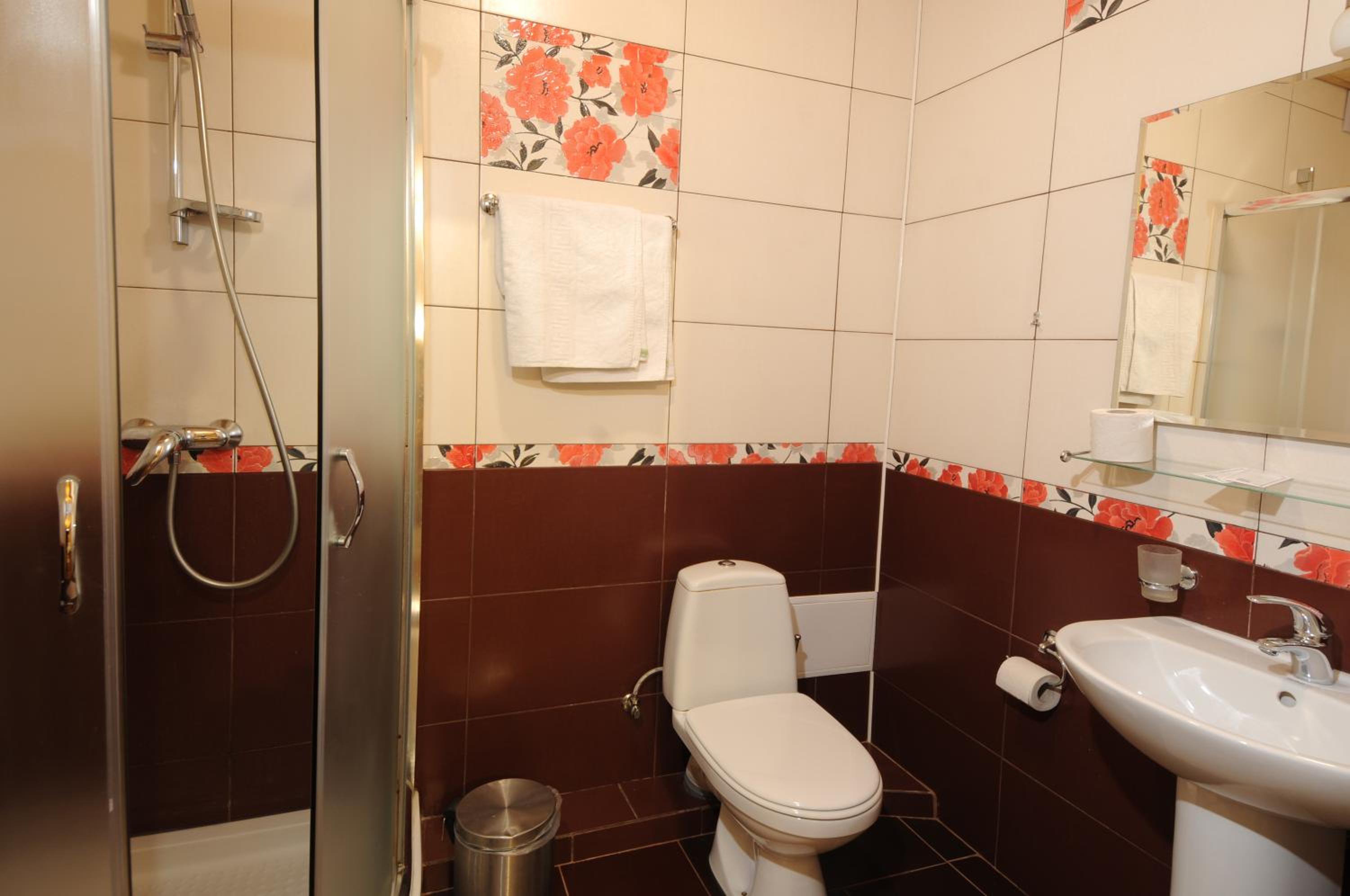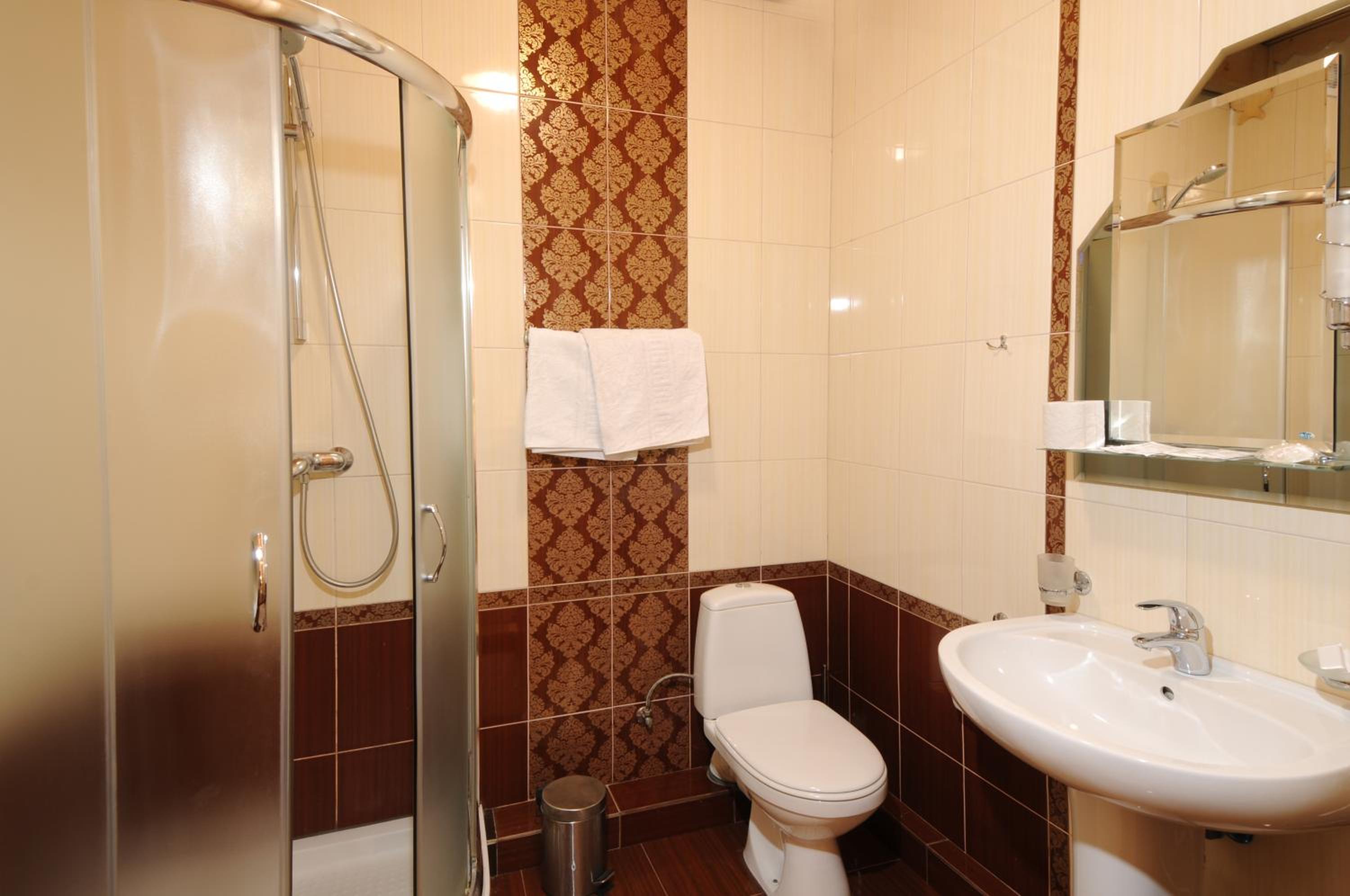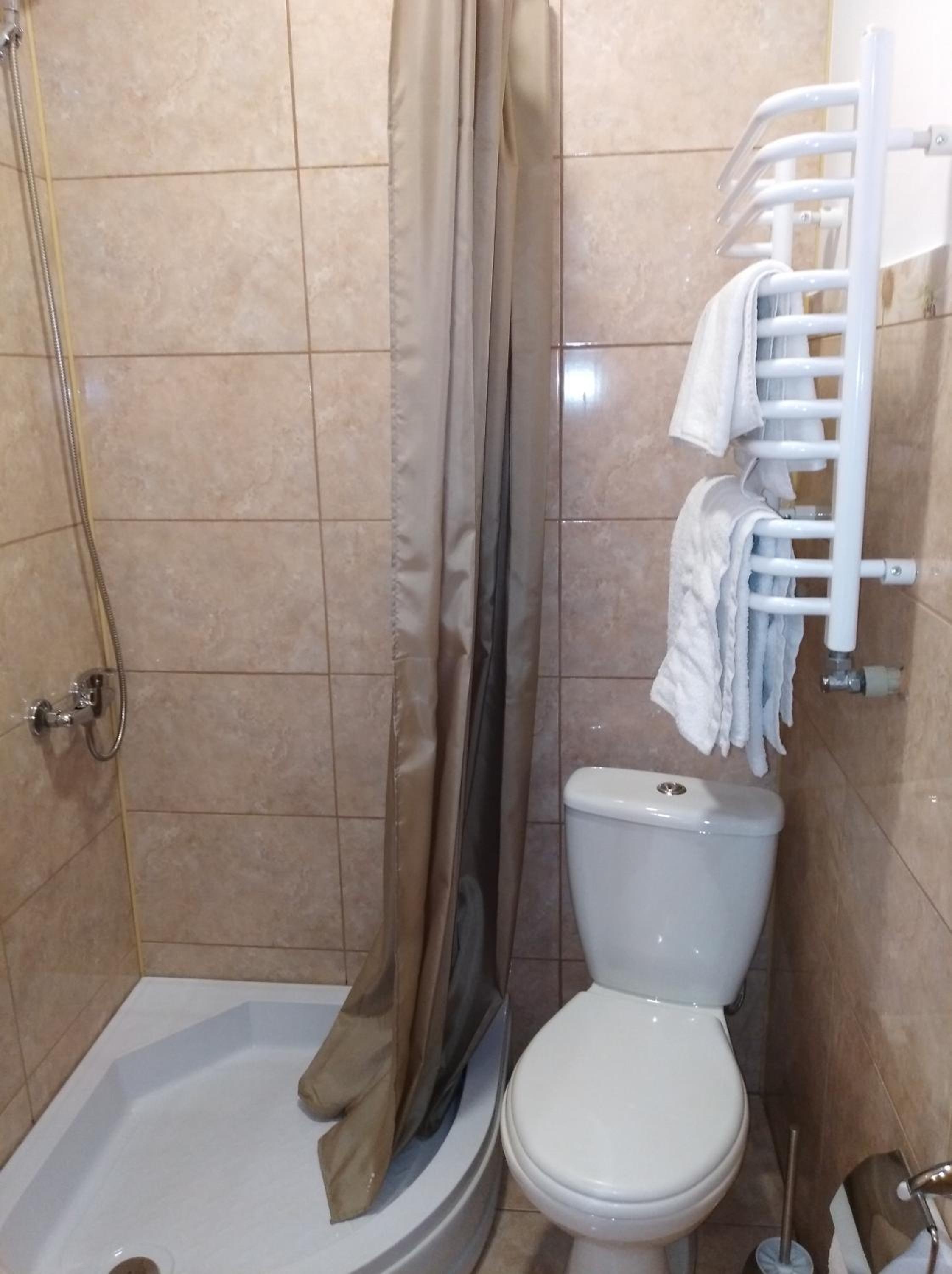 Маленький номер (економ). Відсутність місця де поставити валізу). Трошки протікає душ, тому в ванні/душовій часто мокро на підлозі.