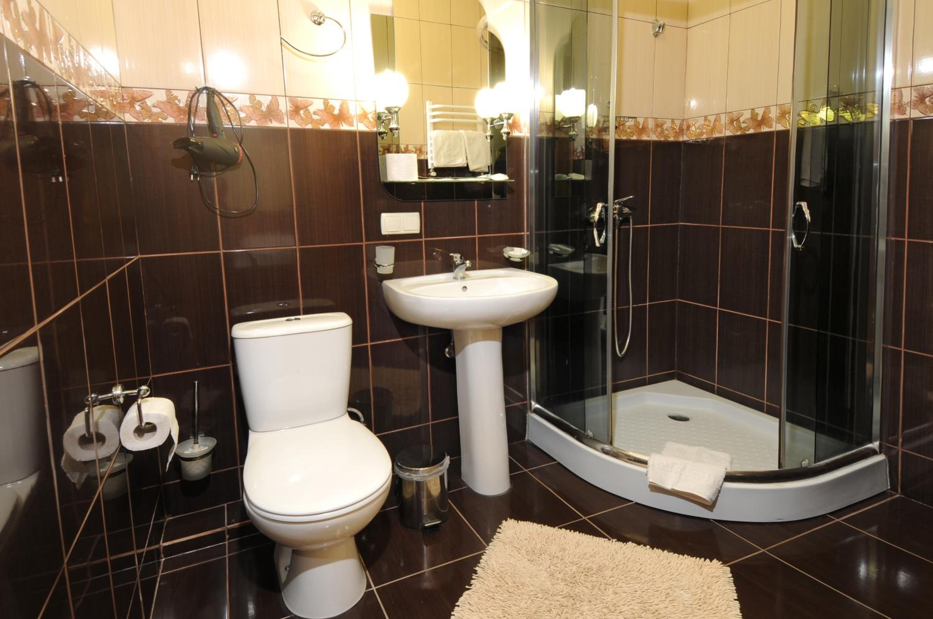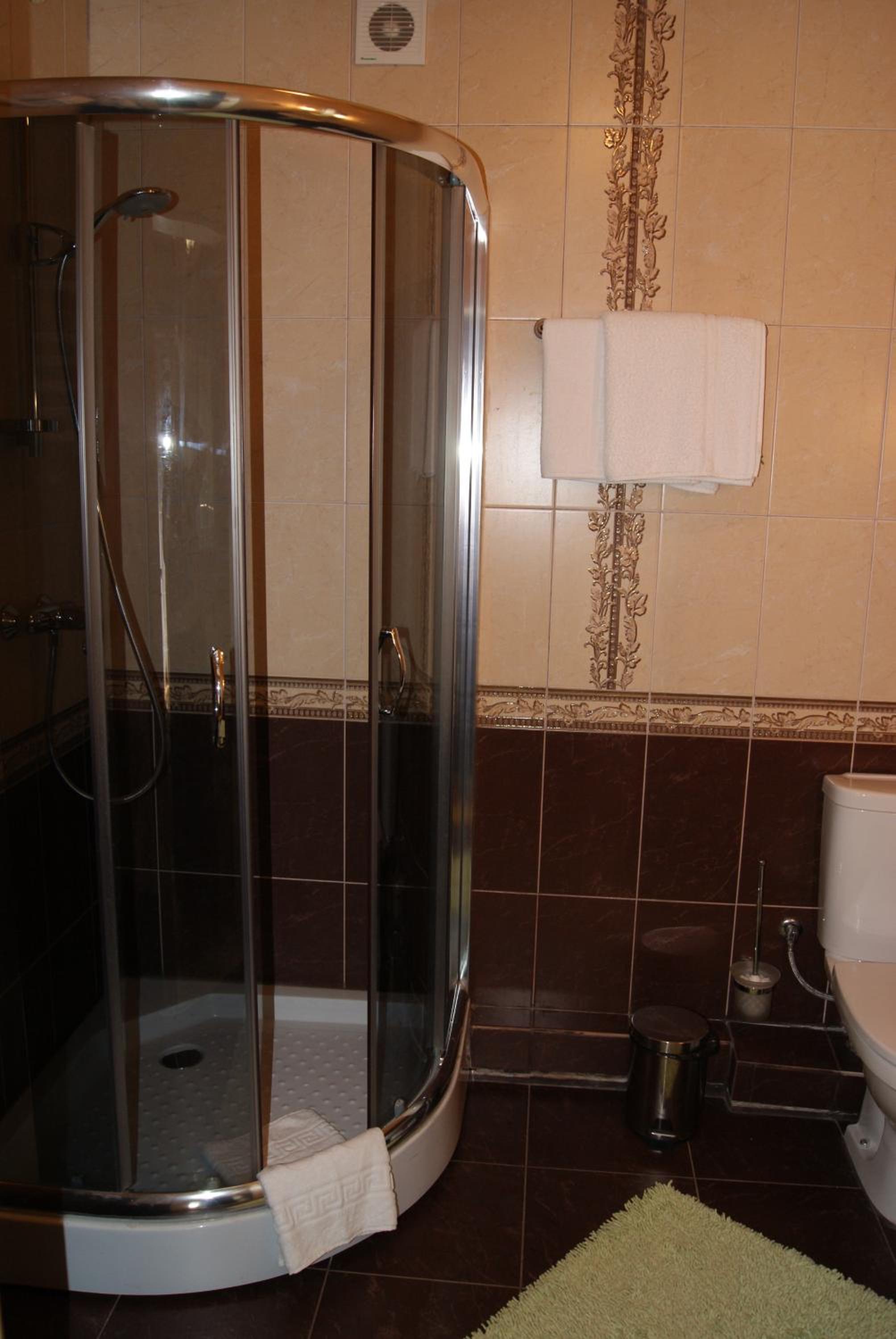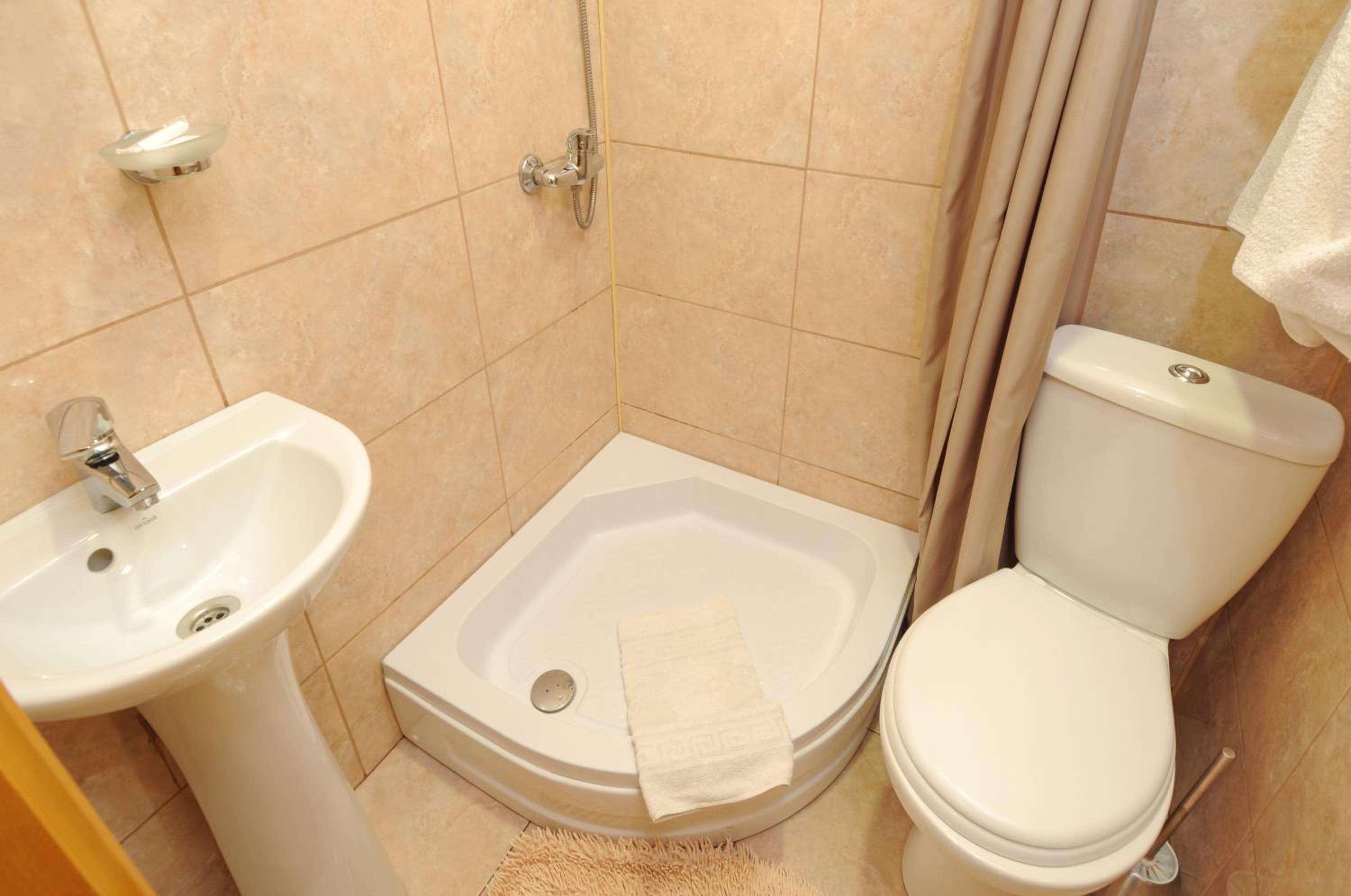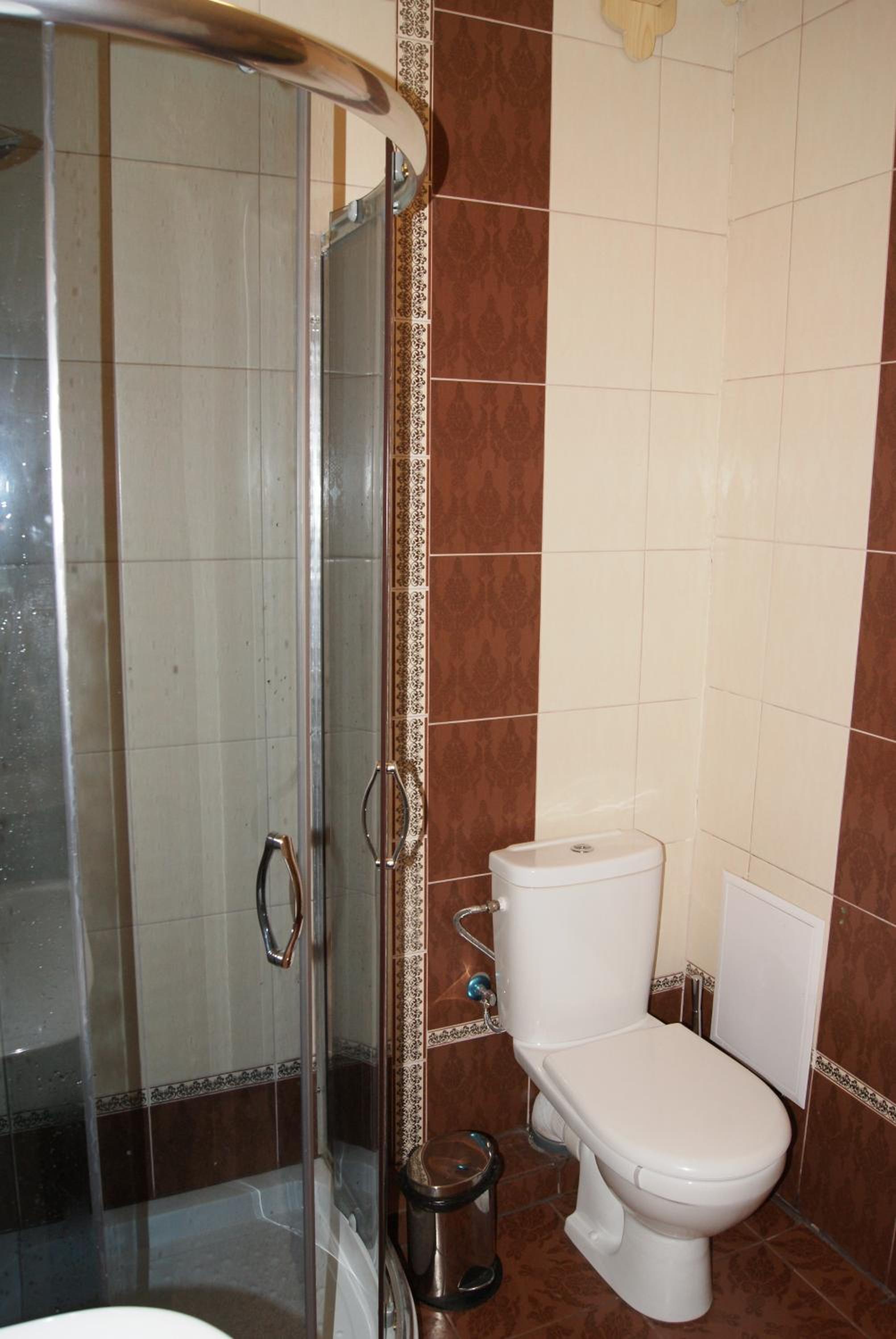 Маленький номер (економ). Відсутність місця де поставити валізу). Трошки протікає душ, тому в ванні/душовій часто мокро на підлозі.