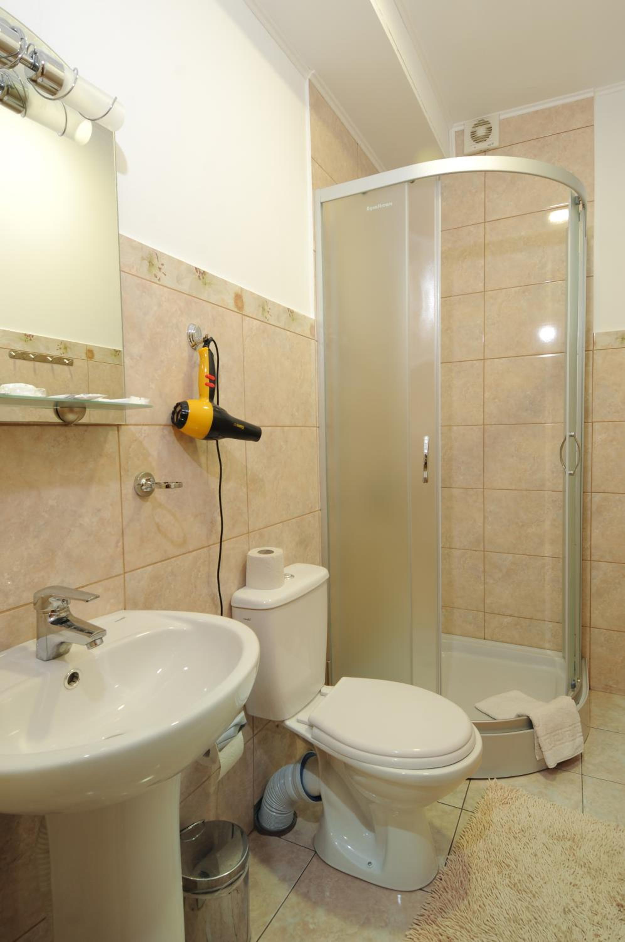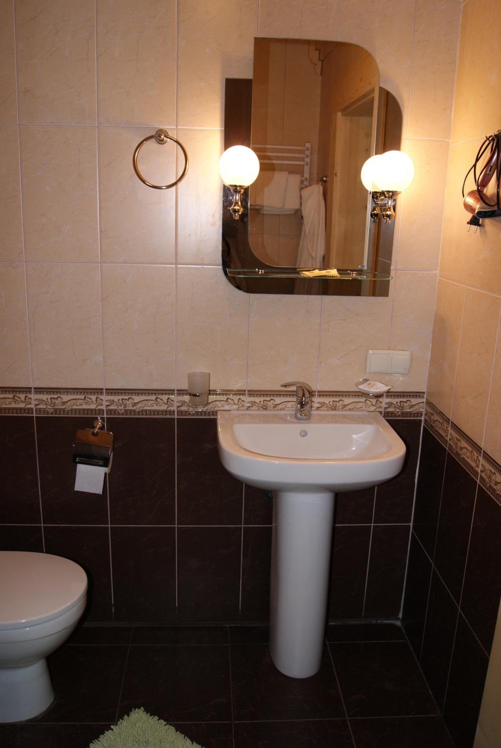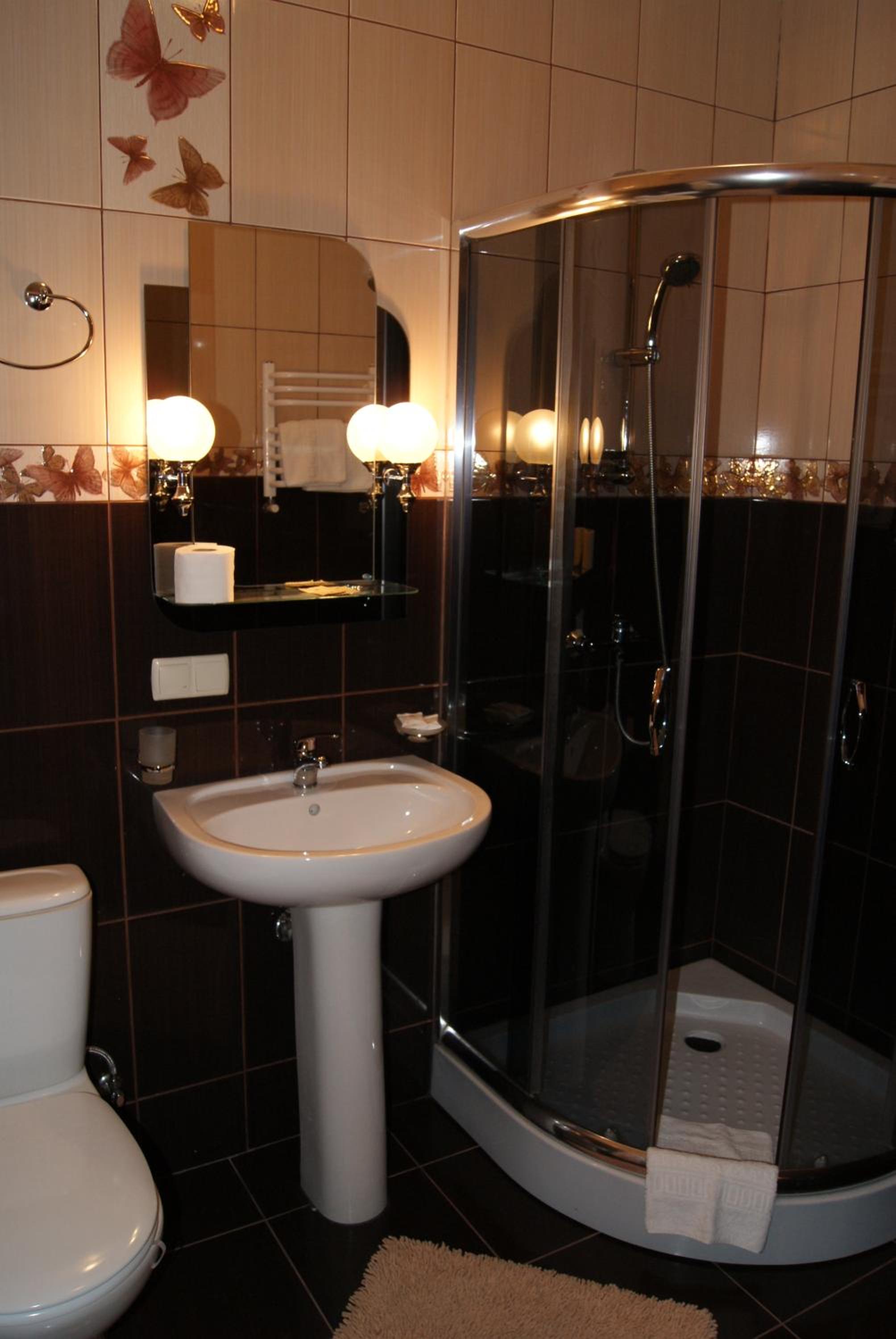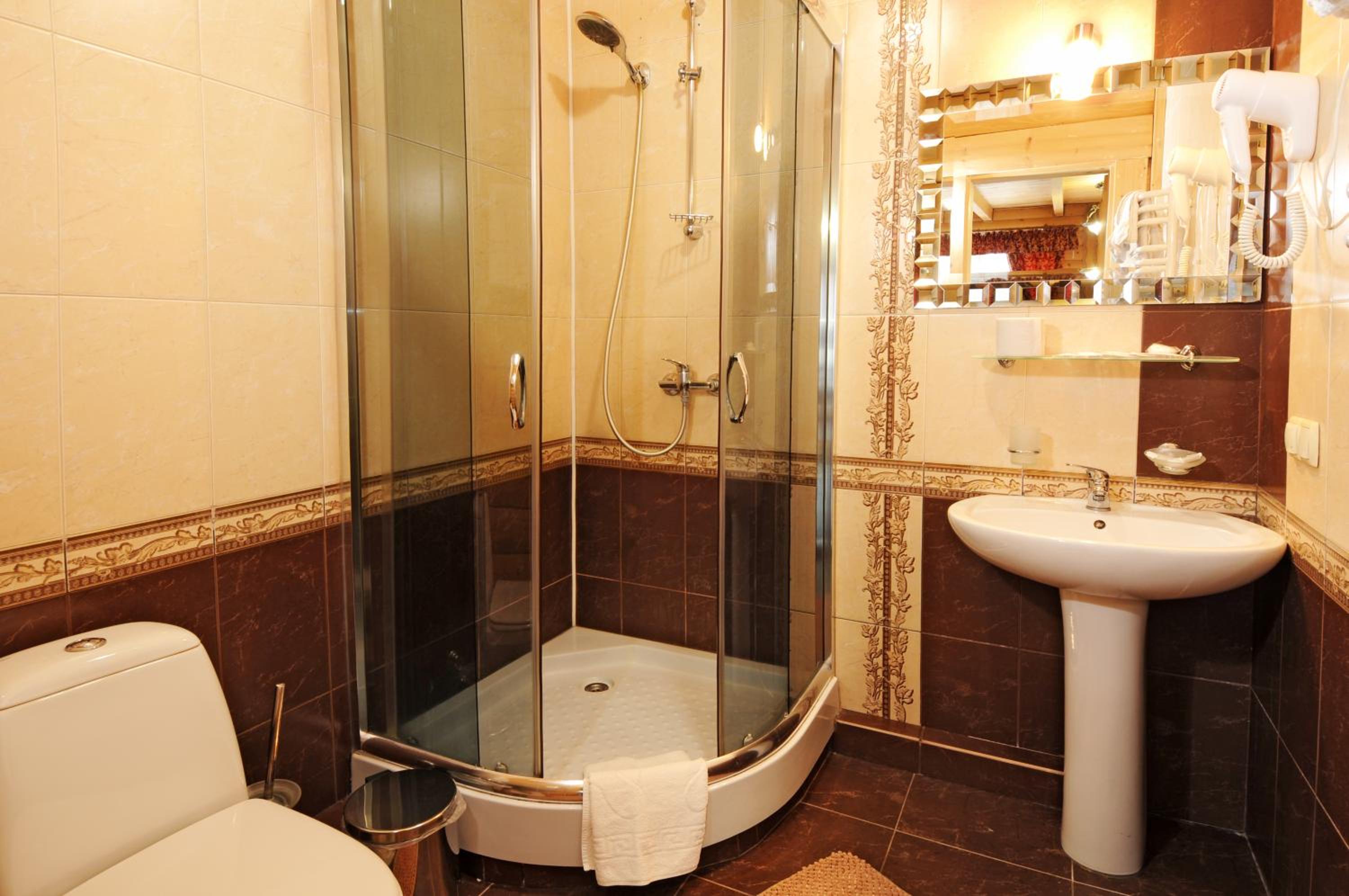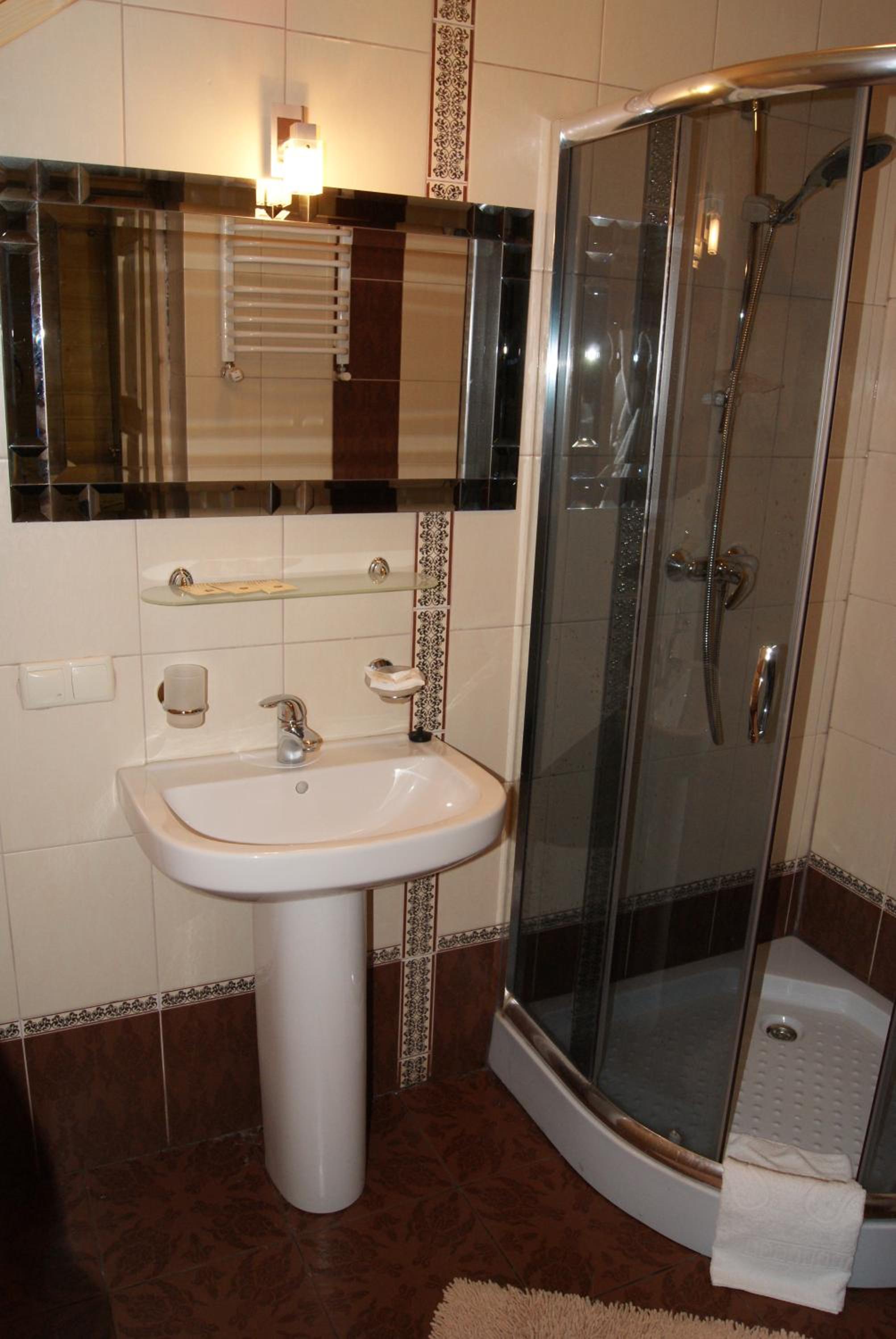 Маленький номер (економ). Відсутність місця де поставити валізу). Трошки протікає душ, тому в ванні/душовій часто мокро на підлозі.