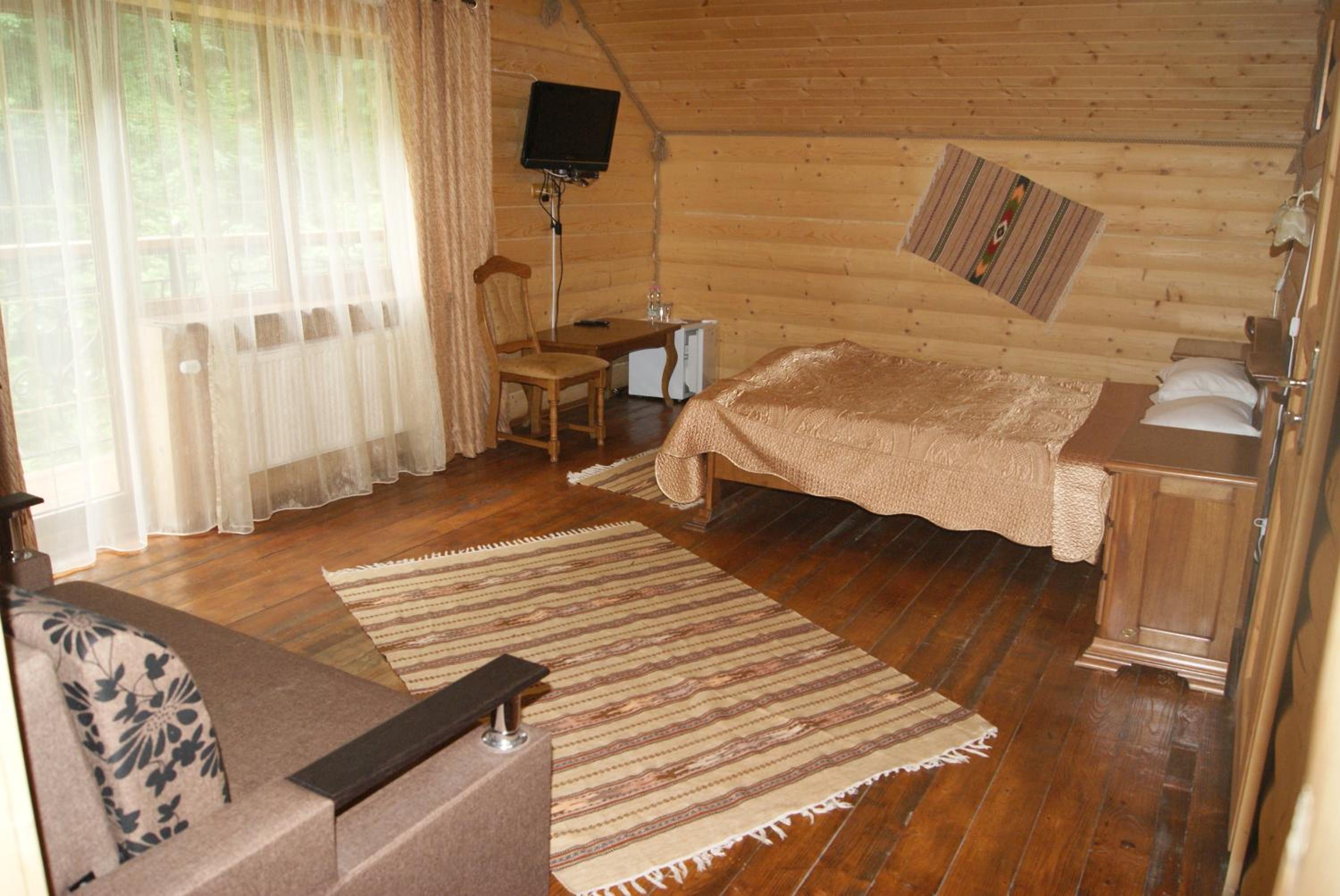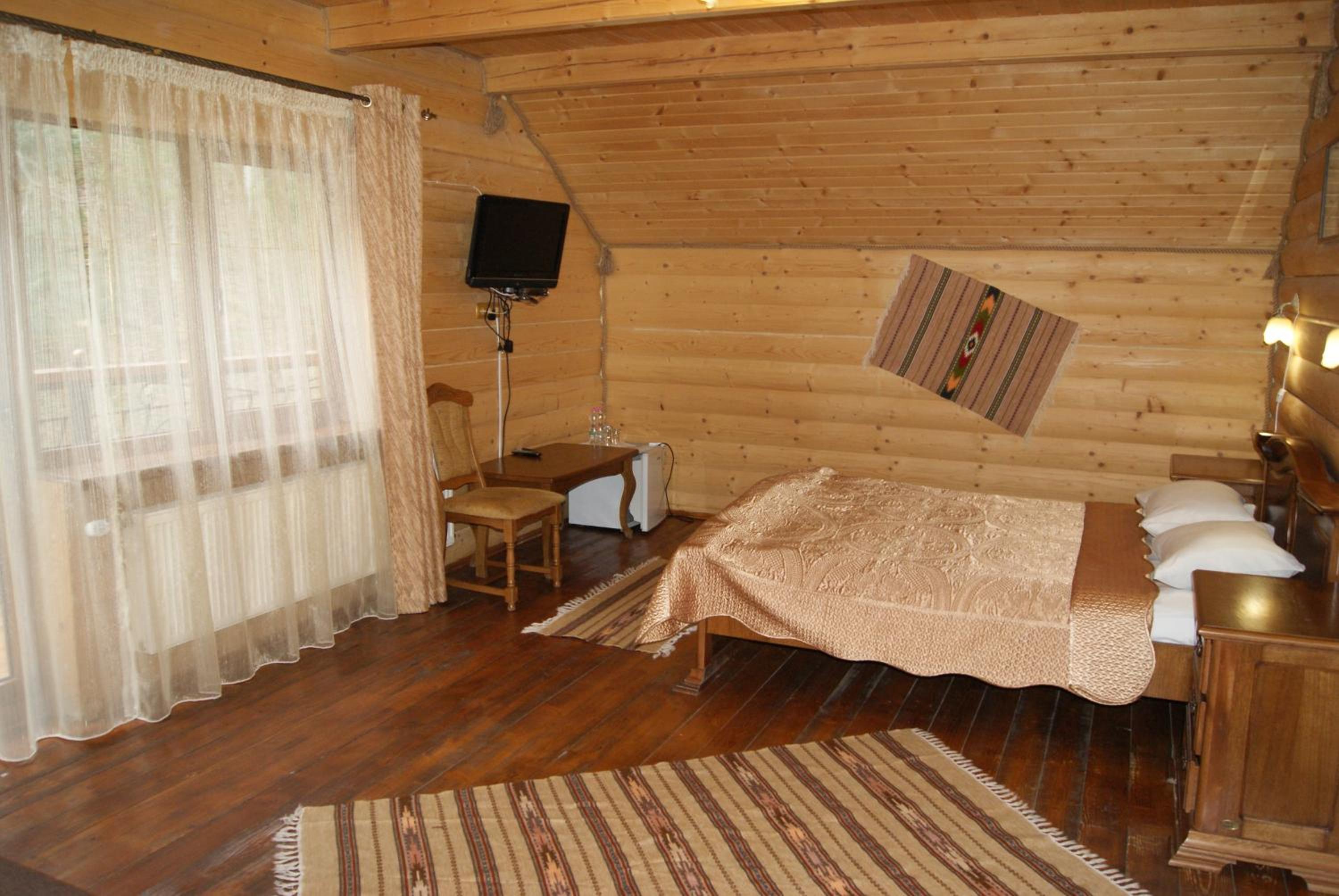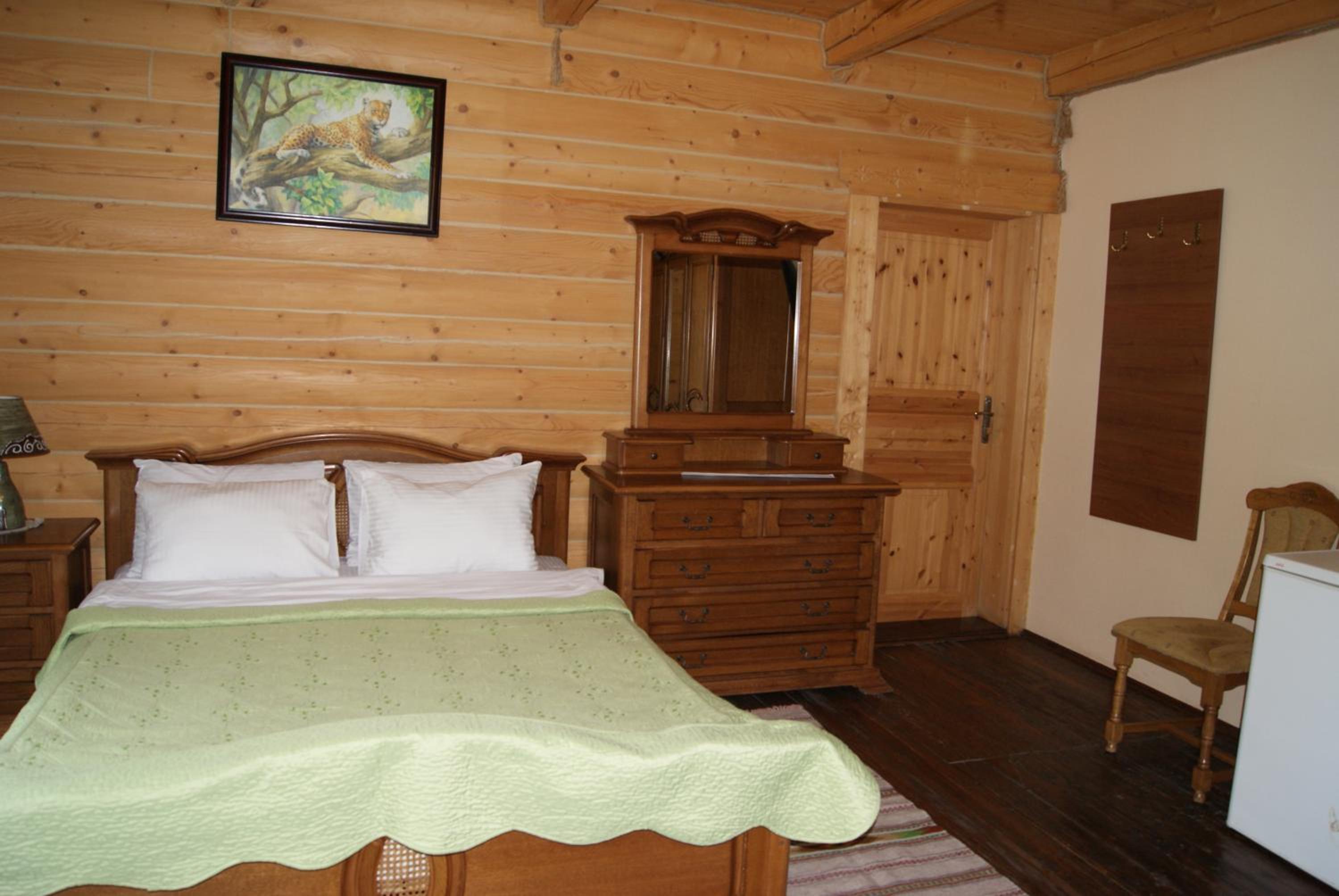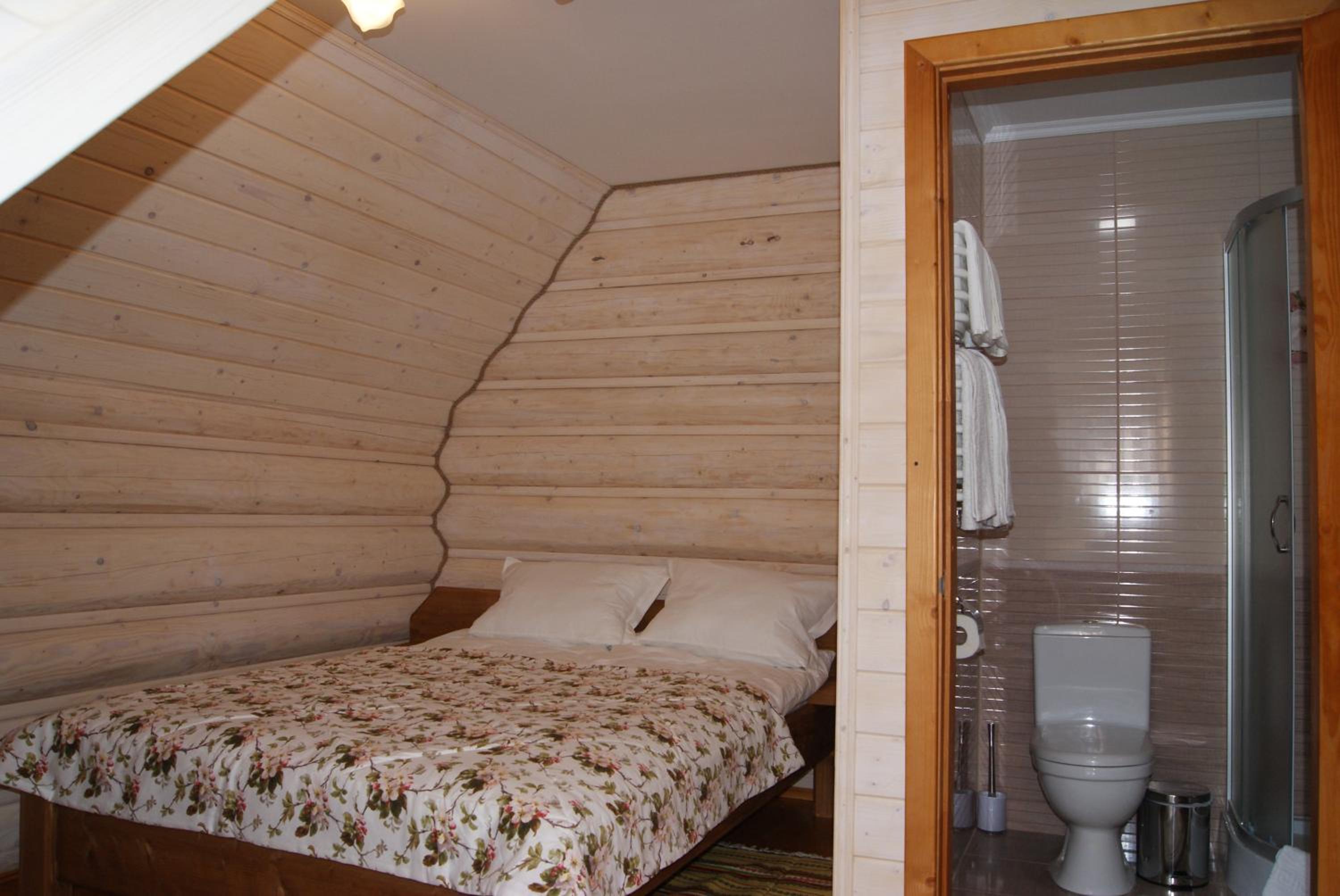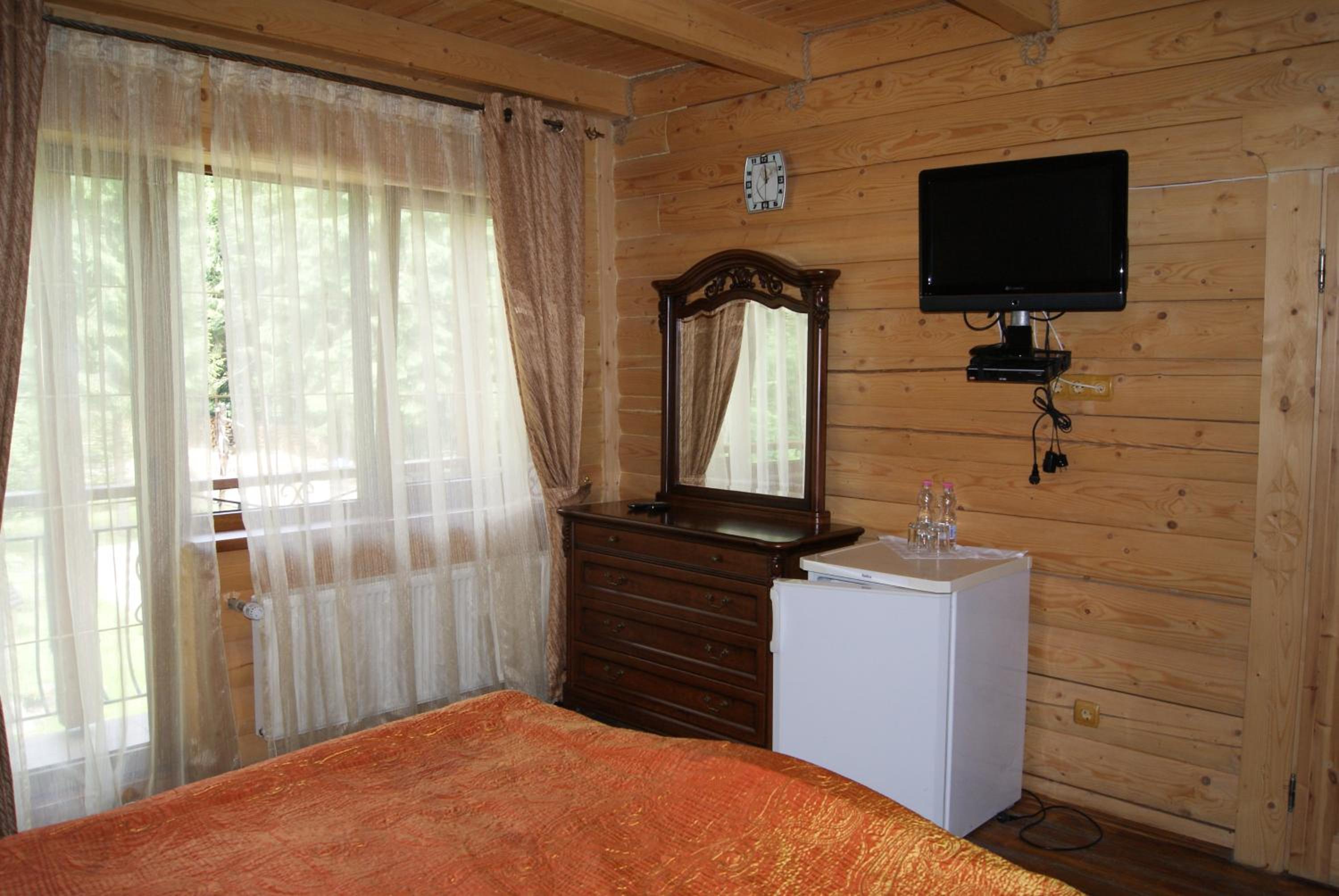 Хто шукає тиші - Вам сюди. Ліс, урочище, відсутність мобільного зв'язку. В номері пахне деревом, є чисті рушники, фен, вода, посуд, засоби для душу. Є своя колиба, кафе. Паркінг.