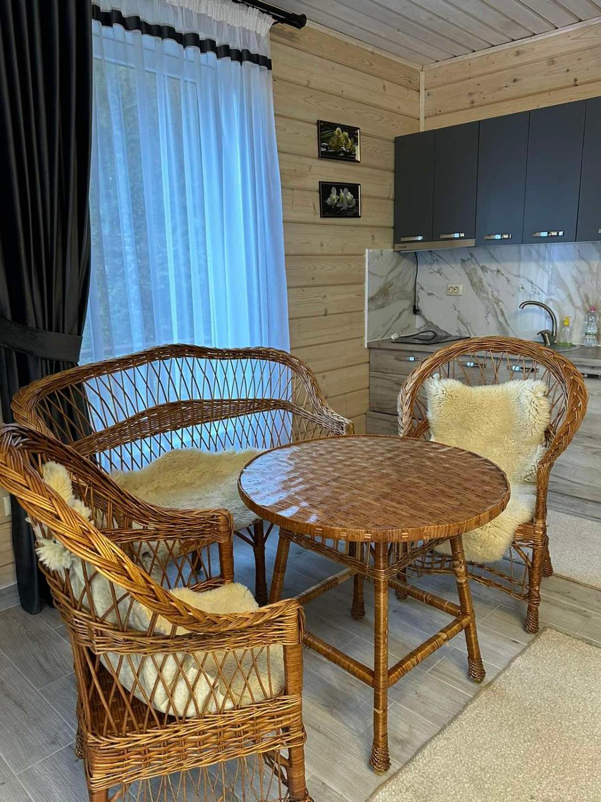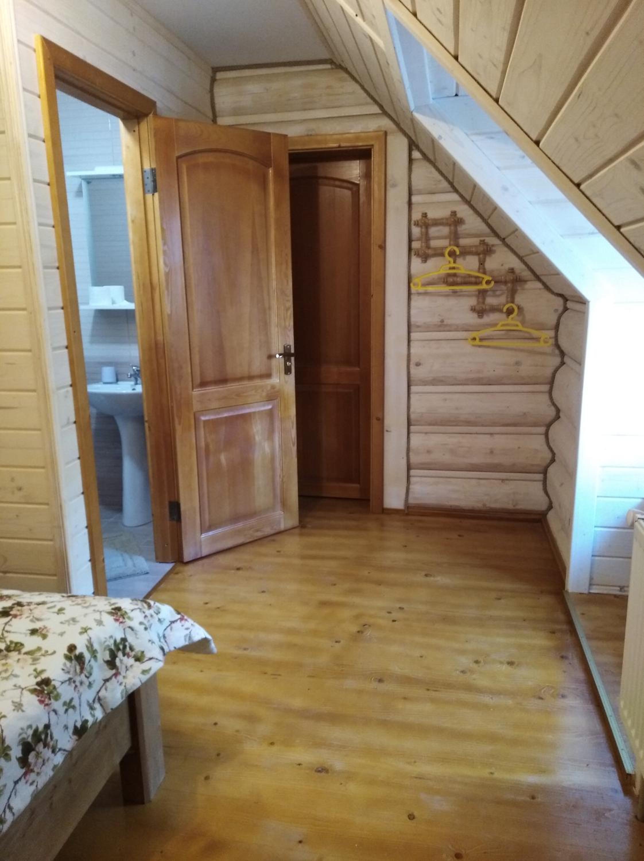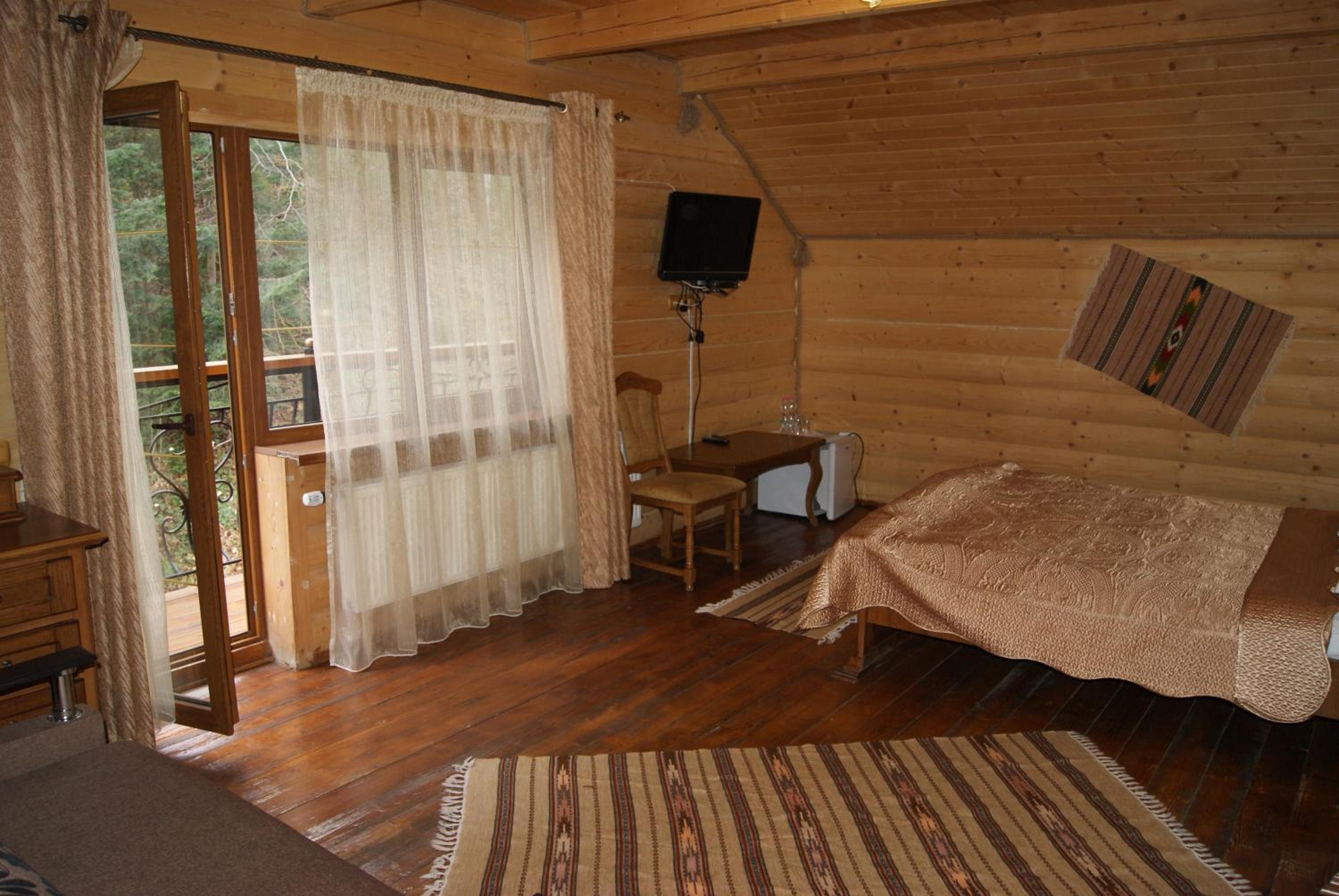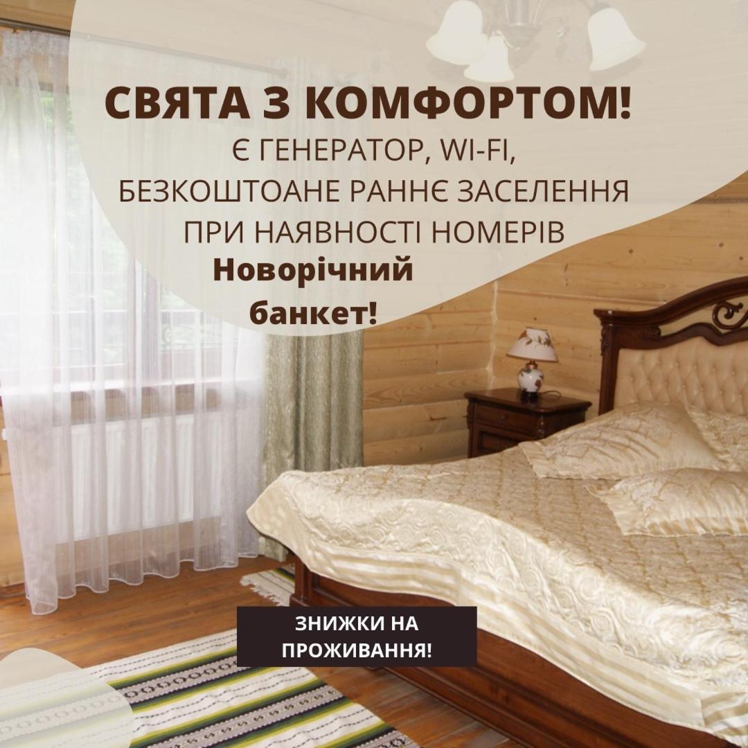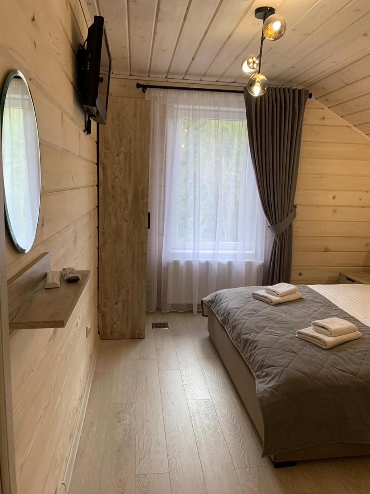 Хто шукає тиші - Вам сюди. Ліс, урочище, відсутність мобільного зв'язку. В номері пахне деревом, є чисті рушники, фен, вода, посуд, засоби для душу. Є своя колиба, кафе. Паркінг.