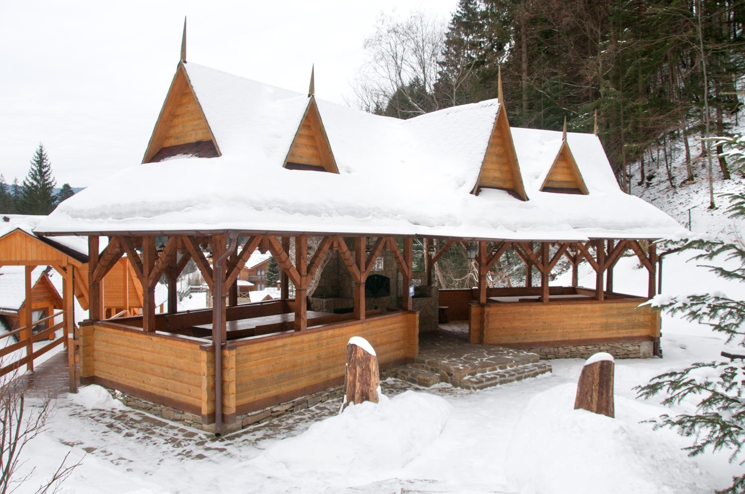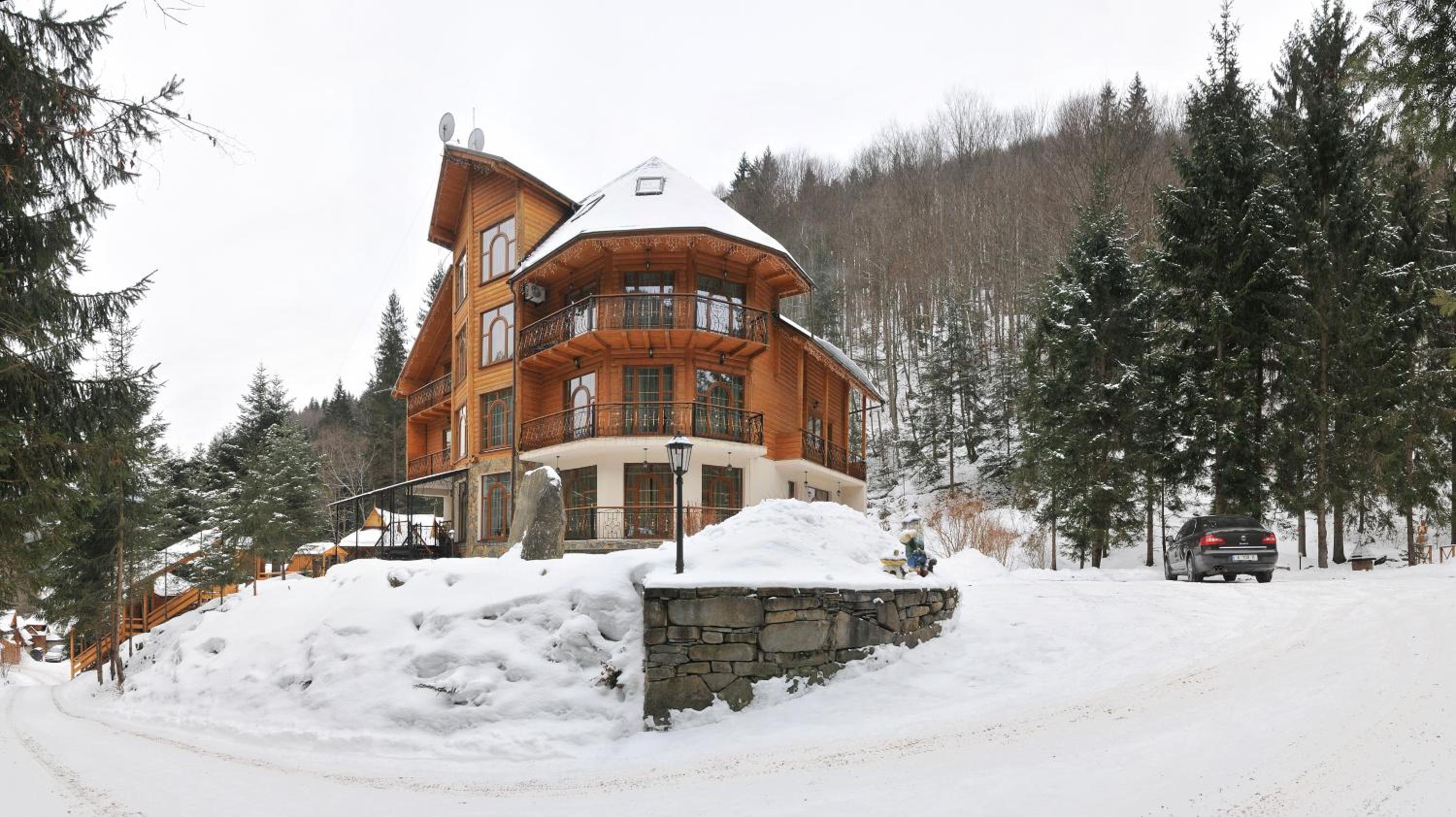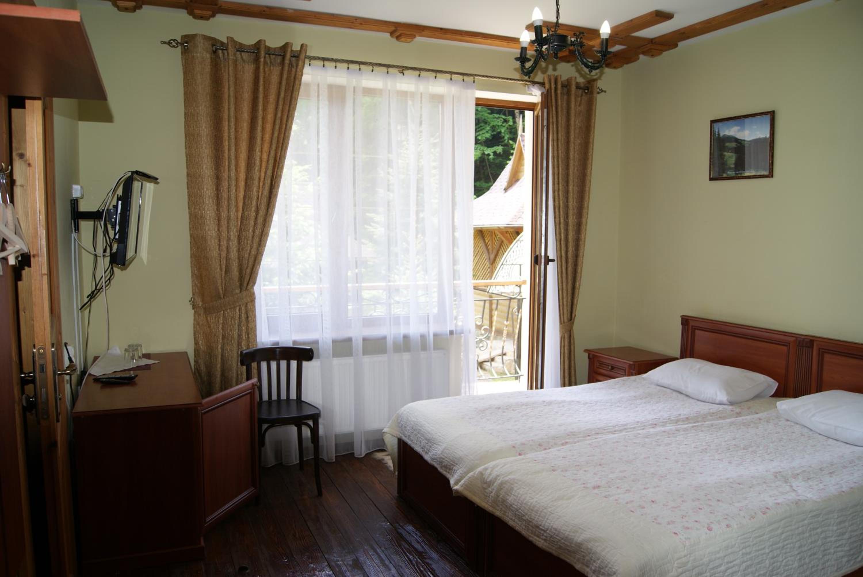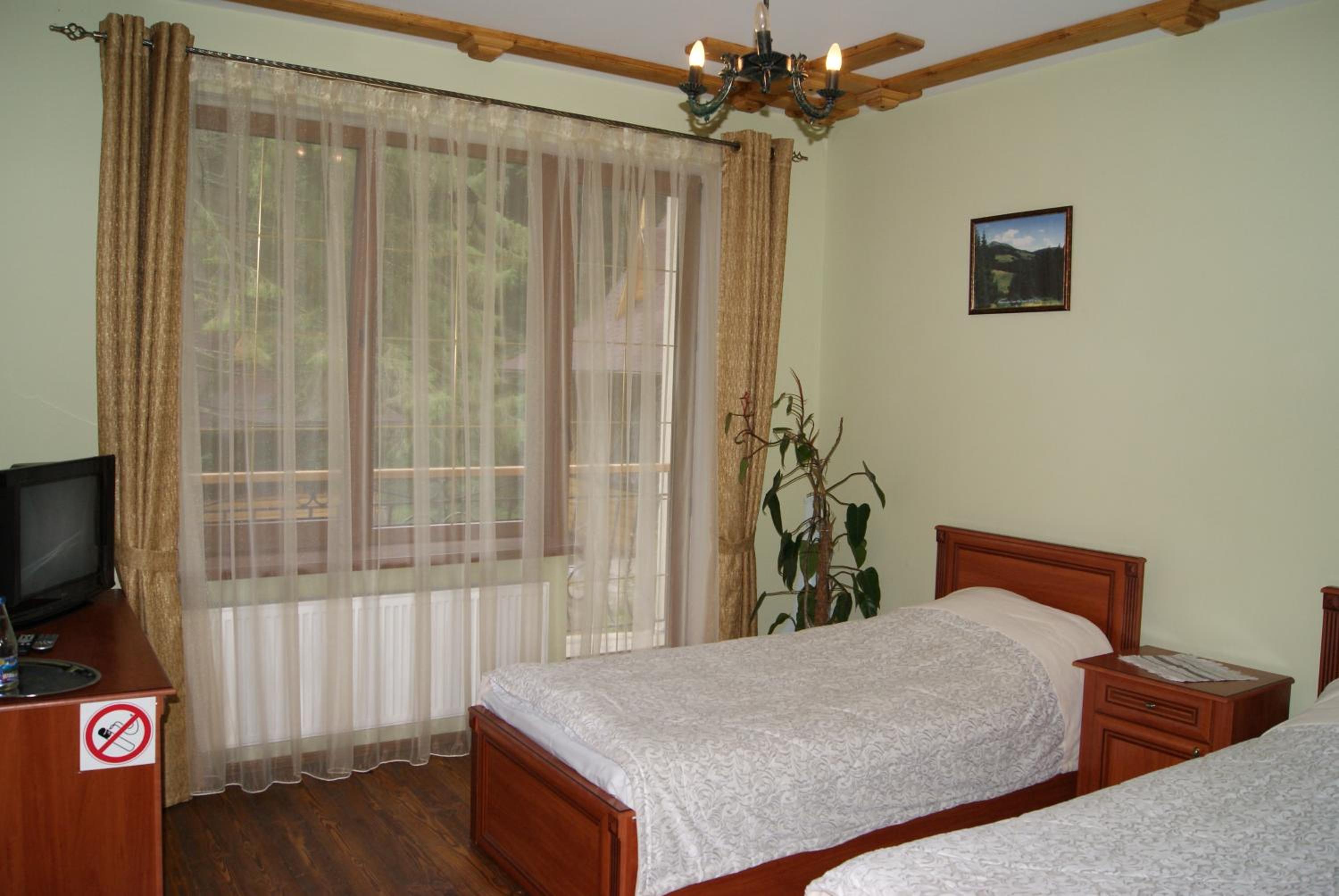 Готель на території національного парку. В'їзд охороняється. Вид з вітражних вікон на засніжений ліс. 4км до водоспаду Гук. Ввічливий персонал відгукуєтьчя на прохання. Дали чайник, воду, вчасно додавали туалетний папір, засекали з оплатою.