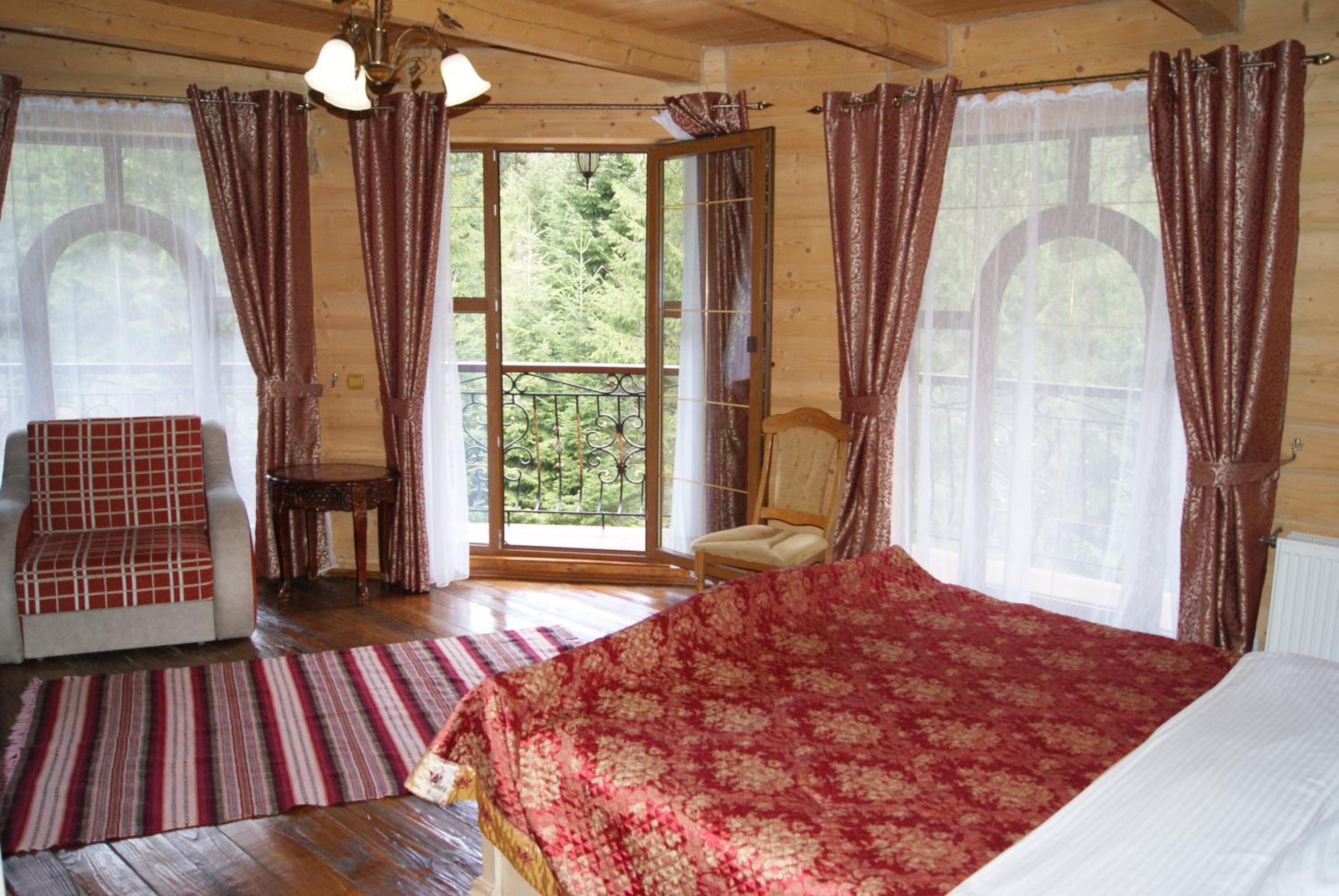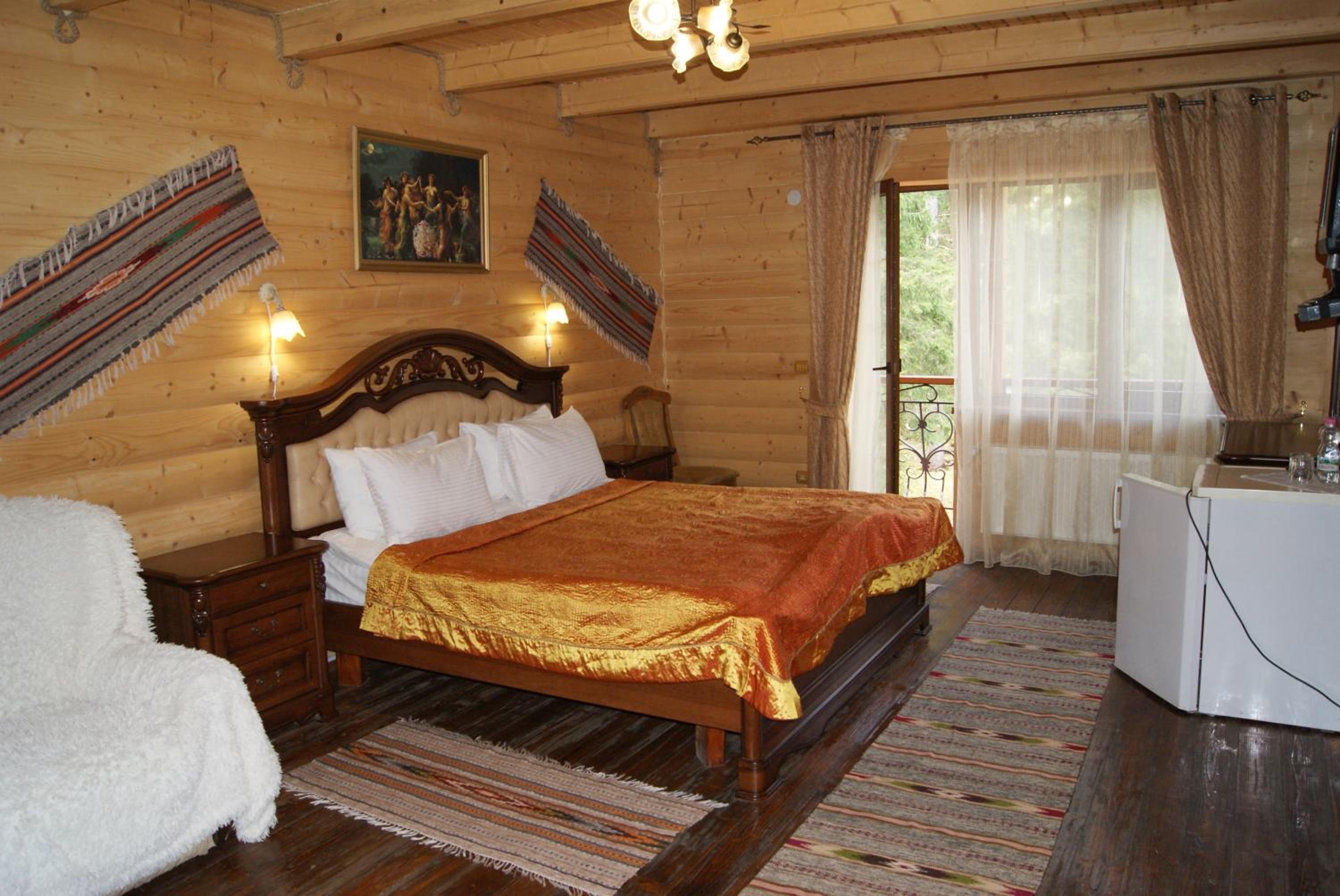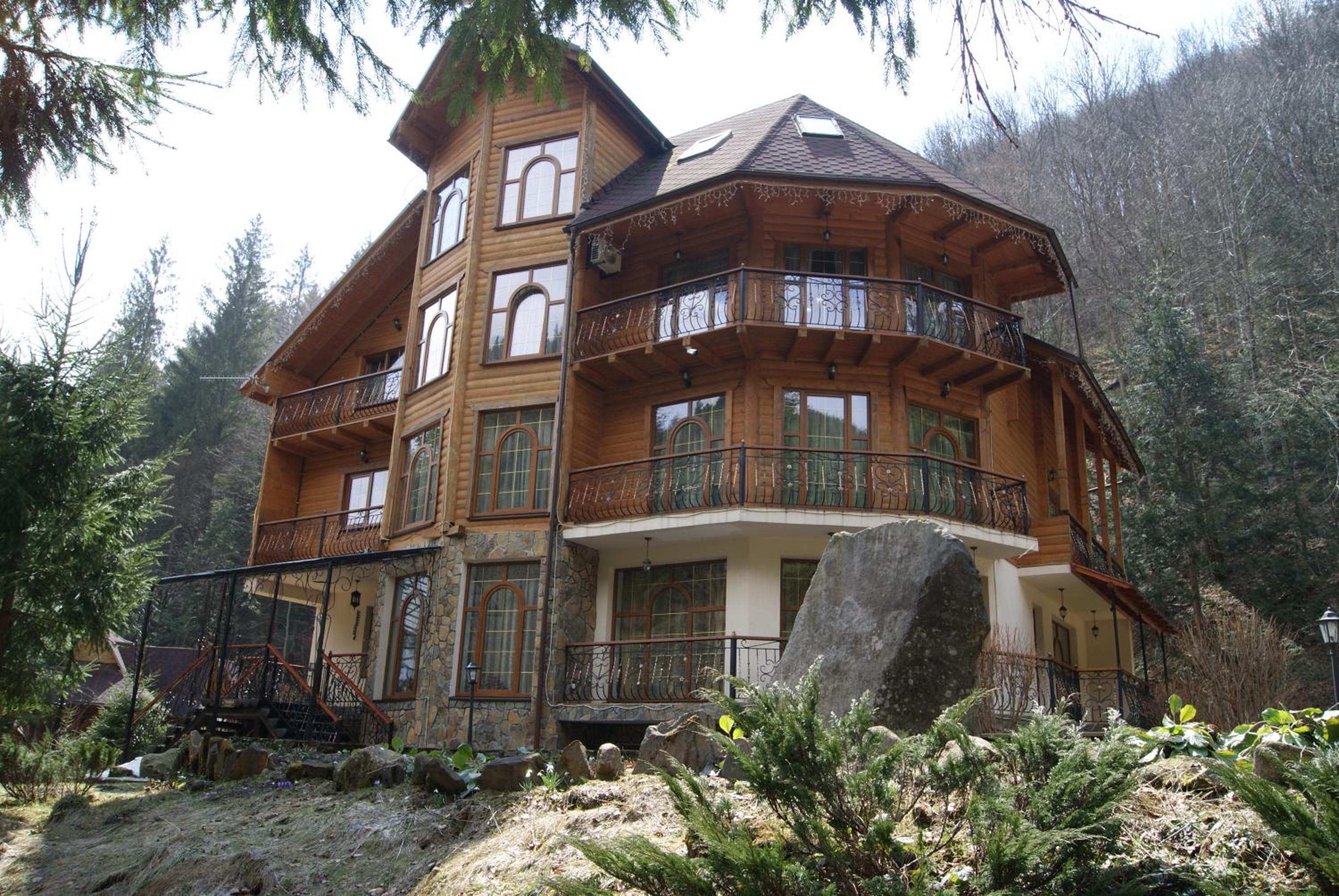 Rustic Elegance: Nestled in the Carpathian Mountains, Hotel Dykyi Med offers rooms with wooden interiors and balconies, providing a cozy retreat with a touch of nature.