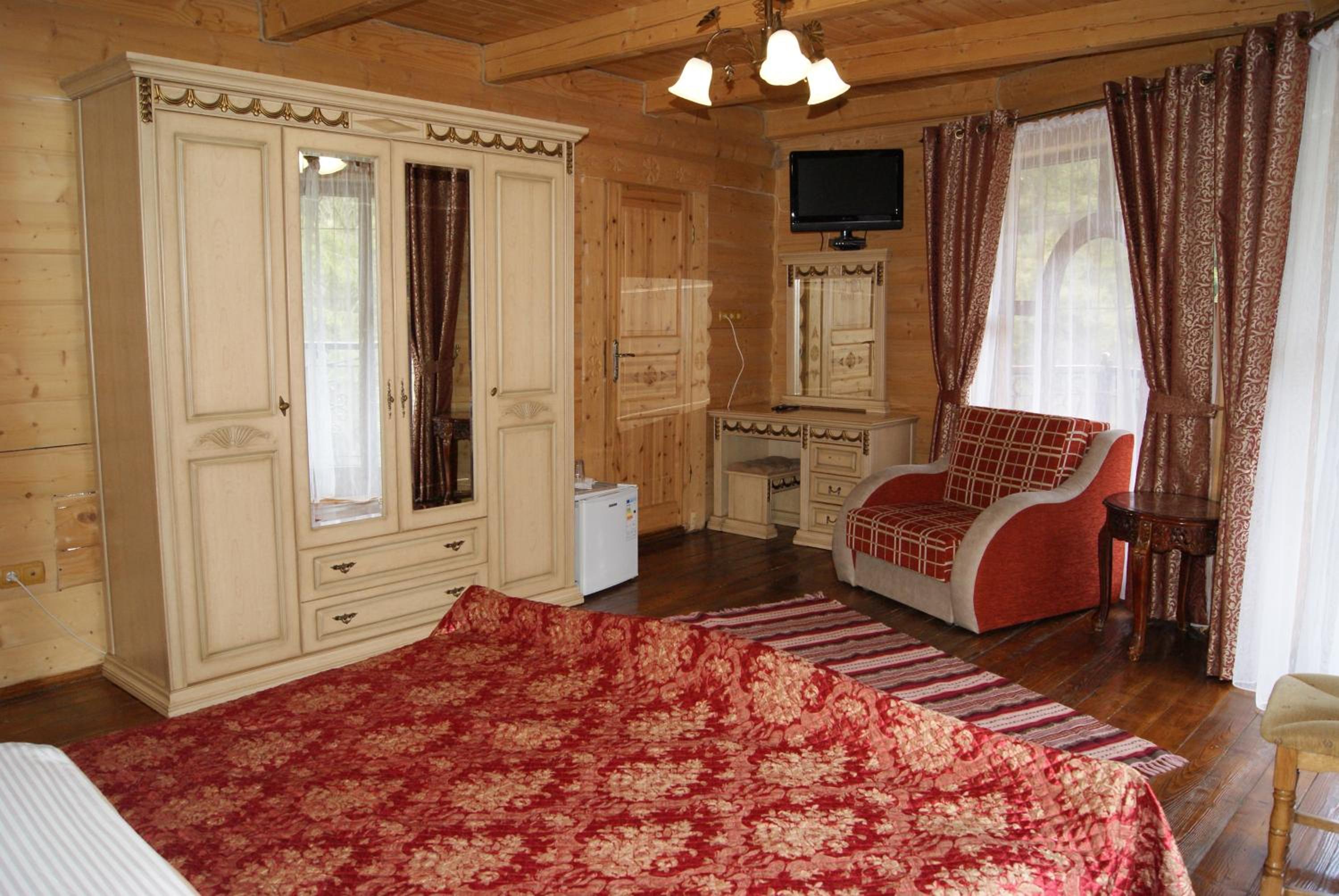 Територія крута, тому що знаходиться в межах заповідної зони. Неподалік водоспад Женецький Гук та гори Хомʼяк і Круглоявірник. Можна замовити баню. В номері не вистачало шафи або хоча б тумбочки. На букінгу не вказано що номер одного і того …Більше