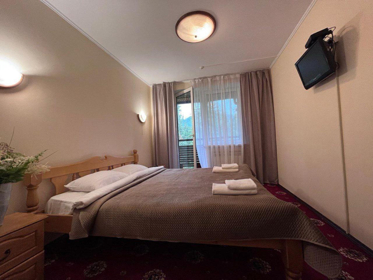 Гарна територія, чудове місце розташування, з вікна видно гори. Номер повністю такий як на фото, білизна чиста, гаряча вода була завжди. Для мене також плюс - небагато людей.