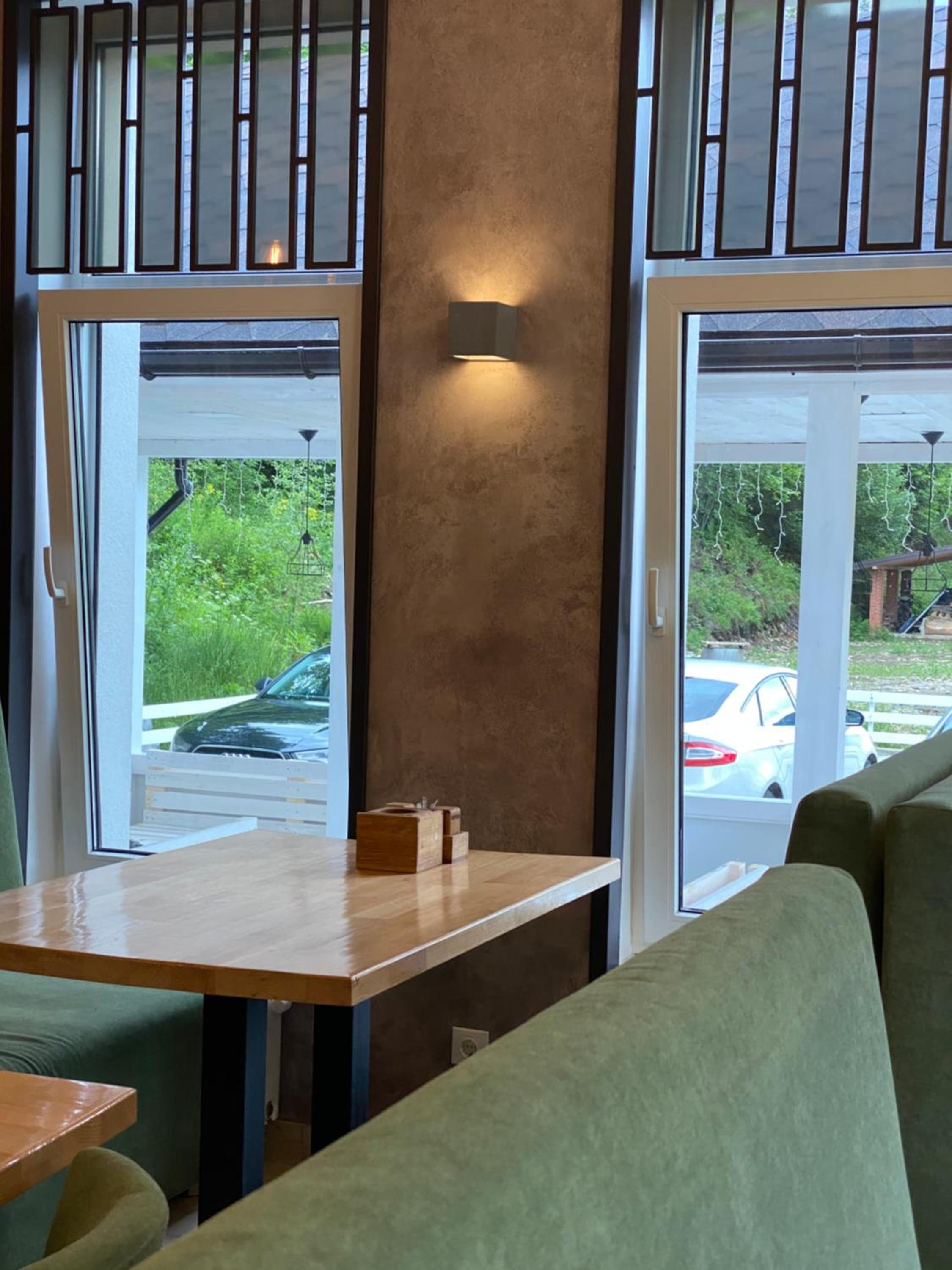 Розташування біля дороги, бо коли я вибирала готель головне що хотілось - жити біля річки. І вона була поруч, але готель та річку розділяла трасса, рух по якій не припинявся навіть вночі! Це дуже заважало відпочивати. Вікно відкрити просто не можливо - бо шум машин дуже дратував. Випити ранкову каву чи вечірній келих вина дихаючи свіжим повітрям та насолоджуючись звуками природи - точно не вийде (для цього треба кудись йти чи їхати)