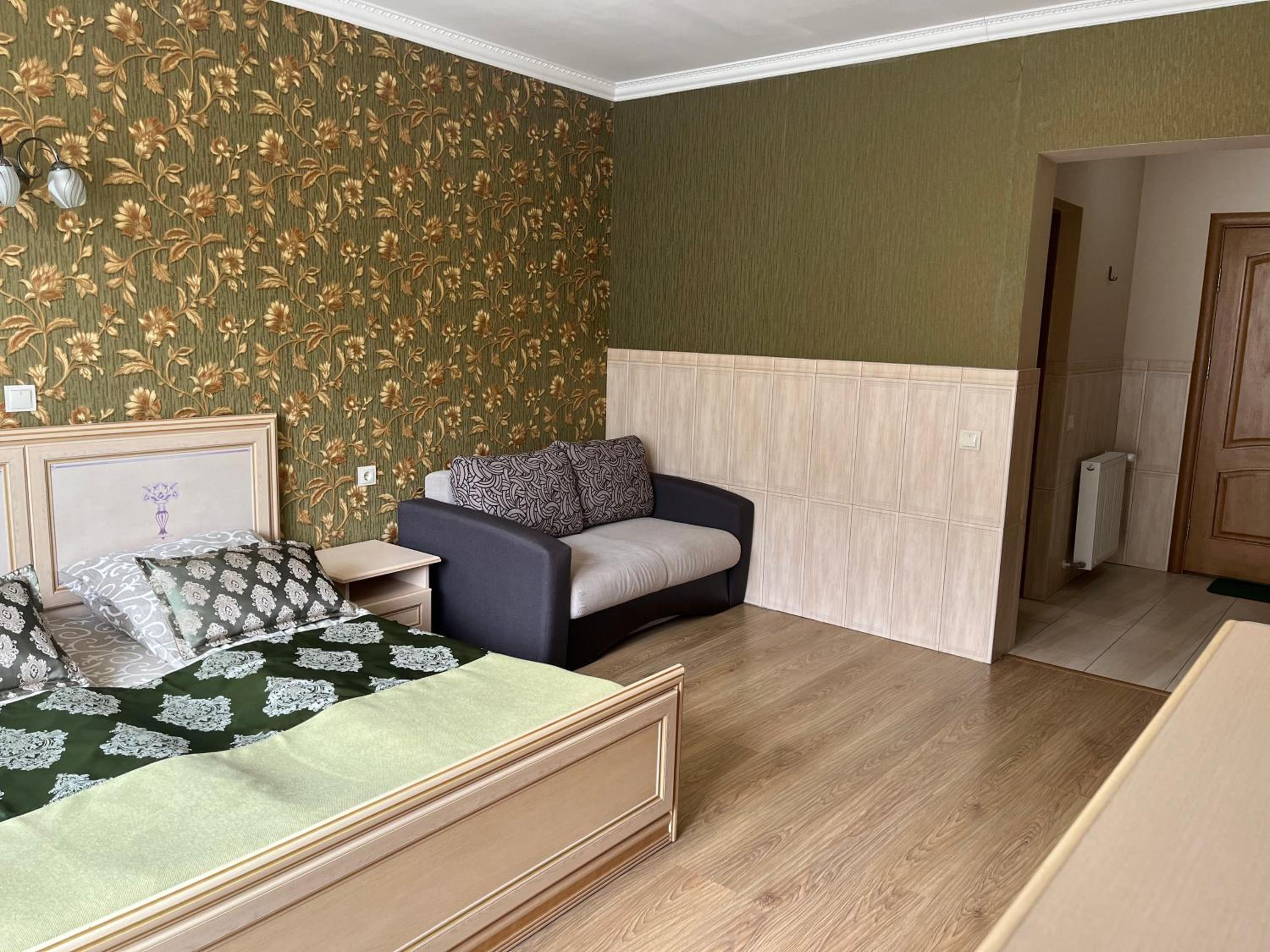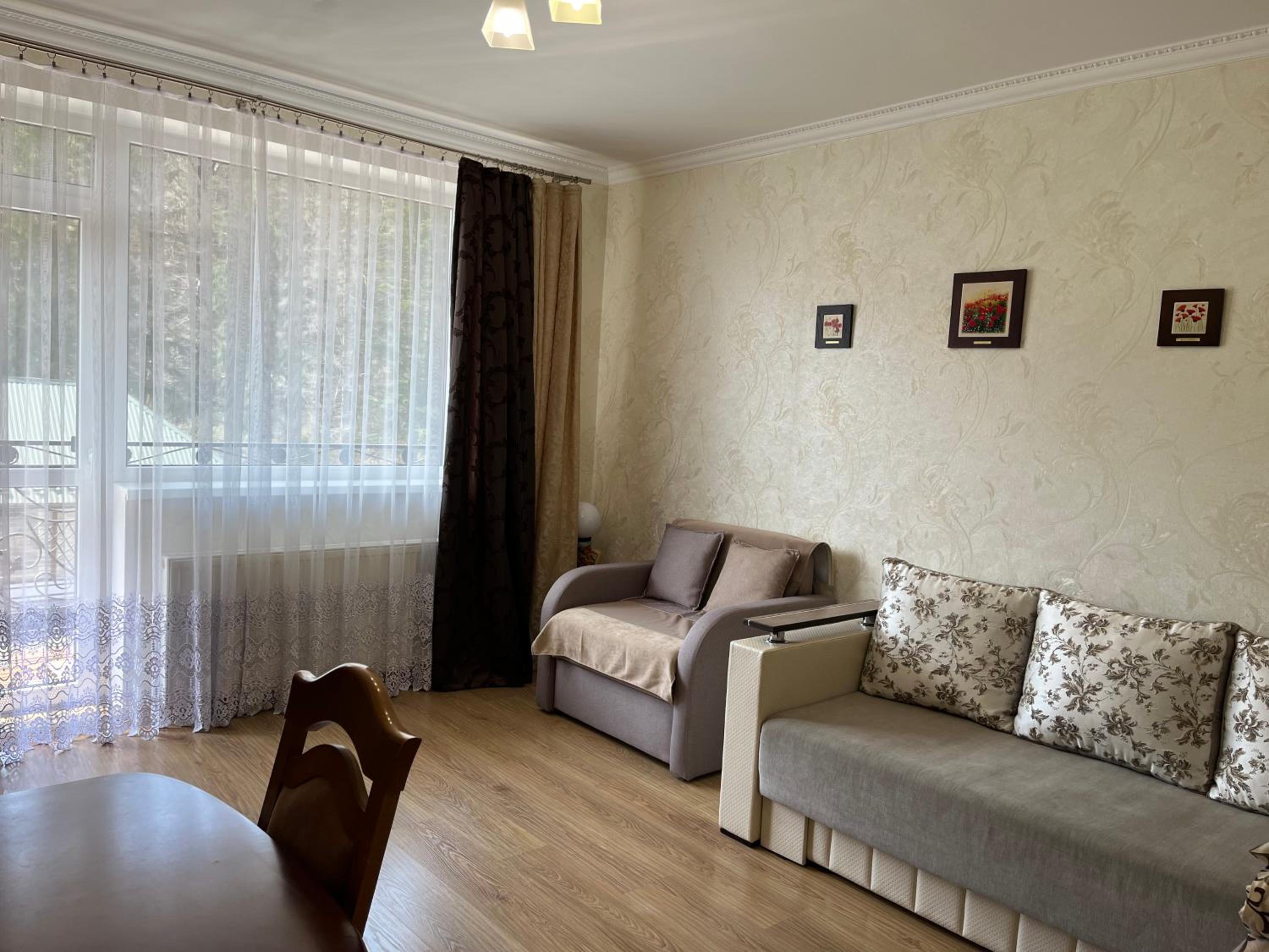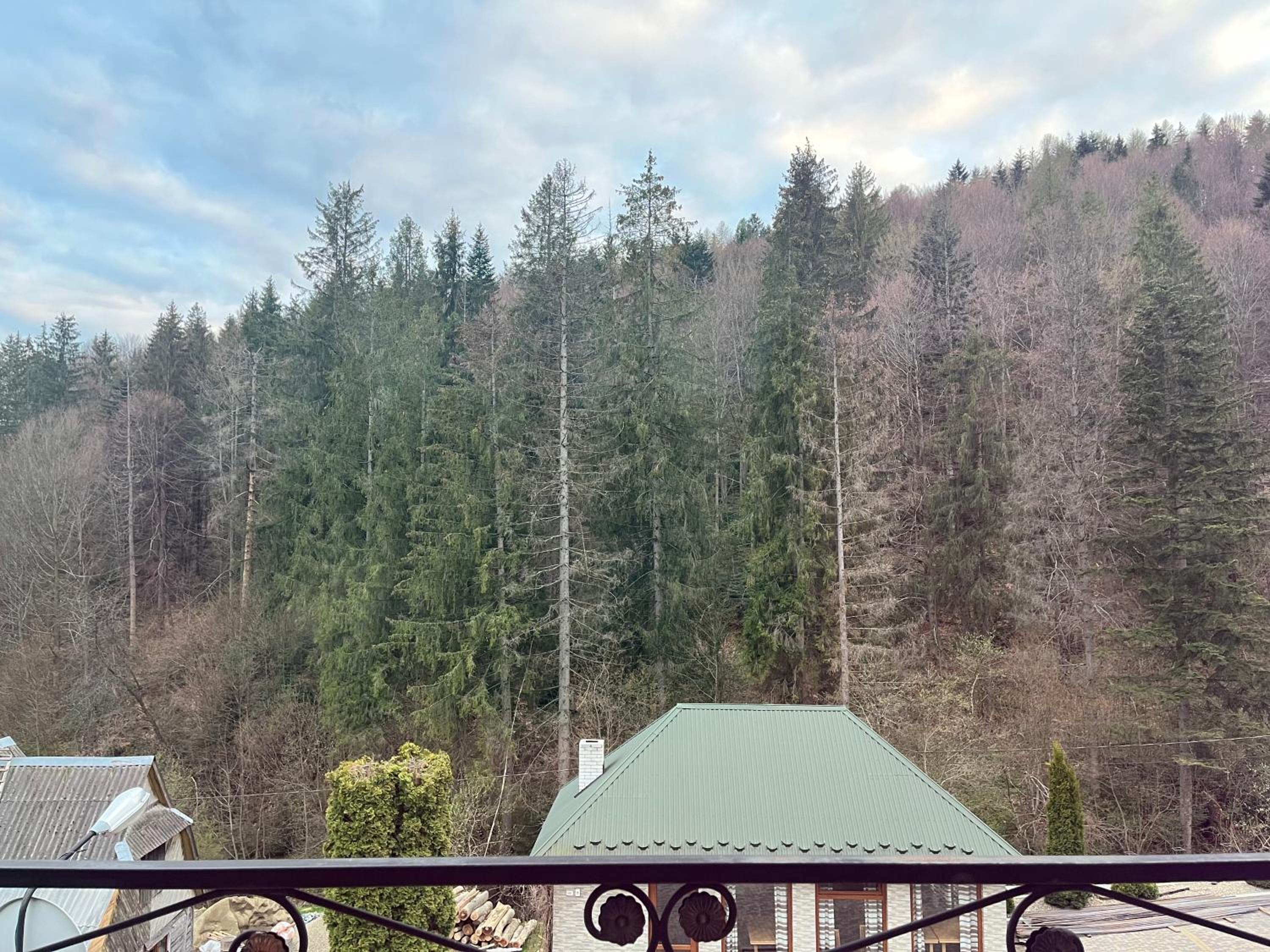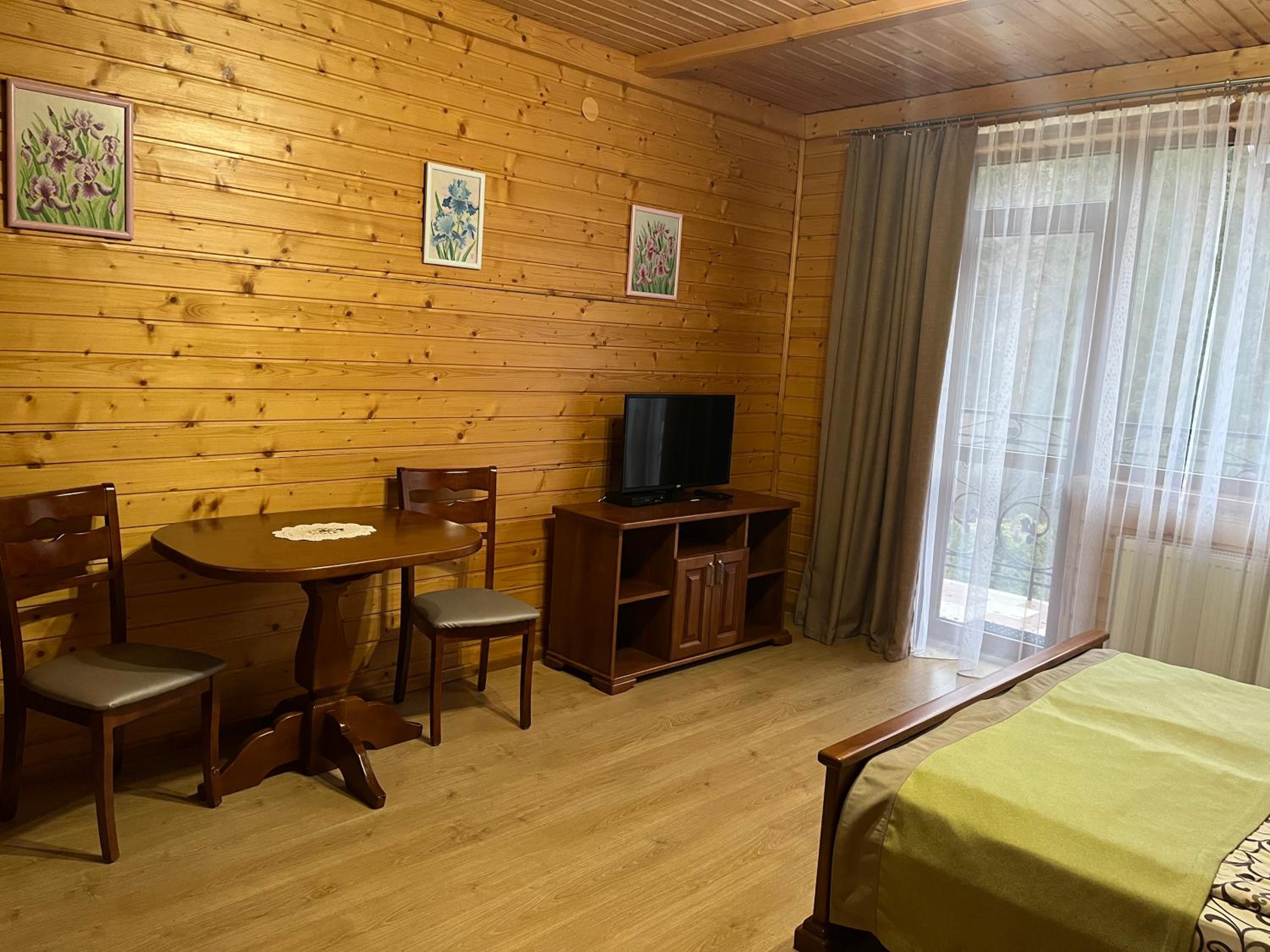 "Діброва" hotel in Yaremche provides a serene escape with private balconies overlooking lush forests. Enjoy the tranquility of nature from your room and unwind in the shared lounge or garden.