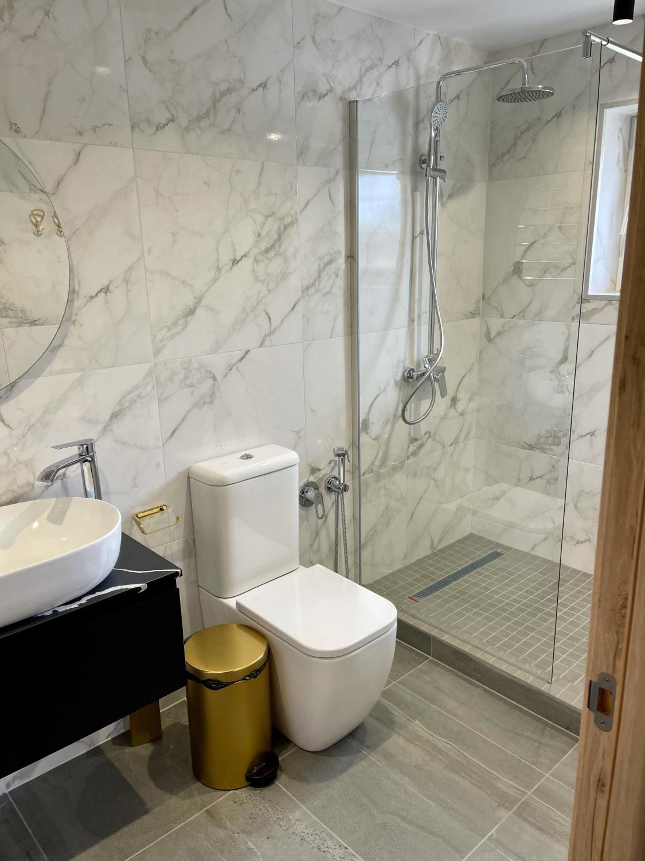 • У ванній немає зручних поверхонь для особистих речей.