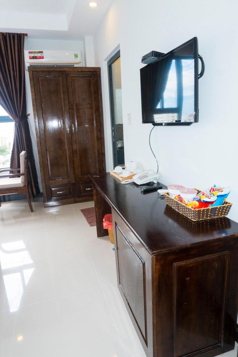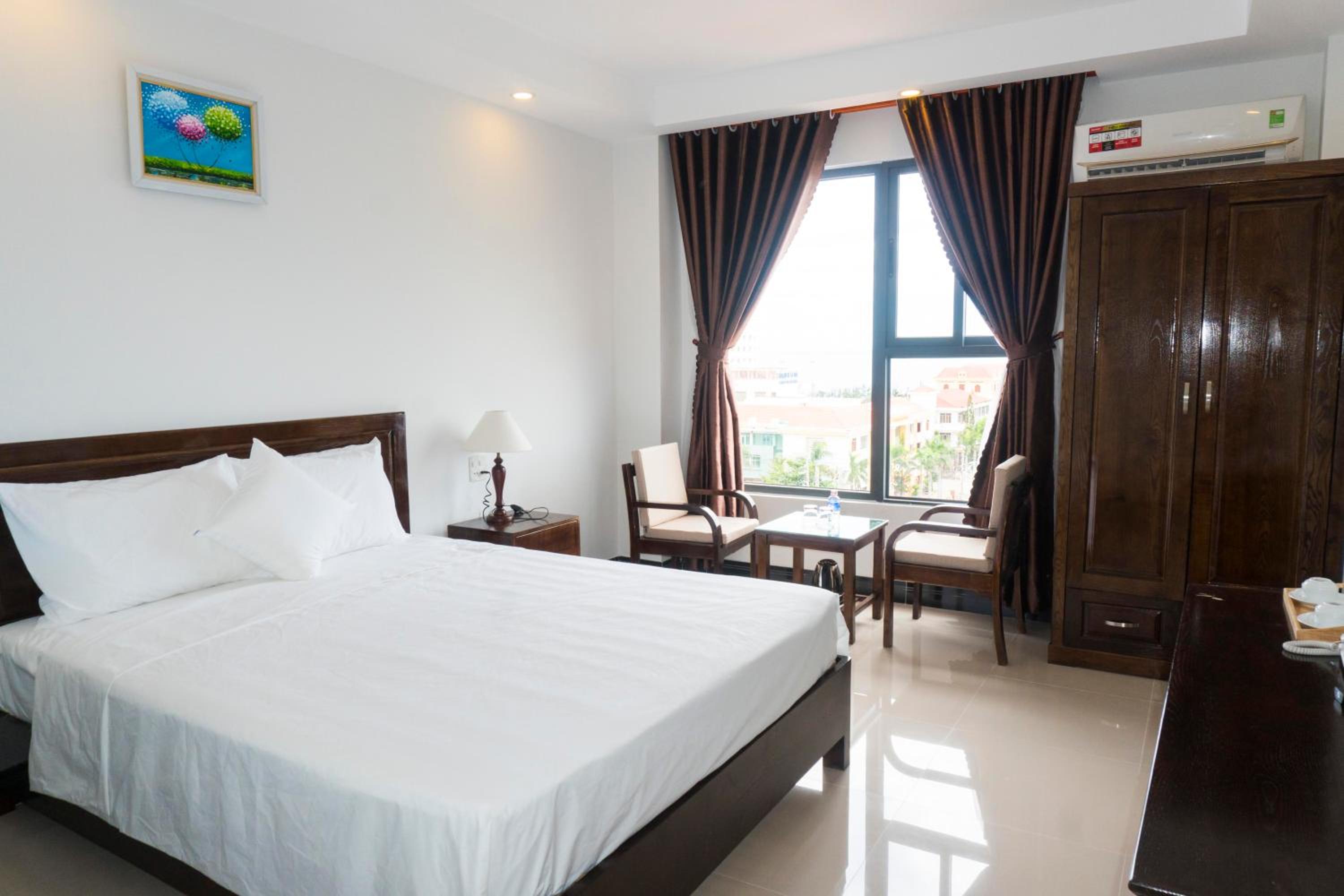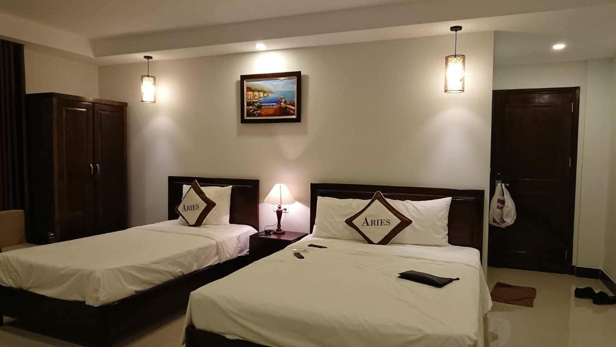 Aries Hotel, located in Tuy Hoa, offers elegant rooms with modern amenities such as air conditioning, flat-screen TVs, and free toiletries. Guests can enjoy the comfort of a private beach area and room service, making their stay truly relaxing.