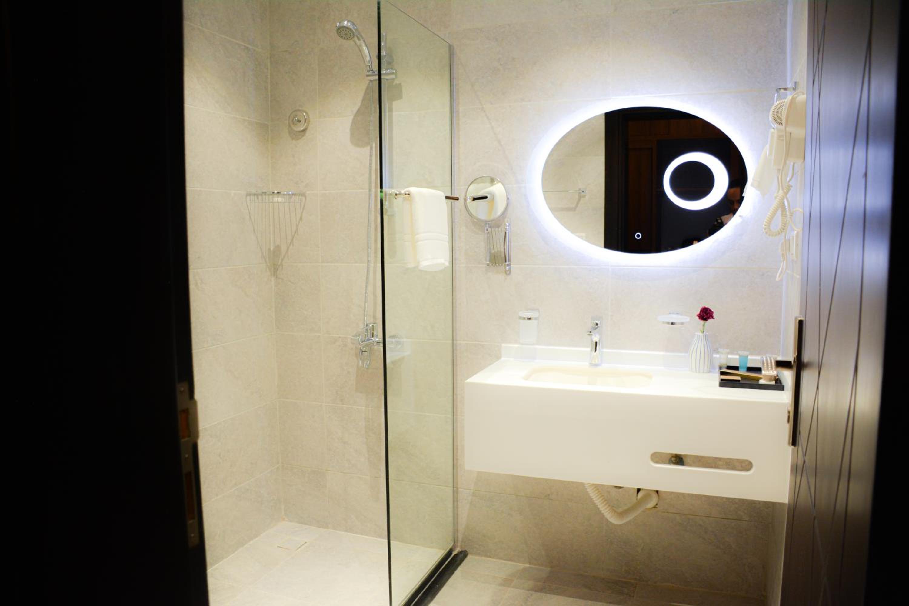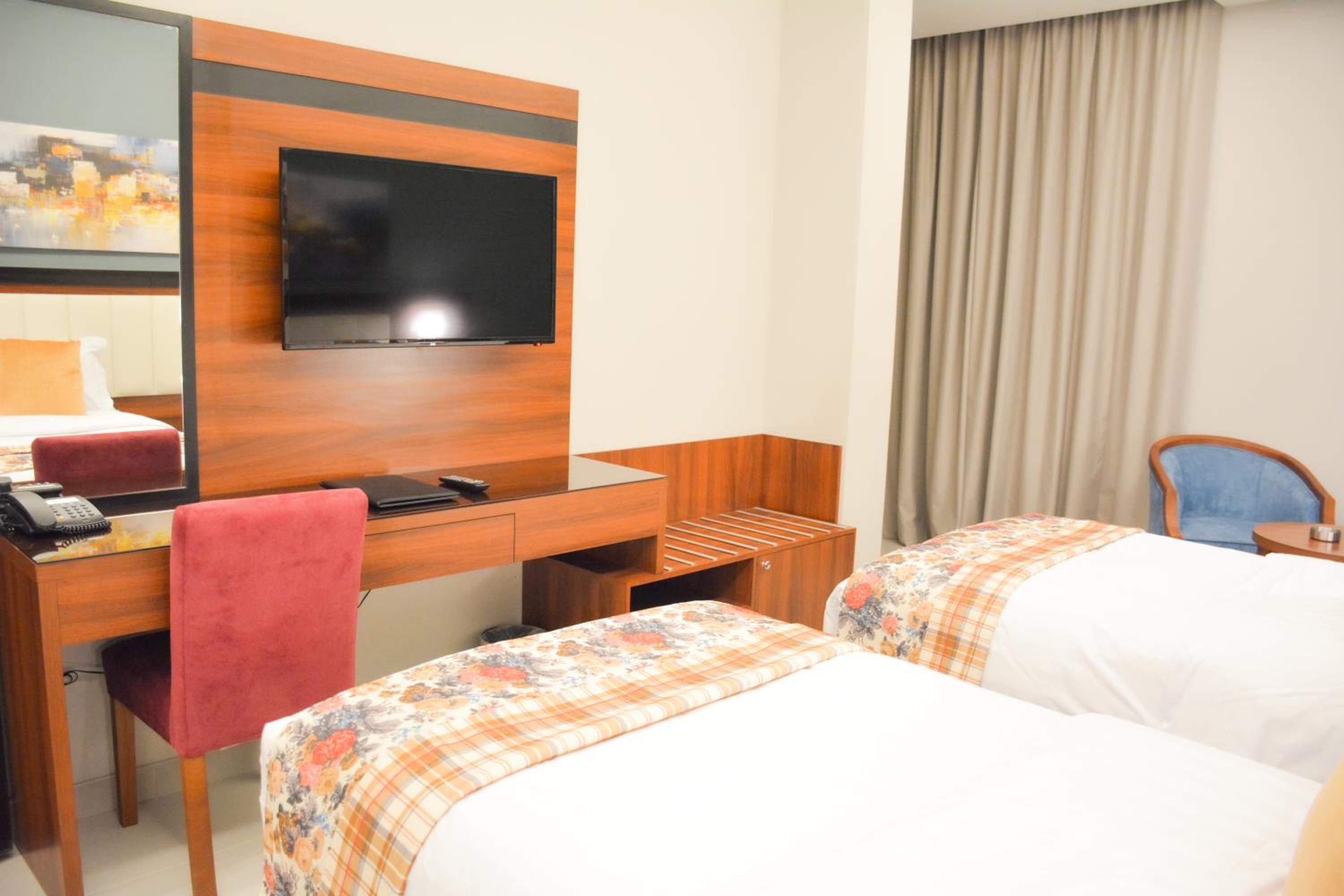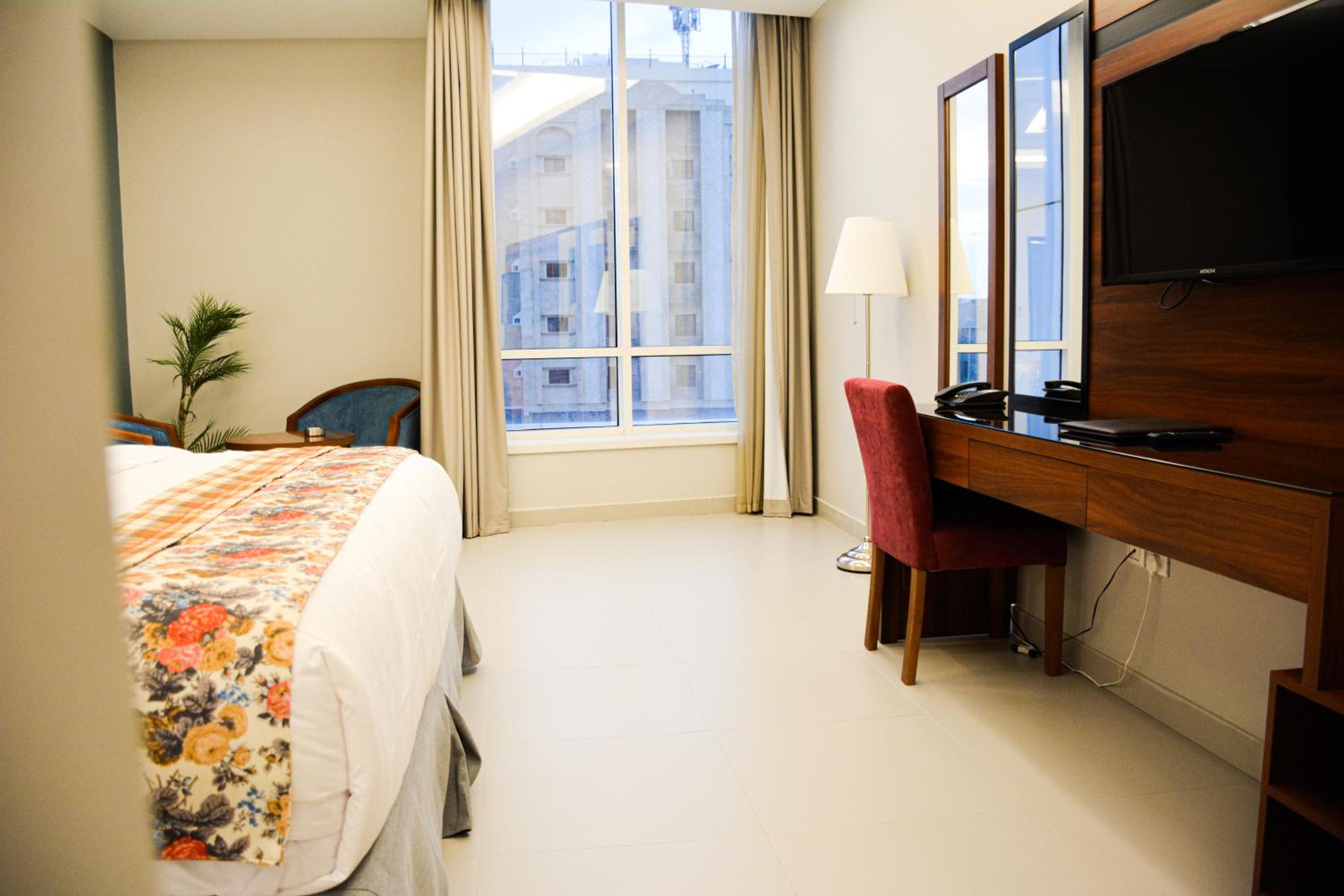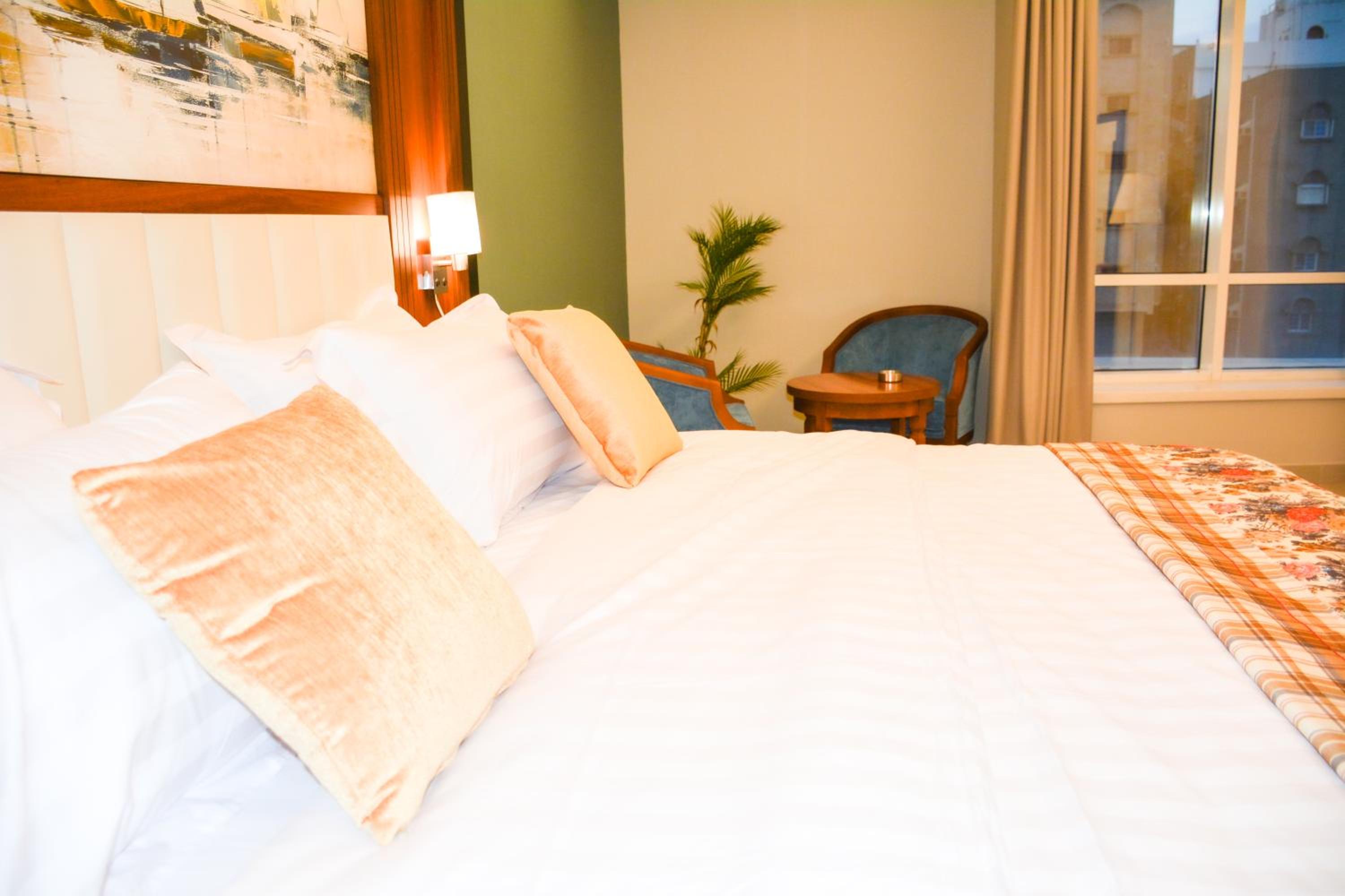الاقامة كانت غرفة مع دورة مياه نظيفة ومرتبة والاثاث جيد ويوجد مقهى تحت الفندق والعمال صراحة خلوقين ومتعاونين وكذلك موظفي الاستقبال تعاملهم جيد ..