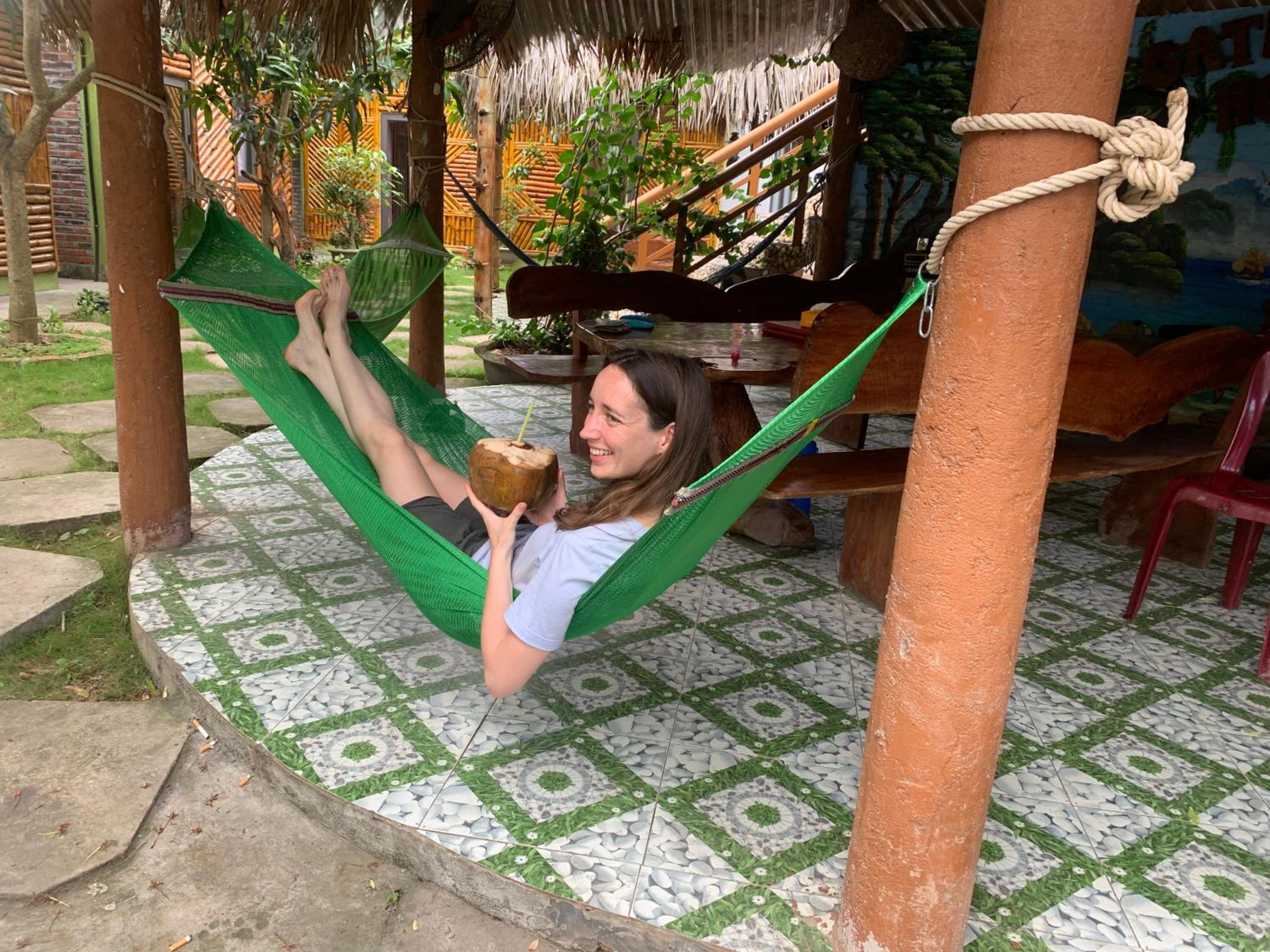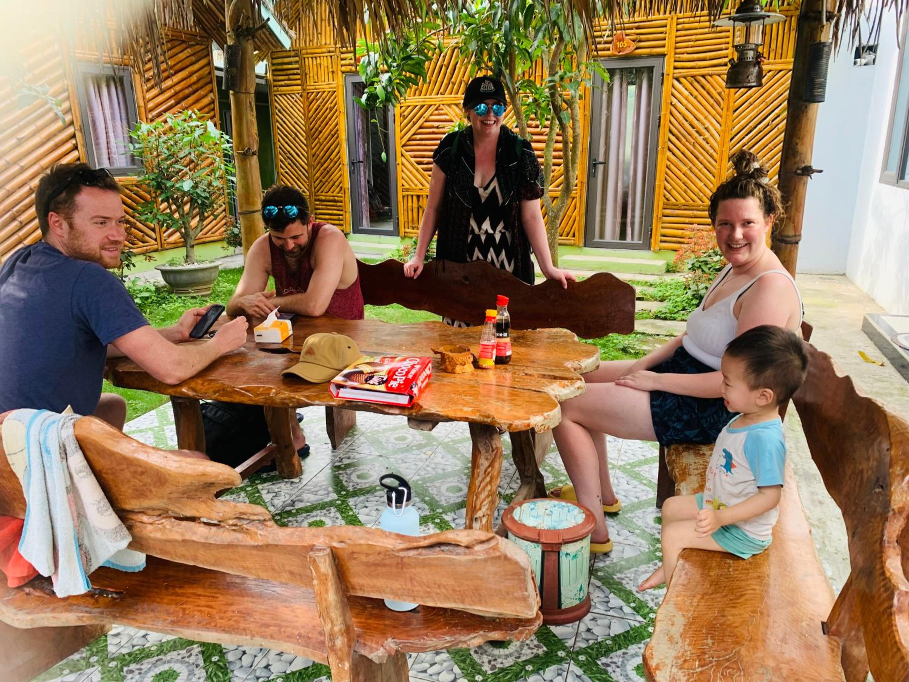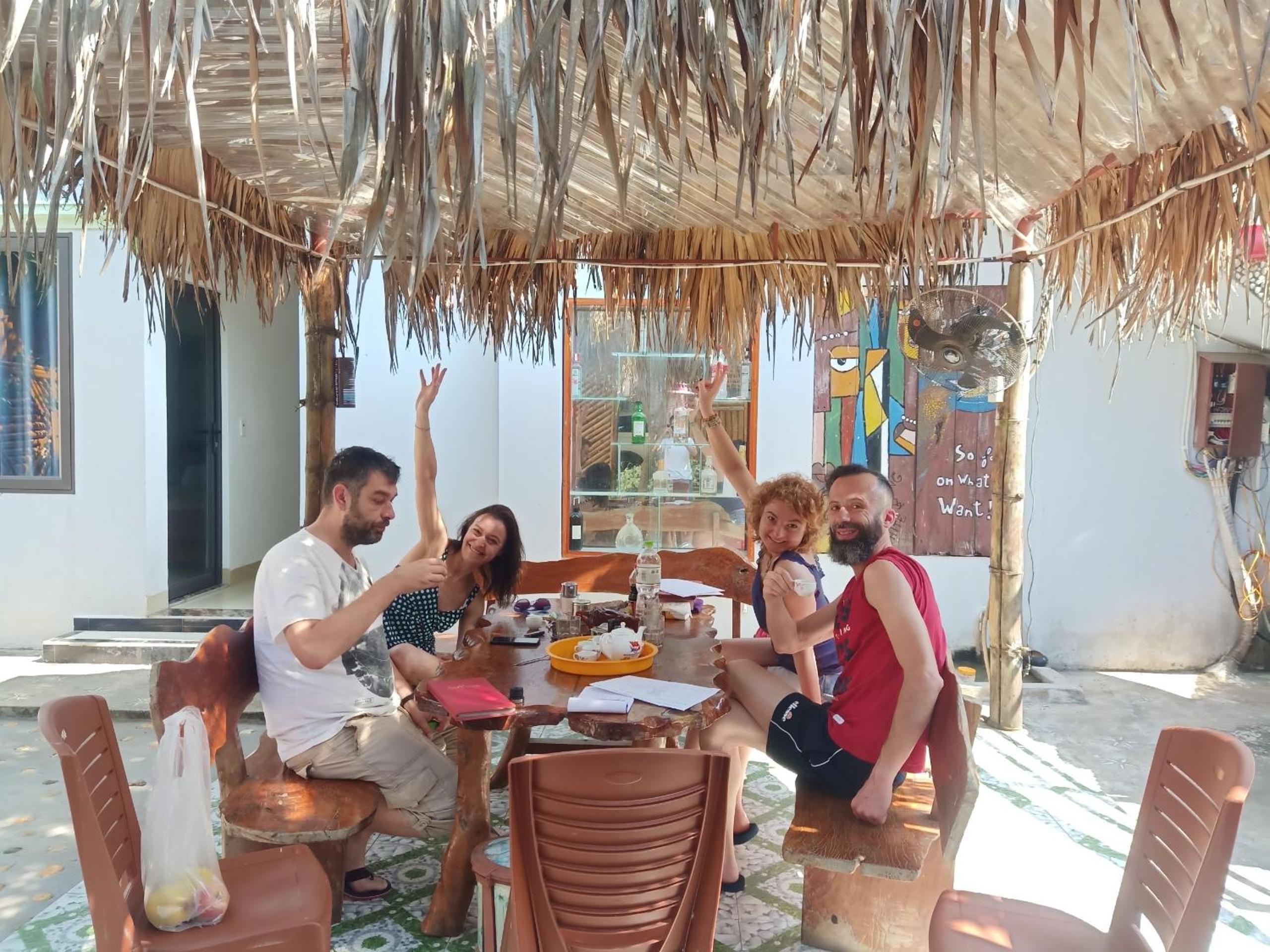 Manchmal ist es schwer in Vietnam die Bewertungen zu verstehen, da oft einfach alles mit super gut bewertet wird. Hier war das aber anders, es war wirklich SUPER. Wir haben unseren Aufenthalt 2 mal verlängert. Das liegt garnicht an etwas ganz bestimmten, es war einfach ein Ort an den man sich wohlgefühlt hat. Es ist circa 20 min mit dem Roller von der Stadt entfernt, das ist perfekt, vor allem wenn man kein Party Tourismus betreibt. Es gibt direkt gegenüber eine Bar, wo man einfach essen essen kann und gutes Bier trinken kann. Deswegen muss man garnicht unbedingt jeden Abend in die Stadt! Wir hatten ein Zimmer im Großen Haus, mit zwei Betten , in der oberen Etage. Das Kann ich wirklich sehr empfehlen, man hat Privatsphäre, viel Platz, es gibt auch einen großen Balkon/Terasse - für alle zugänglich, ausreichend Platz zum Yoga machen. Die Hütten unten sind eng am Pool gebaut, dazu habe ich keine Erfahrung. Es scheint wie eine normale Unterkunft, aber aus irgend einen Grund fühlt man sich wohl und bleibt gerne Länger. Das liegt sicherlich nicht zu letzt an der super netten und authentischen Besitzerin und ihren Kindern. Zum frühstück gibt es Pancakes oder Baguette.