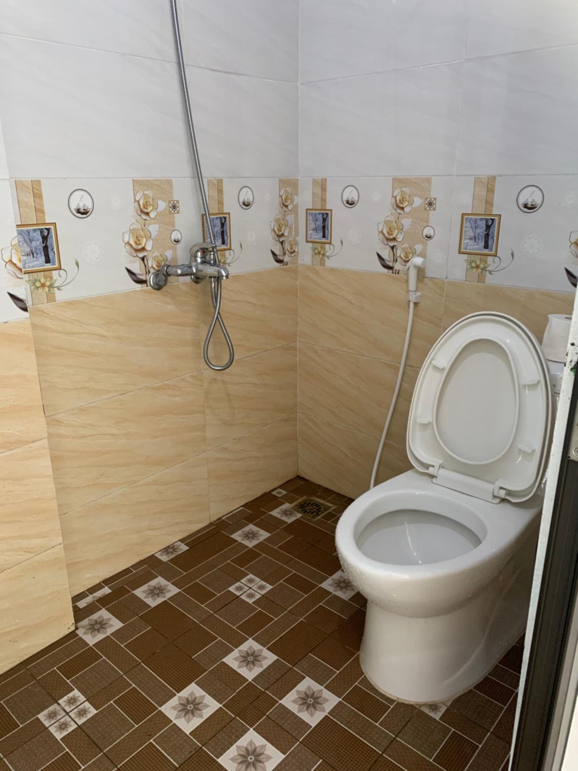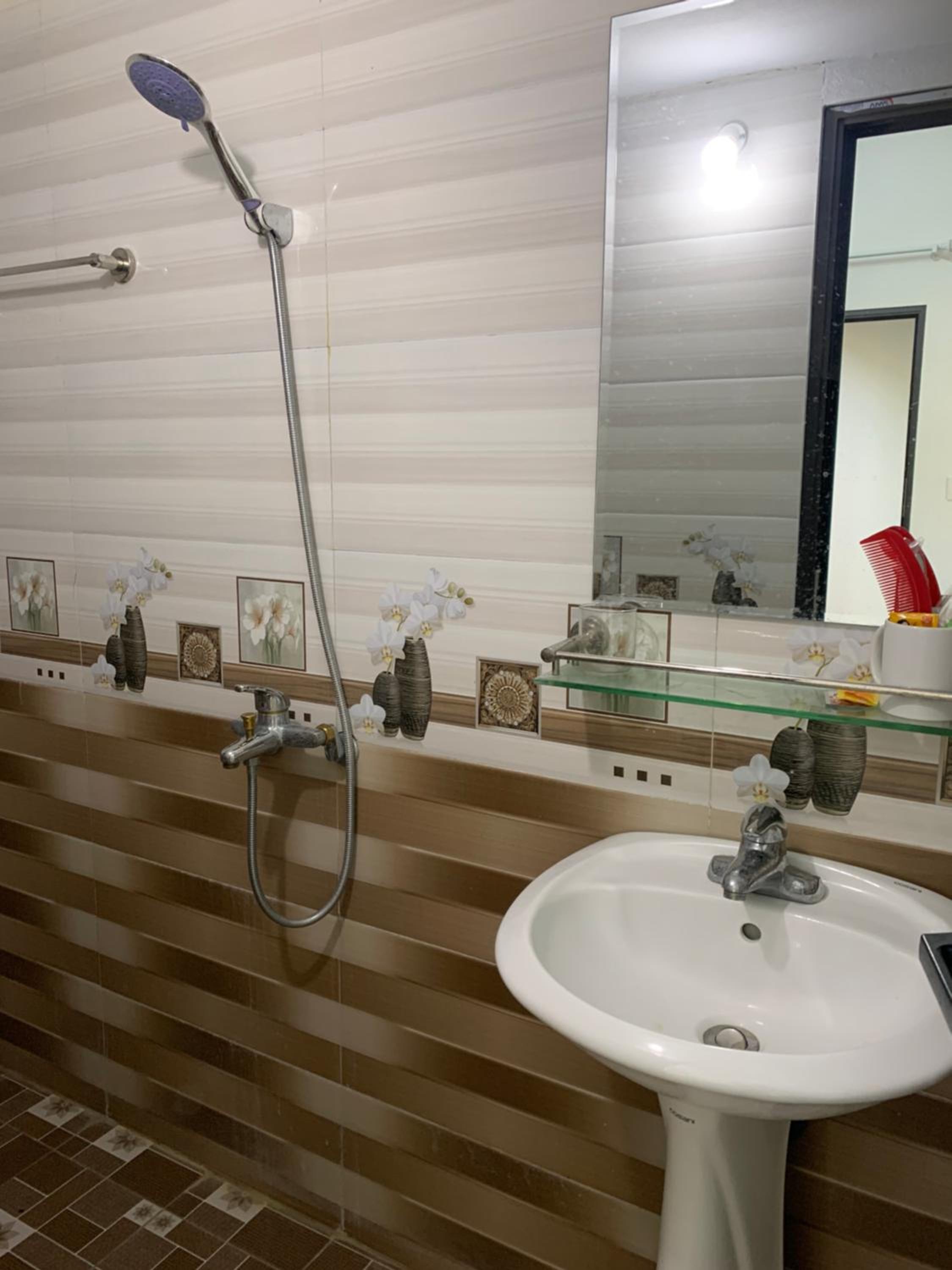 De douche is wat onhandig ingedeeld, misschien is een vloertrekker handig. Dan is na het douchen niet de hele badkamer nat.