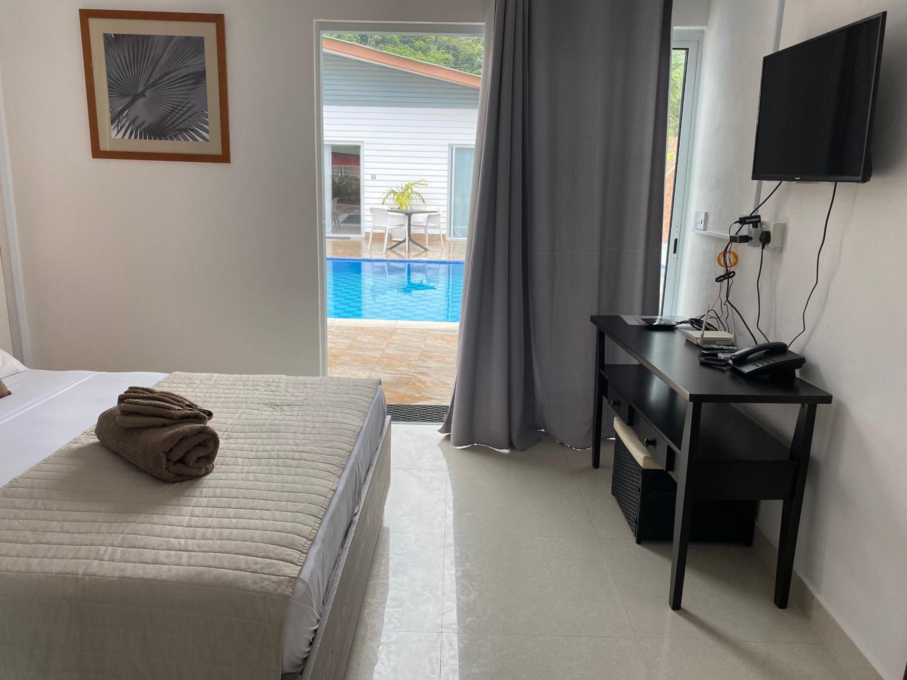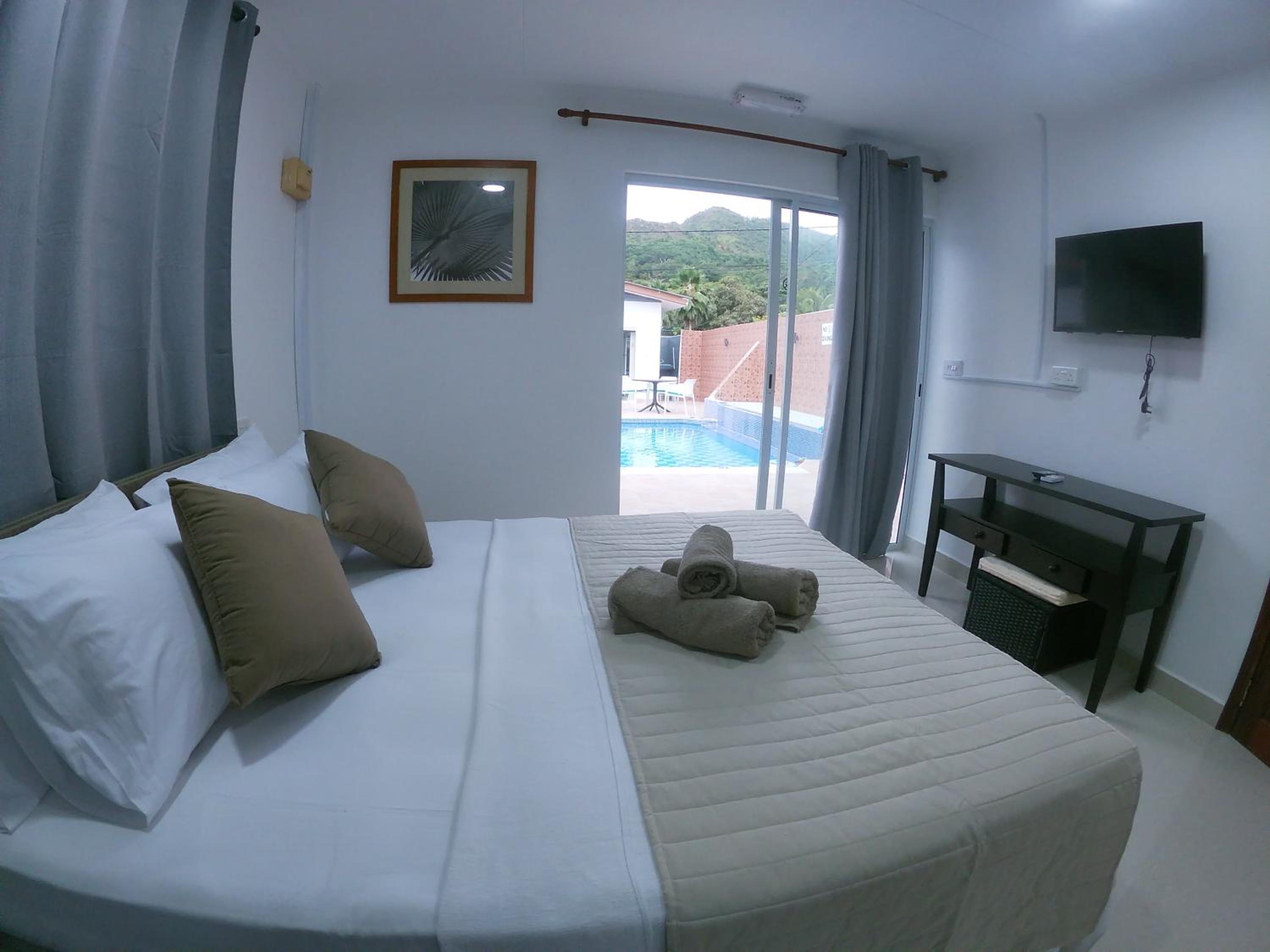 Hotel Plein Soleil, nestled in Grand Anse just 200 meters from the pristine Grand Anse Praslin Beach, offers a luxurious stay with family rooms, air conditioning, and modern amenities like a flat-screen TV and a safety deposit box.