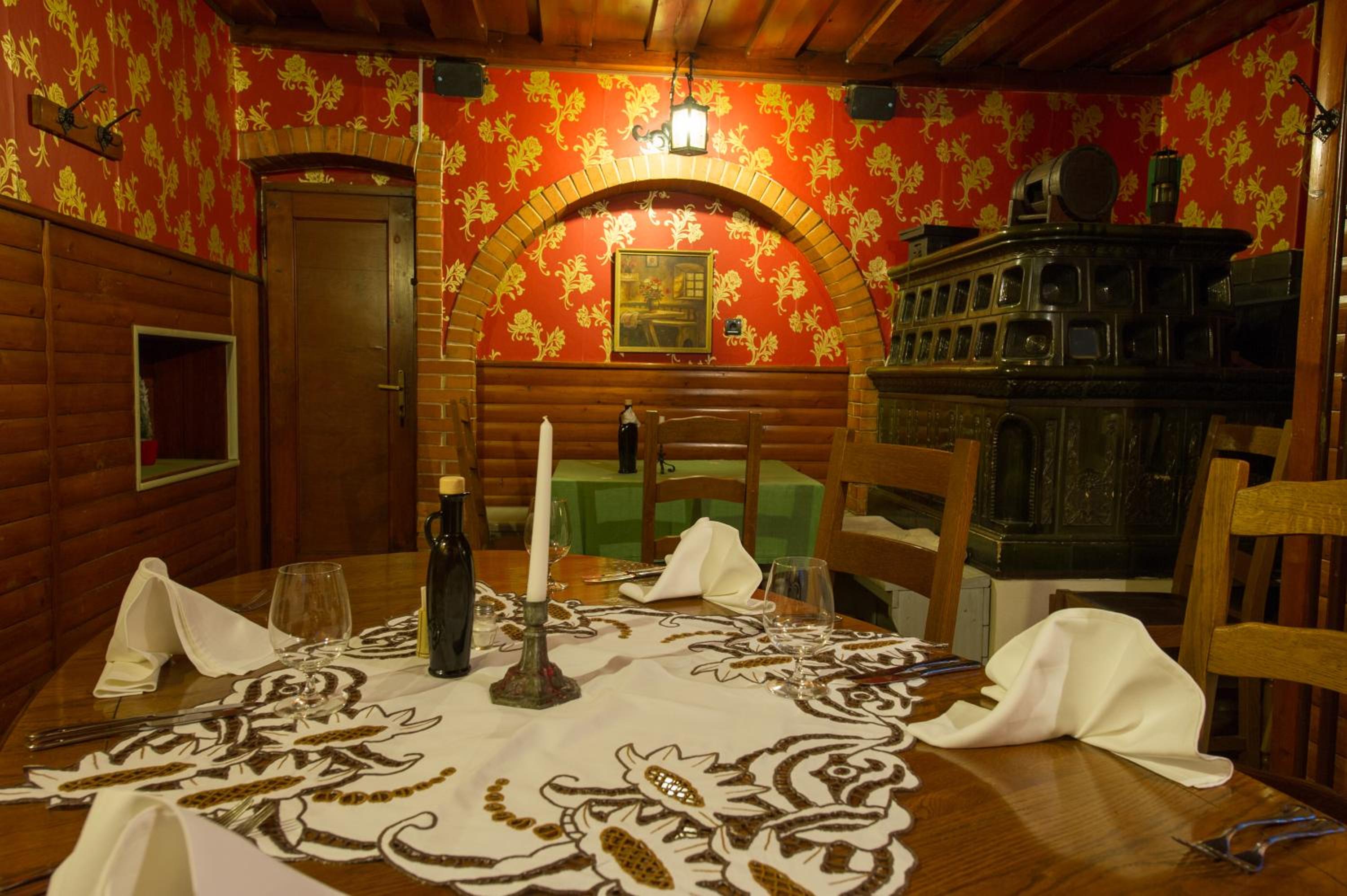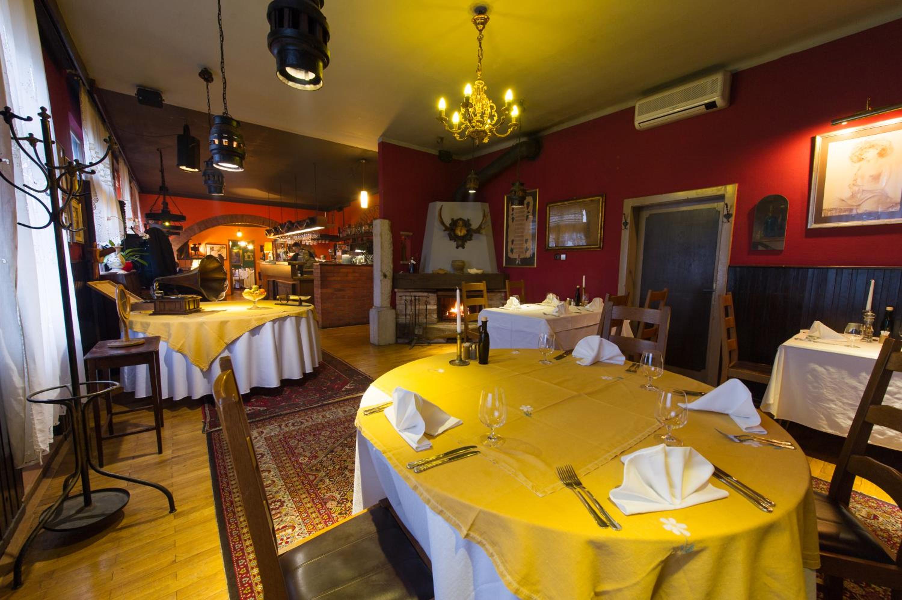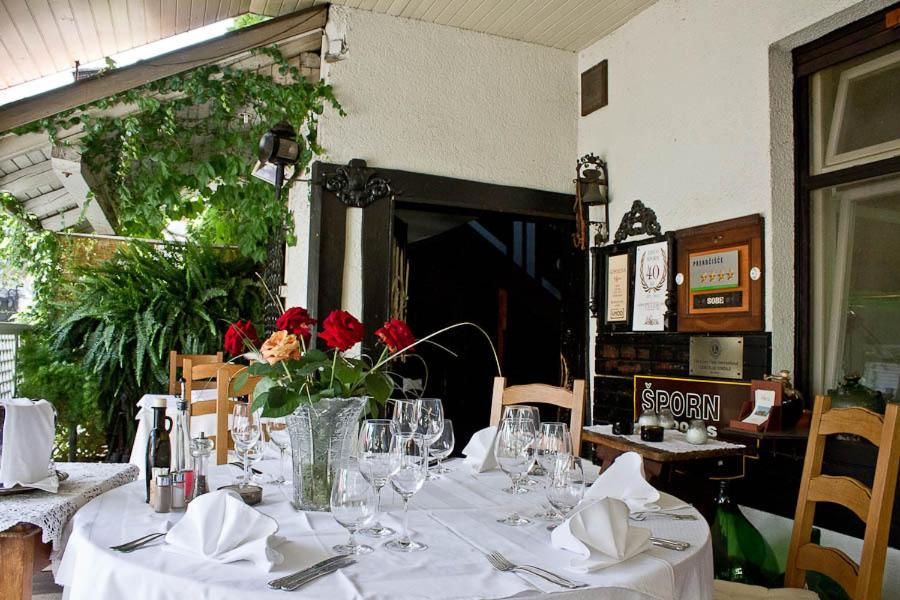 Hotel Sporn, nestled in central Radomlje, boasts an inviting courtyard terrace at its à-la-carte restaurant and bar. The serene backdrop of a quiet backyard enhances the experience for guests. The elegant restaurant, adorned with oriental carpets and captivating oil-filled walls, offers a rich breakfast daily.
