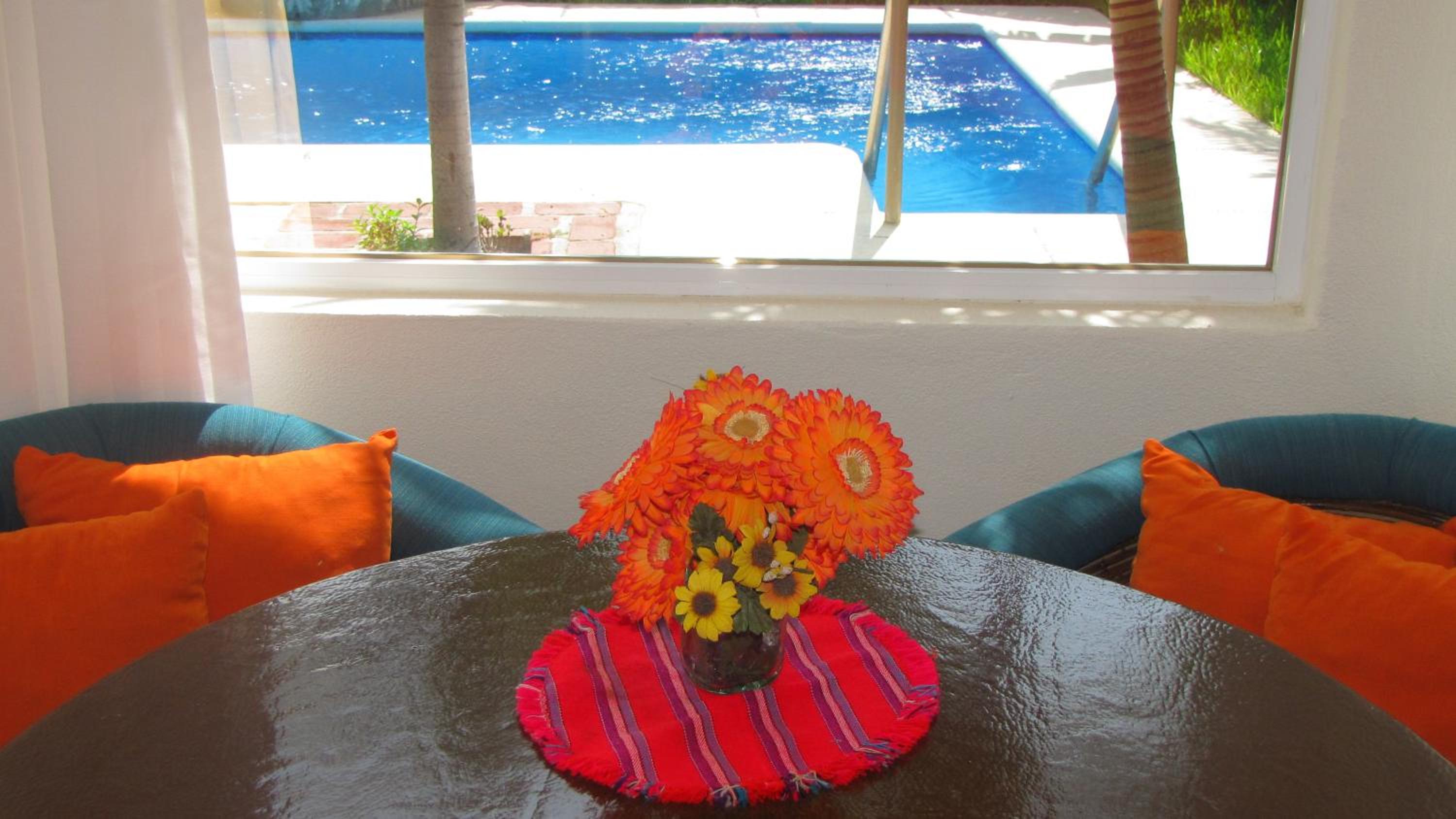 First trip to this area of Mexico but not the last -- we've booked again for next year! When our cabs stopped at a fence with a gate and a small sign indicating we were at our destination, we looked around and laughed wondering, "Is this really it?" Then we were buzzed into the property and knew we found our paradise! Great location and well set up. Everyone was so welcoming and ready to make this the best vacation possible! All of our questions were answered, rooms were clean, comfortable, and unique. Our room had the kitchen area separated from the bedroom and bathroom. Great amount of space. Lovely patio with chairs and a view of the garden, pool, and ocean. It was spectacular! We chose no a/c so it was warm during the day with just the fans going. But coming from a cold climate, we enjoyed the warmth :)