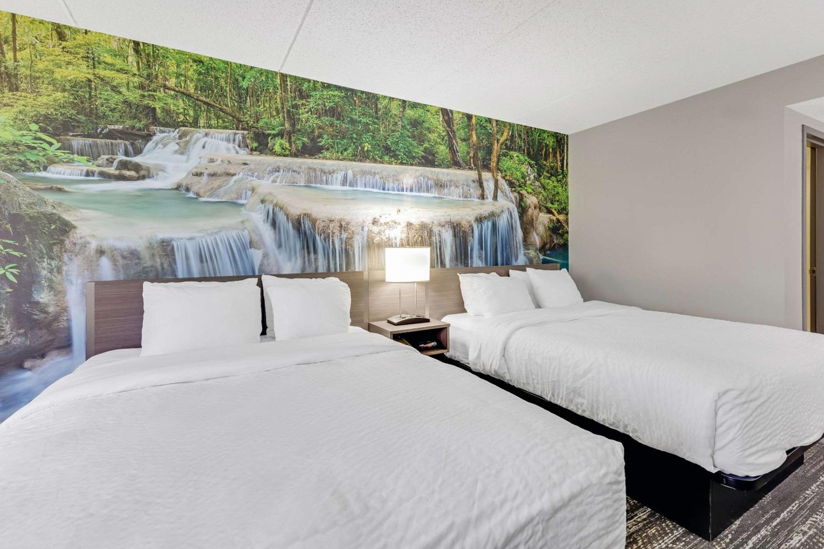 The rooms were very nice and well kept. The waterfall picture was a nice fun touch in the room. Overall was a very nice room and had a good stay.