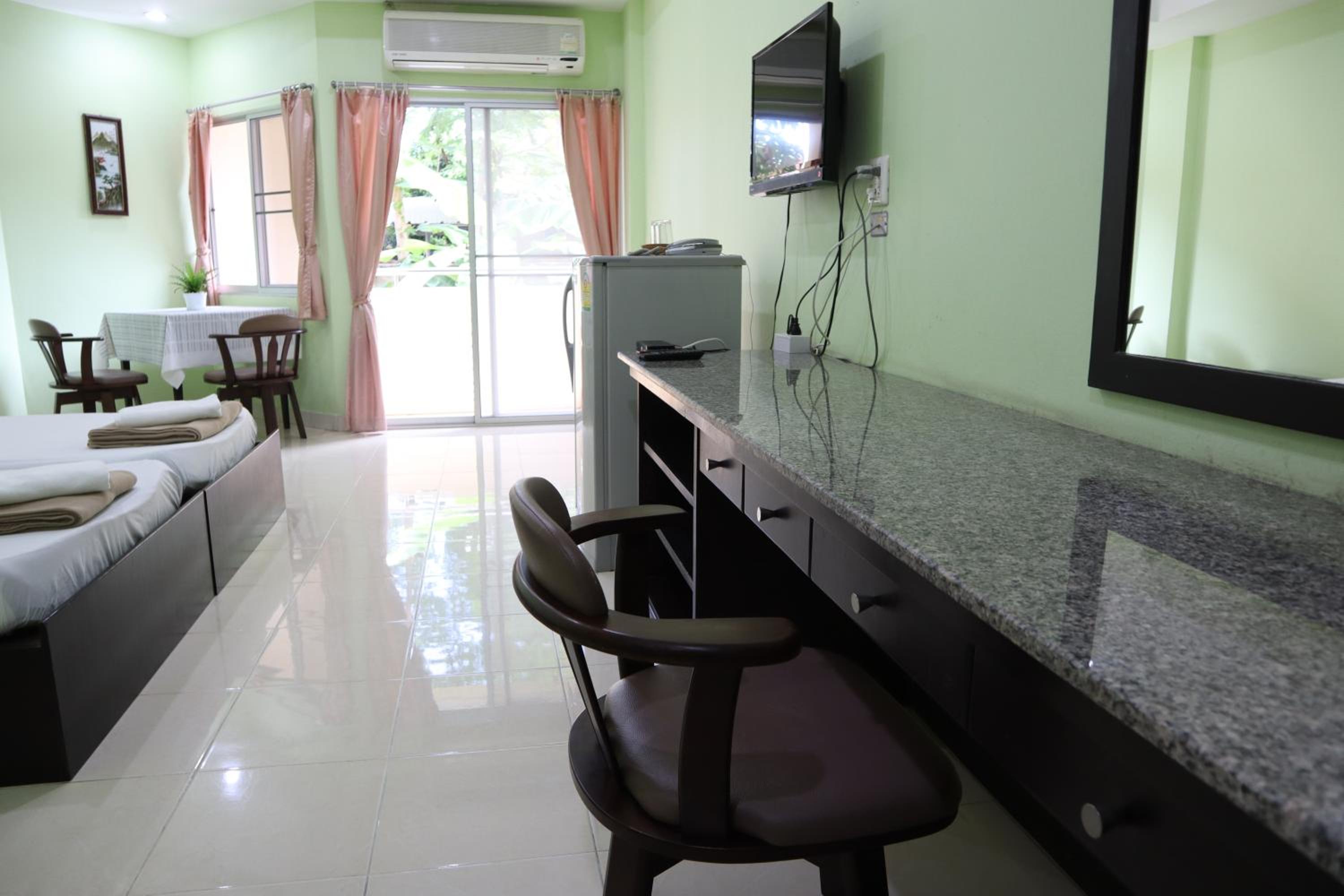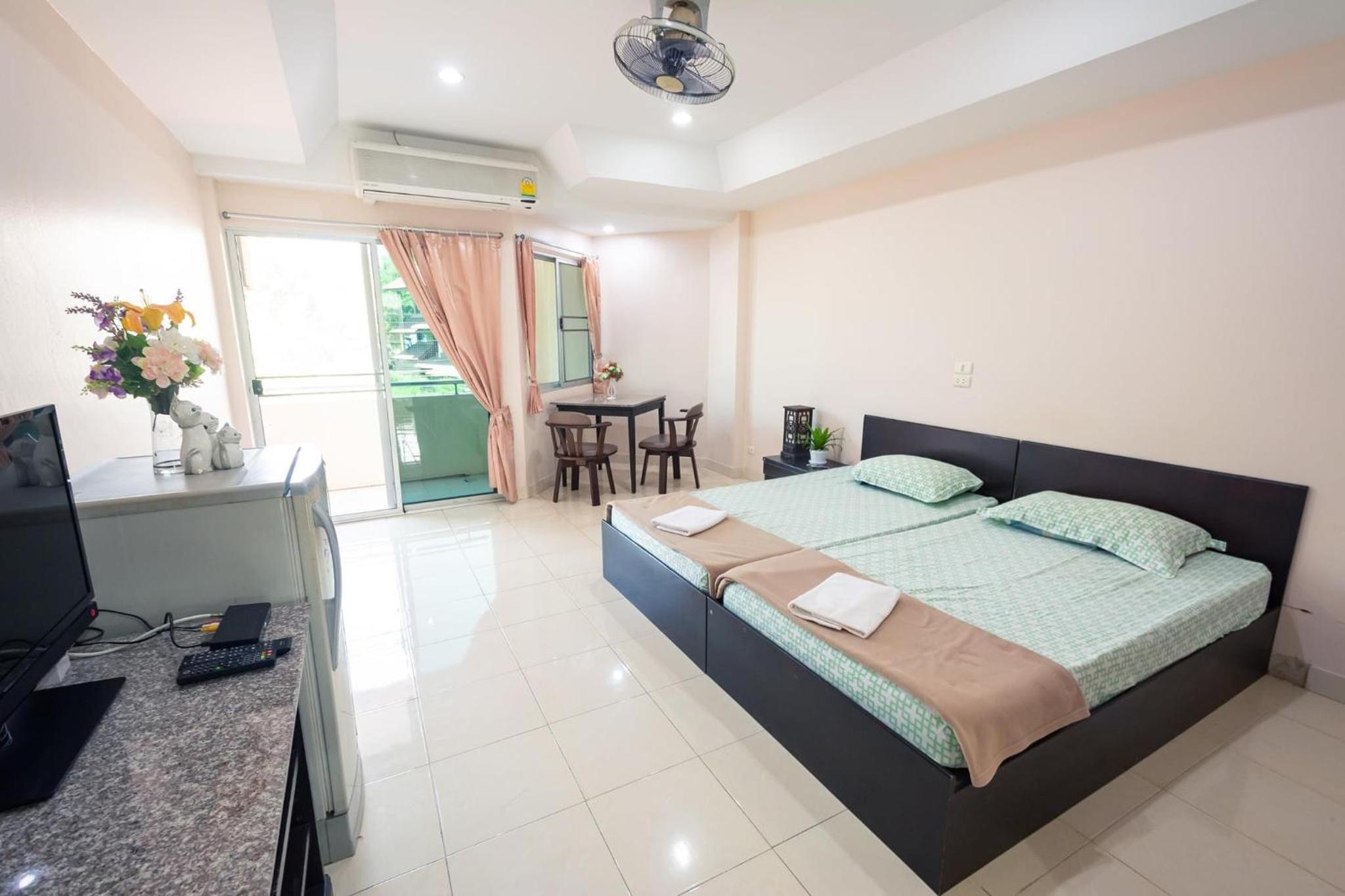 Each room at แสนสุขอพาร์ทเมนท์ is thoughtfully designed with a terrace, a seating area, and a flat-screen TV for relaxation. The air conditioning and private bathroom in every room ensure a comfortable stay for all guests.