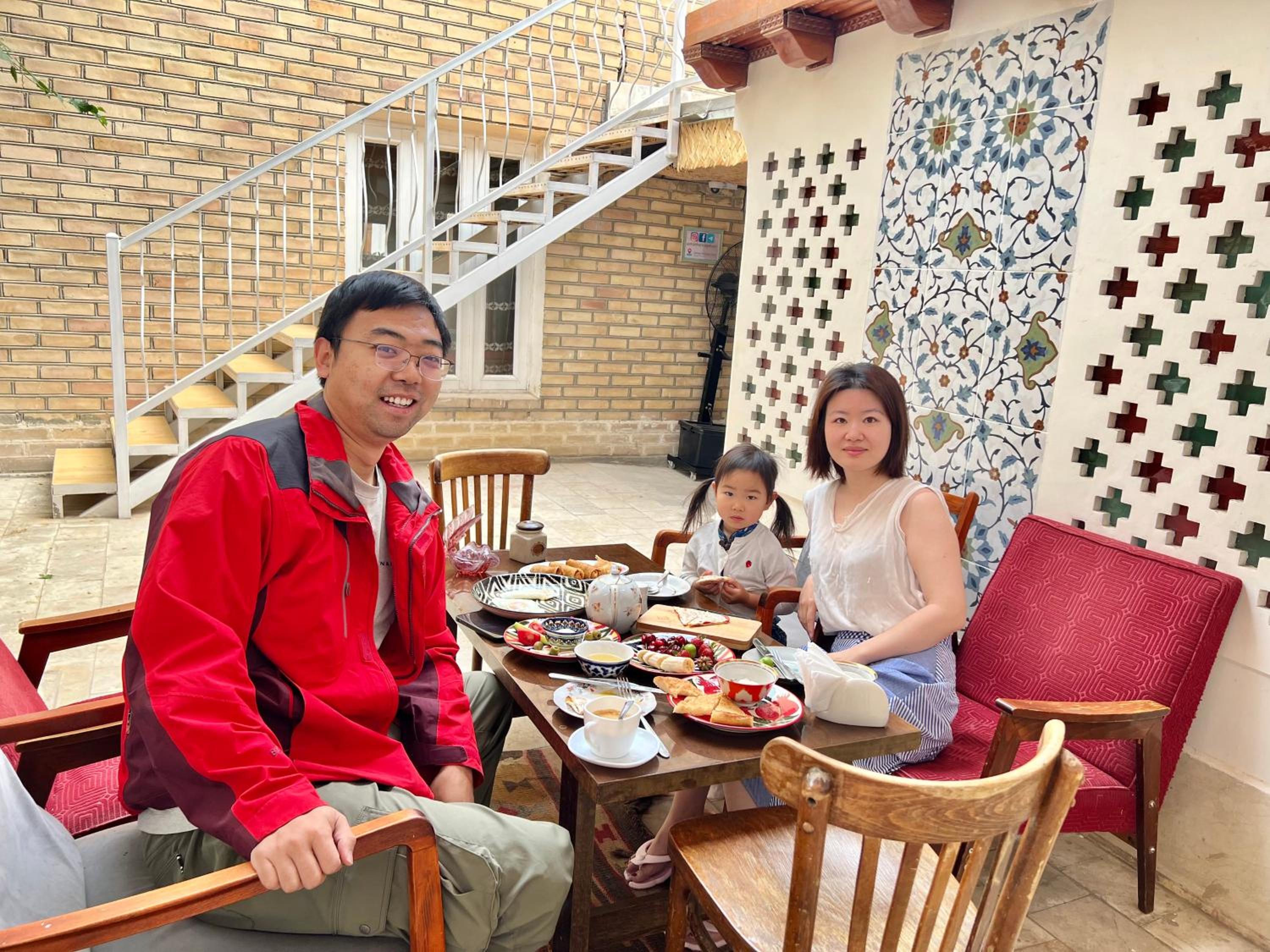We had an exceptional stay for 4 nights. The location is perfect, in a quiet alleyway 5 minutes walk from Lyabi Hauz, the focal point of town. Umin has transformed his family home into a lovely little boutique hotel. He has paid particular attention to getting all the details right, both in the decor of the place and with high quality practical matters - fast internet, back up systems for power and water etc. Breakfast is served in a charming room and was by far the best we had in Uzbekistan, cooked fresh, different every day and carefully tailored to the tastes of the individual guests. Best of all Umin speaks fluent English and is fascinating to talk to about his family history and Bukhara generally. His wife, Gulshan, also speaks fluent English as well as Japanese. It was an uplifting experience to stay with these lovely people.