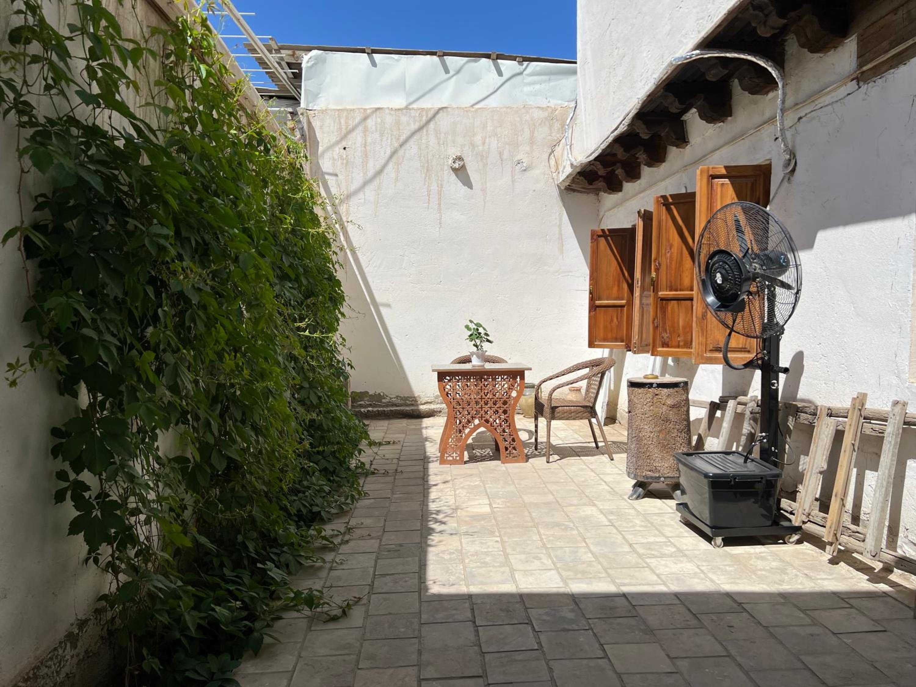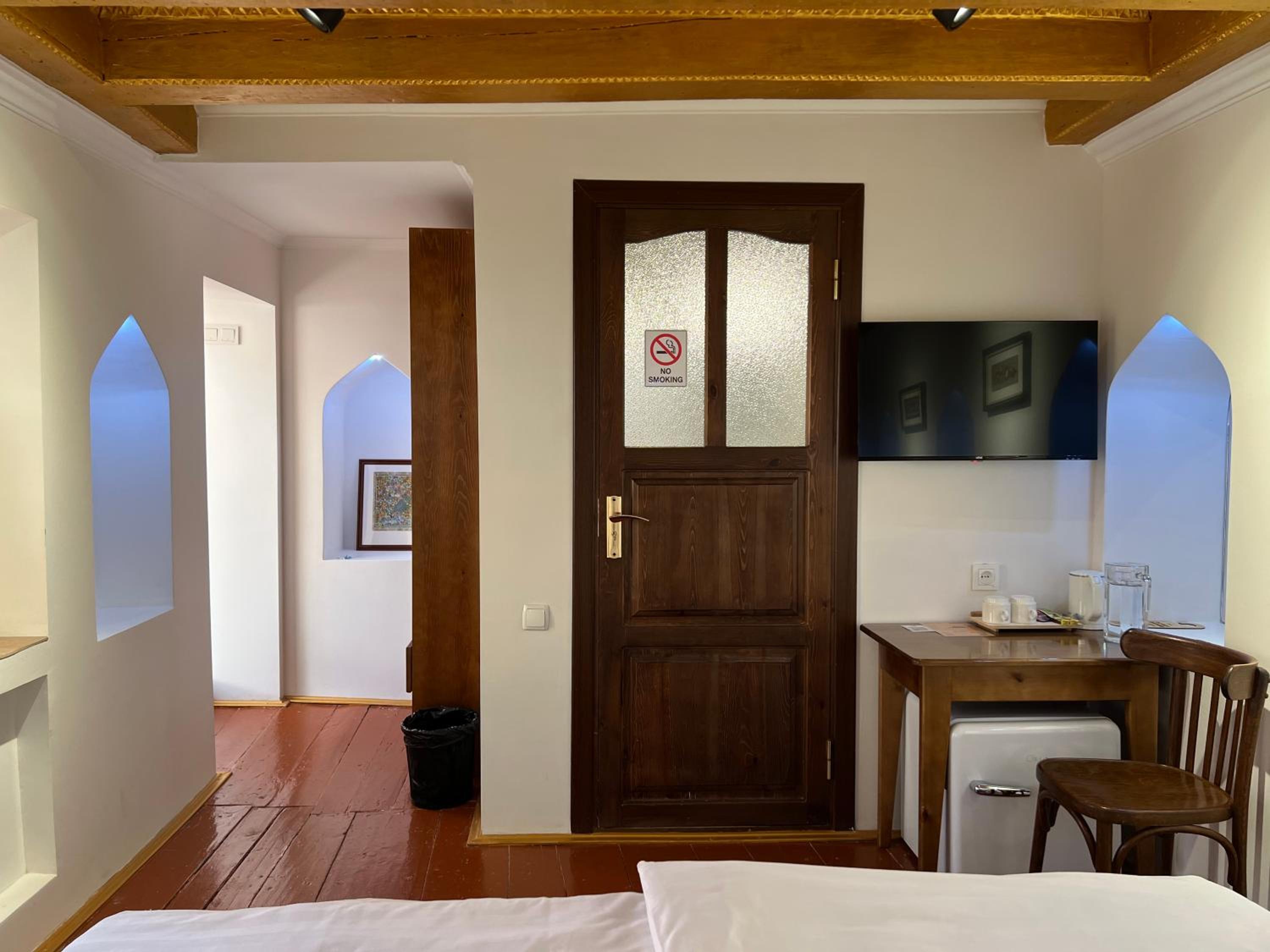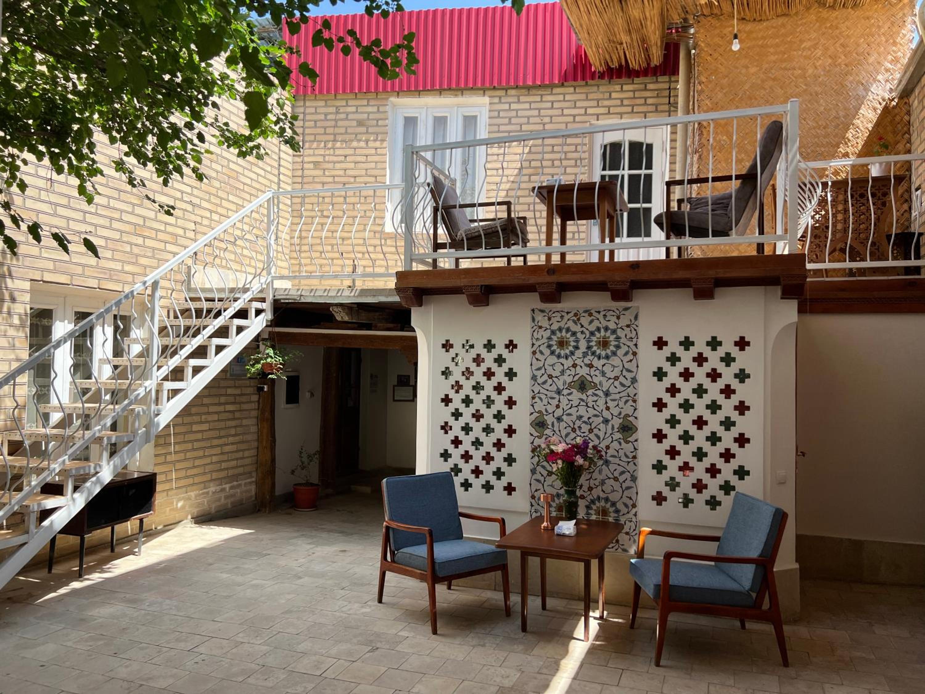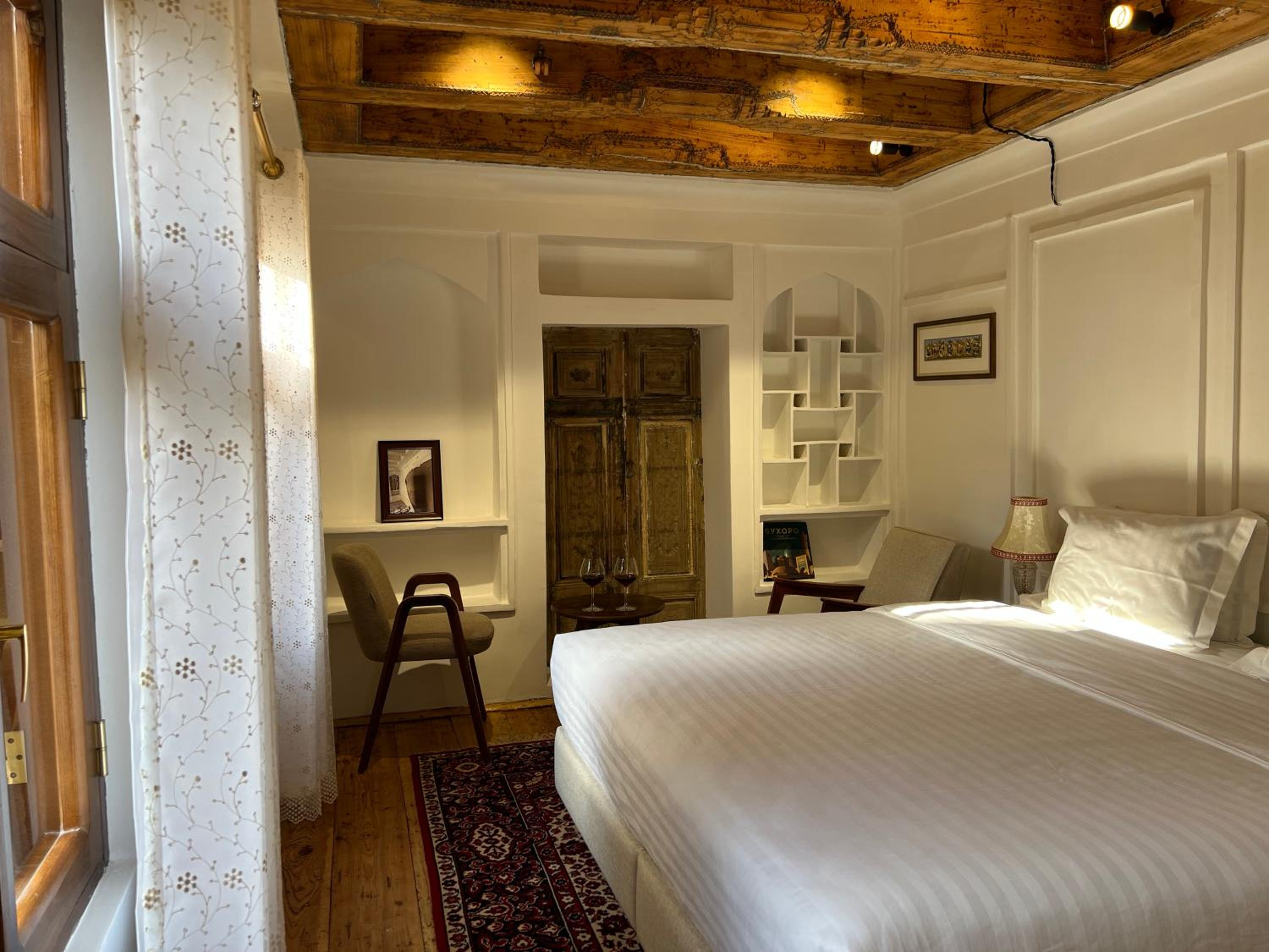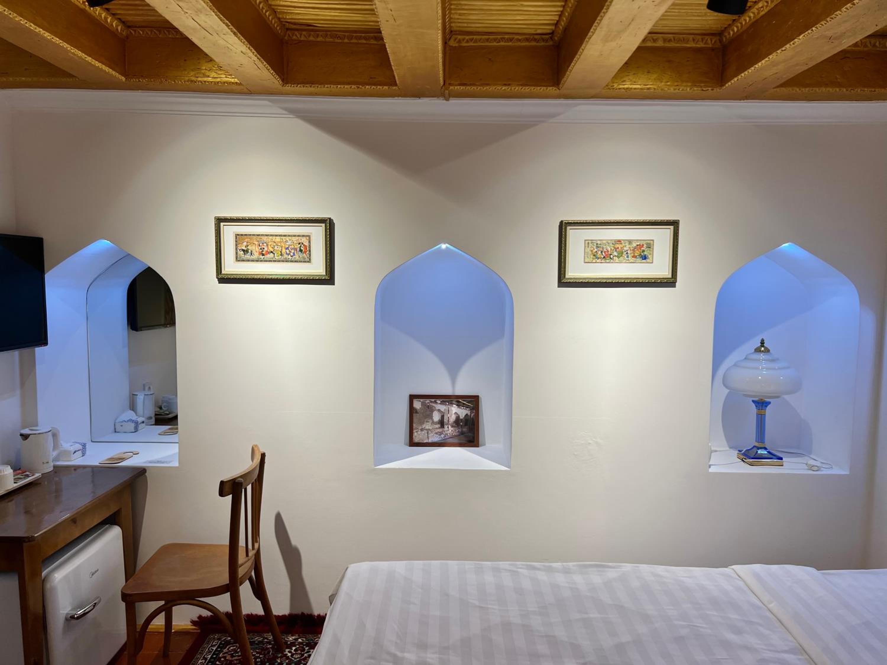 Beautifully preserved family property. Retained age old feel but with modern facilities ( a/c, great shower). The breakfast room was such a beautiful space to enjoy the splendid and plentiful breakfast. Also a late night cop of tea made by Umid when I had to unexpectedly call my son. He and his wife were so kind throughout our stay and made a magical Bukhara yet more special