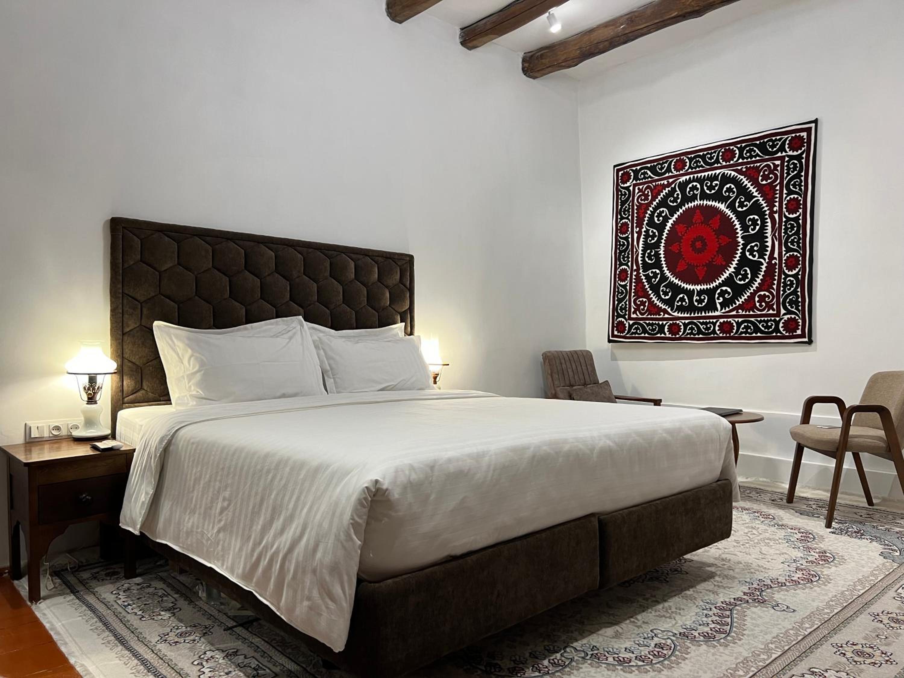 Experience comfort and style at Usman Heritage Hotel in Bukhara. Each guest room is equipped with modern amenities and a private bathroom, ensuring a relaxing stay. Some rooms even offer terraces and city views for a memorable experience.