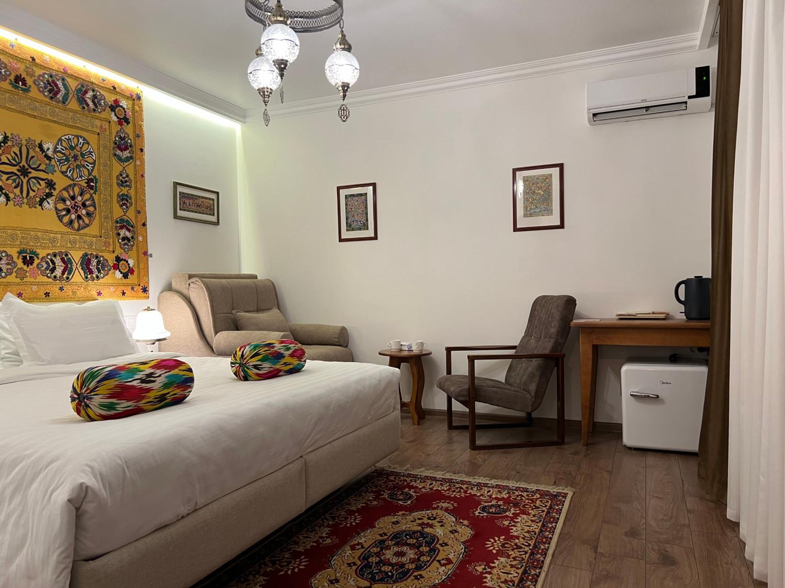 The Usman Heritage is a quaint, very well decorated boutique hotel. The owner, Umid, showed us wonderful hospitality and service. The room was very clean and was a nice place to relax away from the Bukhara heat.