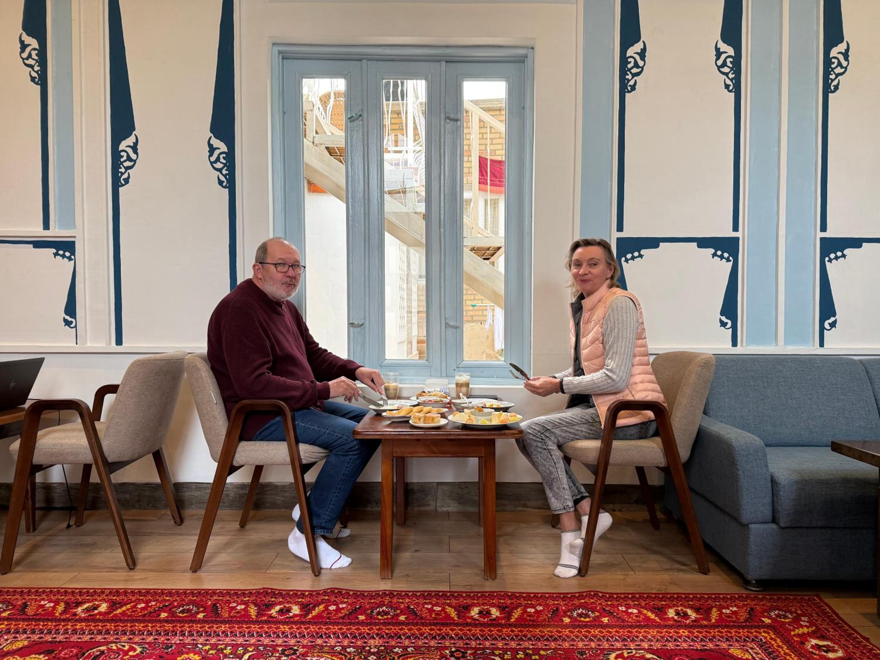 We really enjoyed our 2 night stay at Usman heritage, we were made to feel very welcome as soon as we arrived and the room was so nice and peaceful with all the amenities needed, including a fridge, smart tv, ac etc and the home in general was amazing, Umid and his family were really helpful and nothing was too much trouble and was a great help in arranging us a ride back to the train station. The breakfast was delicious with lots of variety and it was nice to learn about some history of the property from Umid. Location is great just a few minutes walk and you’re in the old town, would highly recommend staying here if visiting Bukhara!