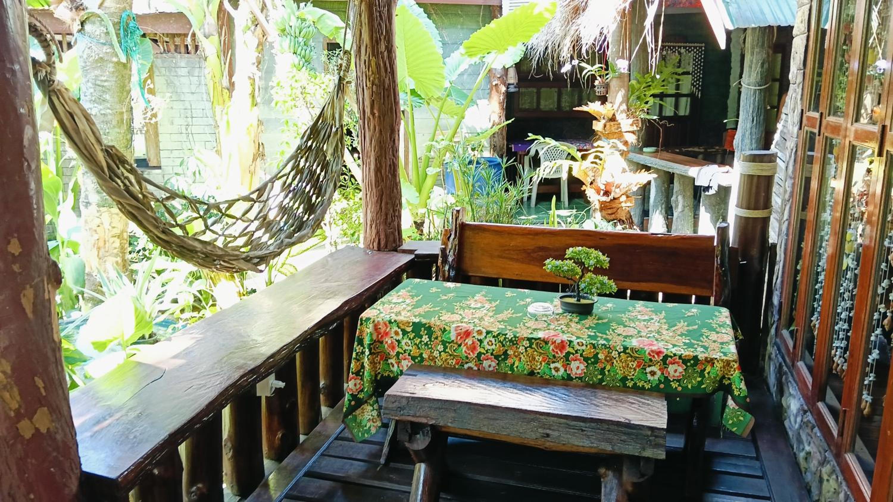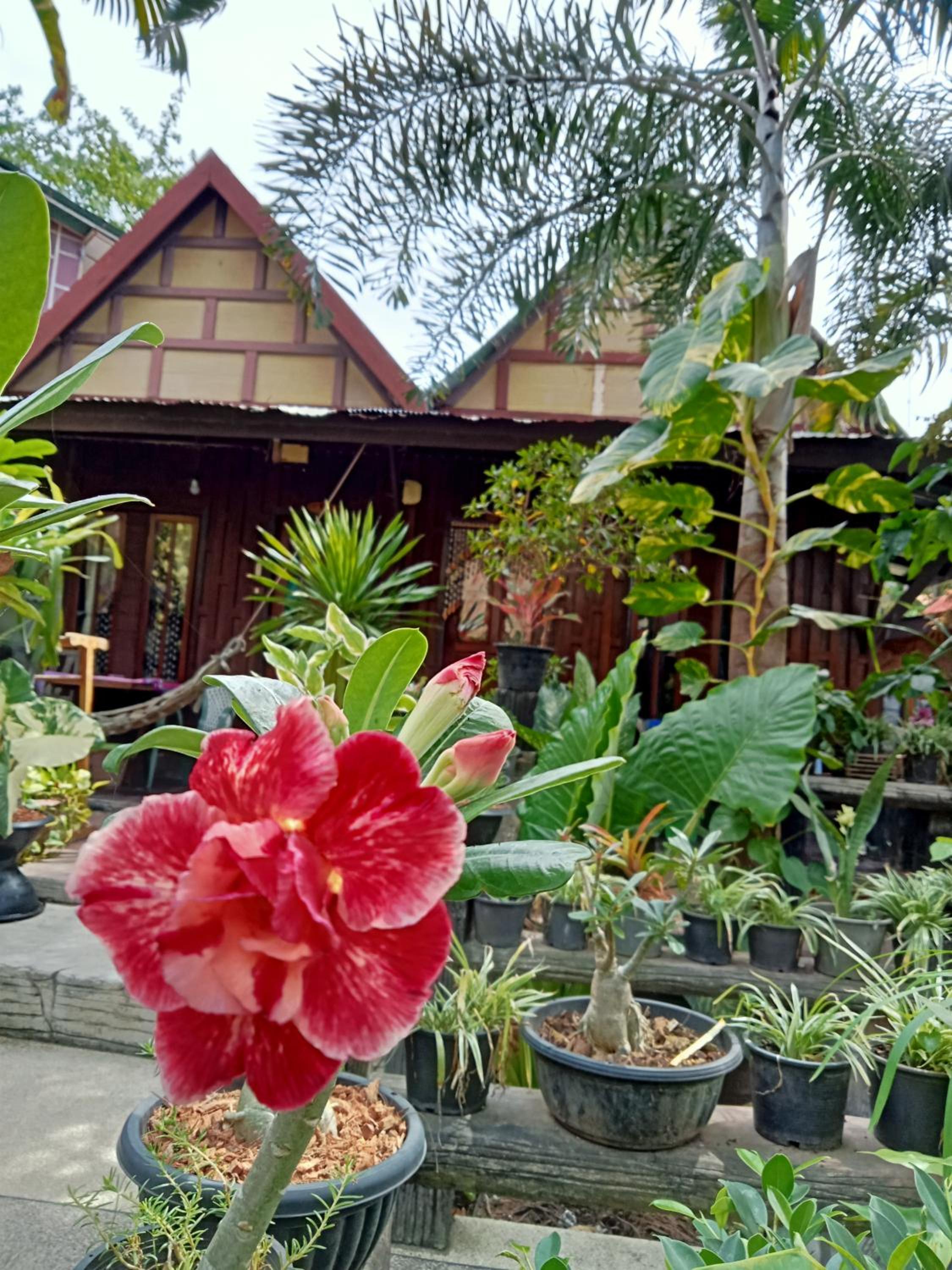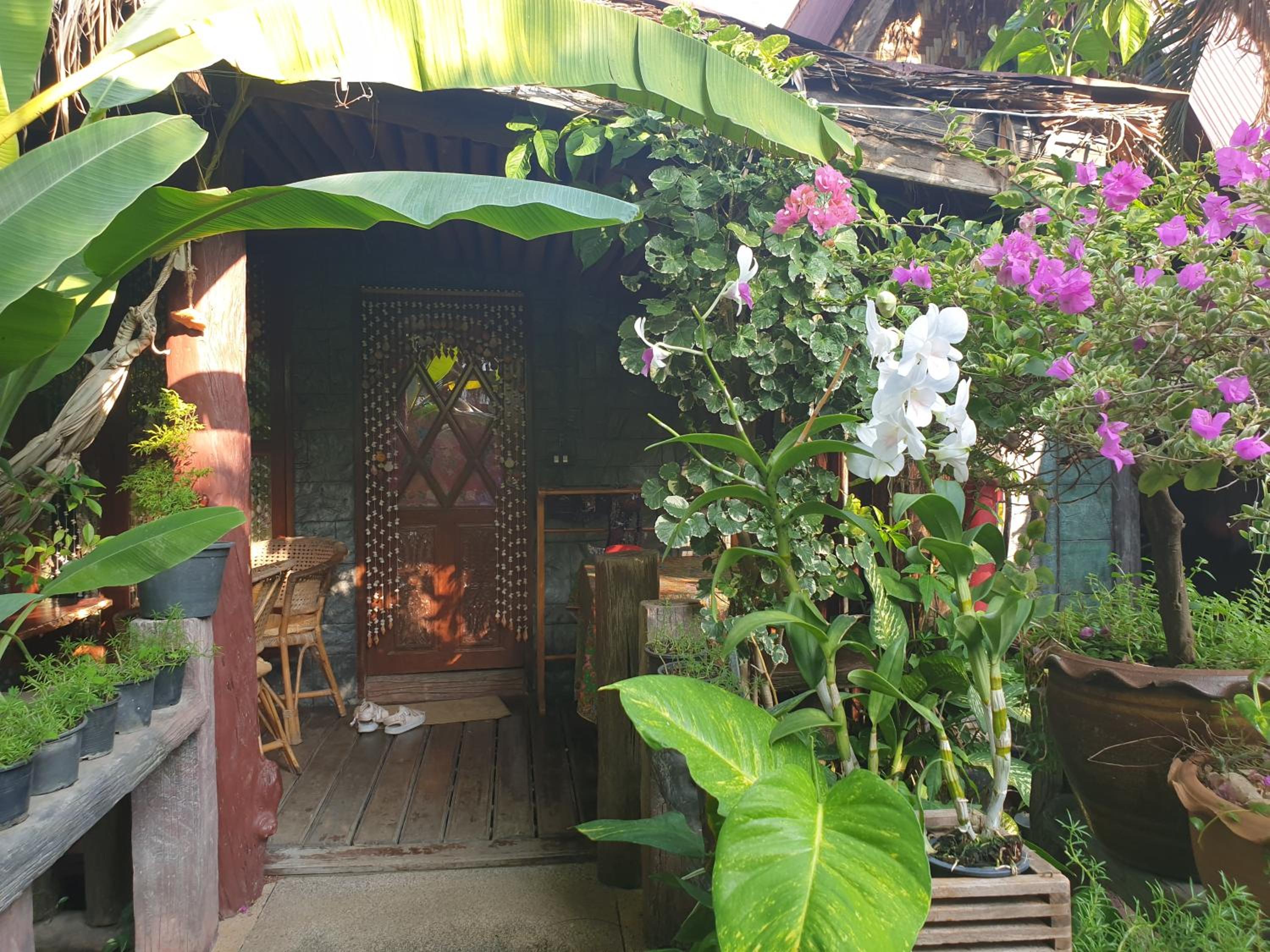Il giardino ,che circonda queste vecchie abitazioni tailandesi trasformate in hotel, e’ molto carino.