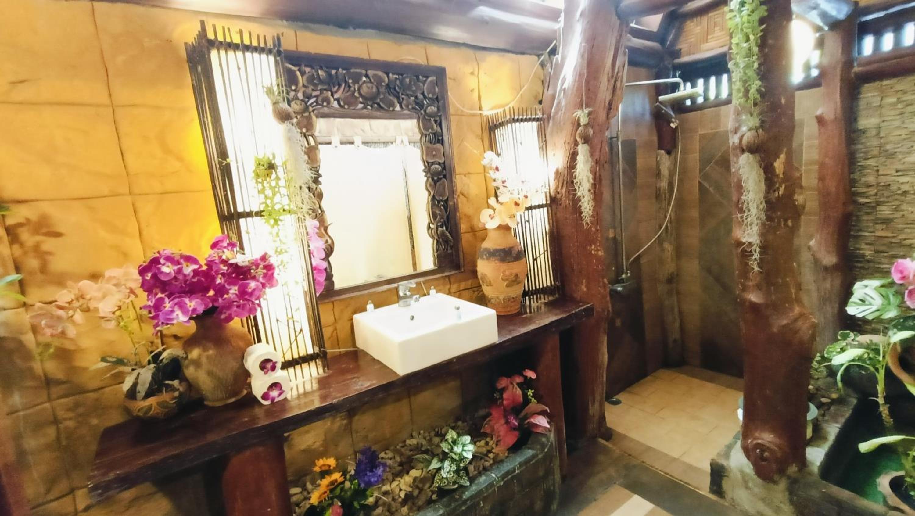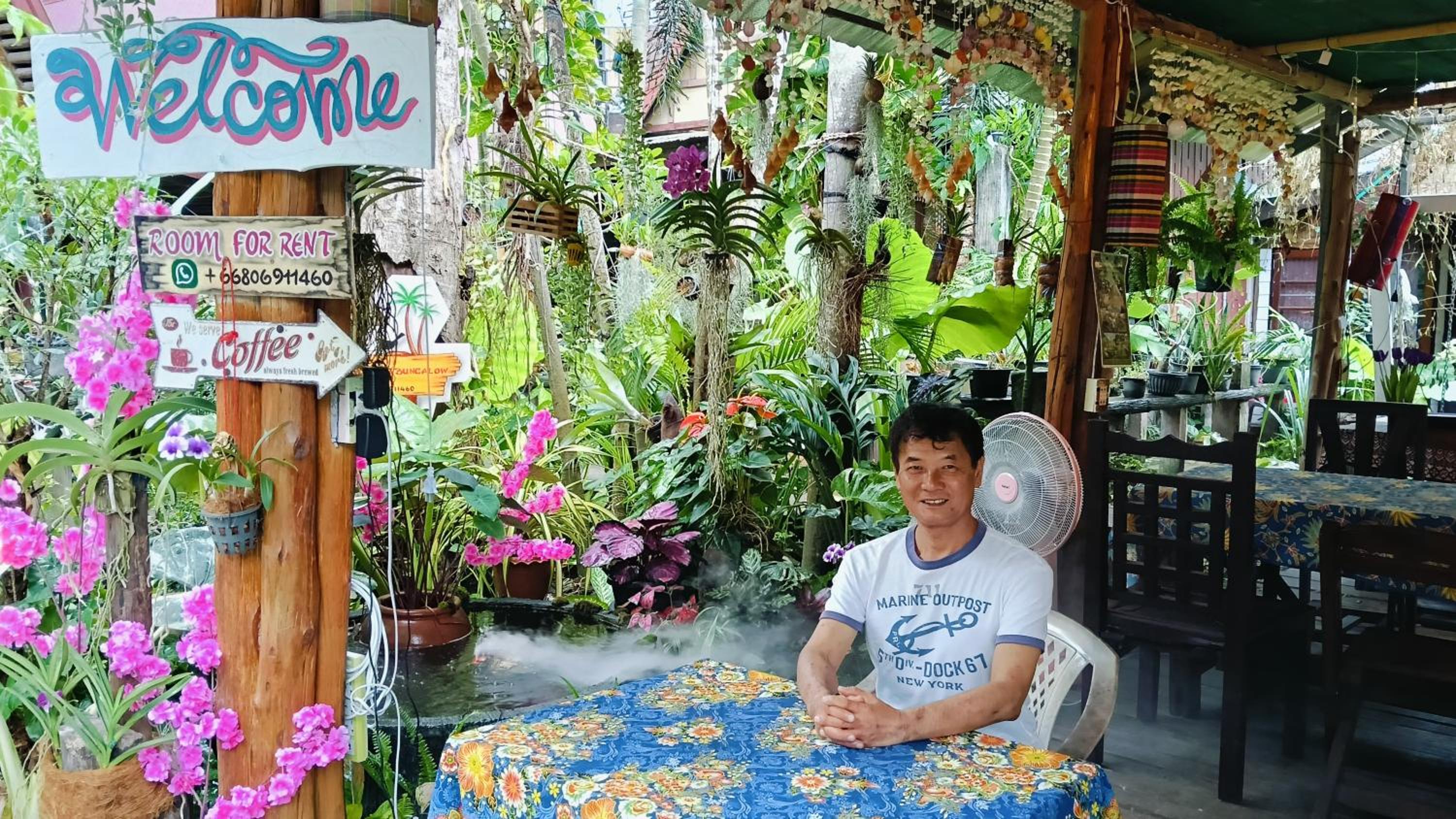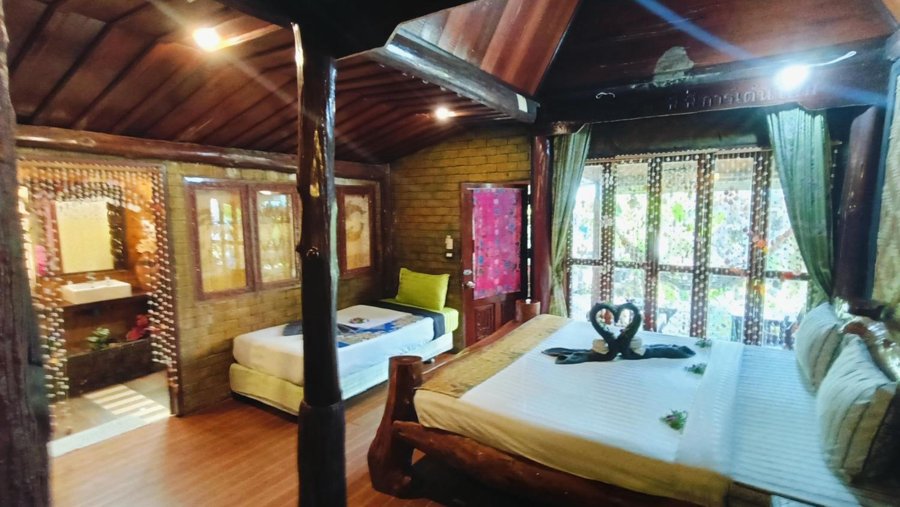 Il giardino ,che circonda queste vecchie abitazioni tailandesi trasformate in hotel, e’ molto carino.