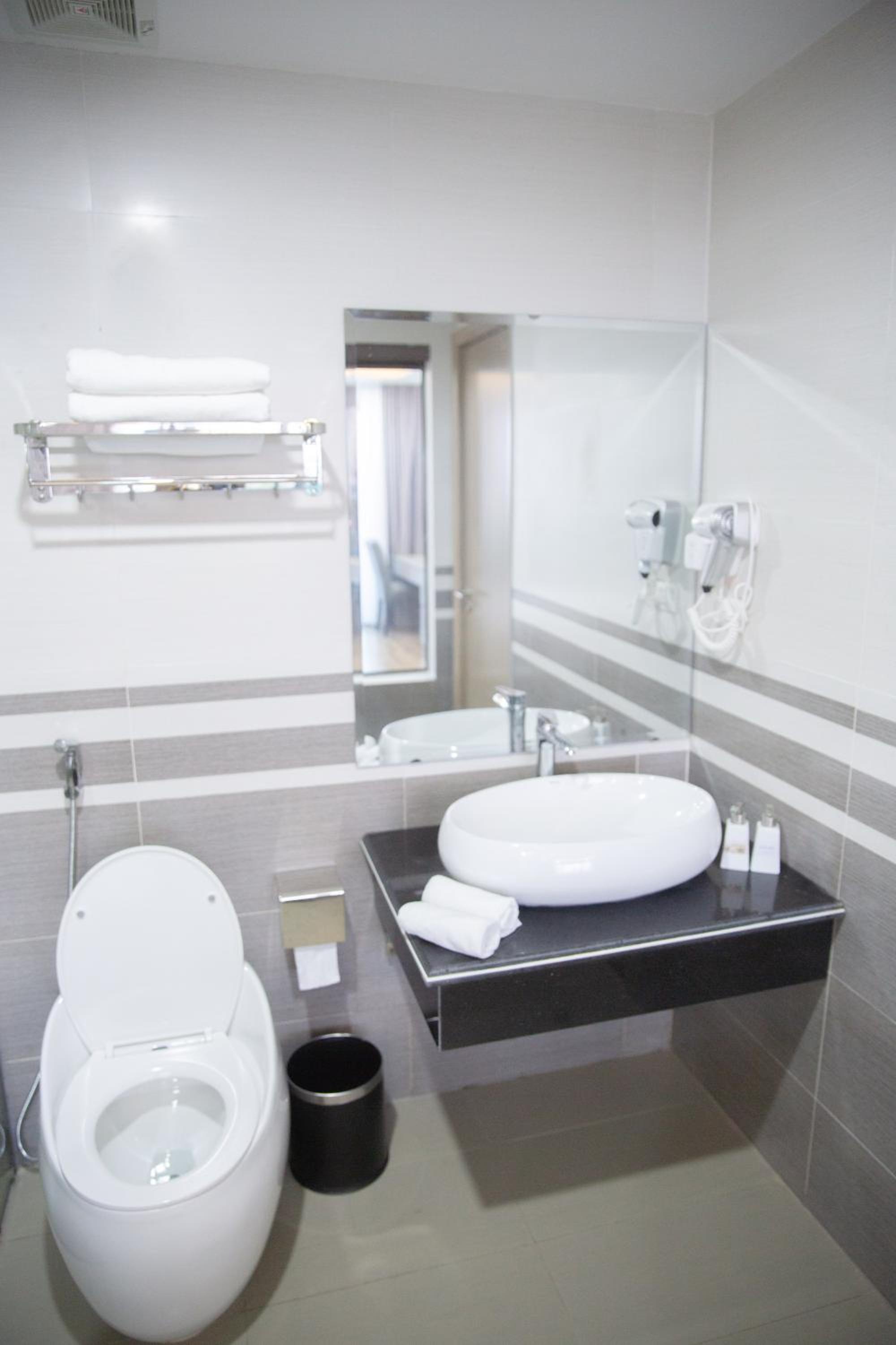 The rooms are very spacious and beautiful. There is a TV and a fridge in the room. The staff is really friendly and the view is nice. The rooftop Pool is also really nice, comfortable and the water seems clean. There is a big waterpark really close to the hotel.