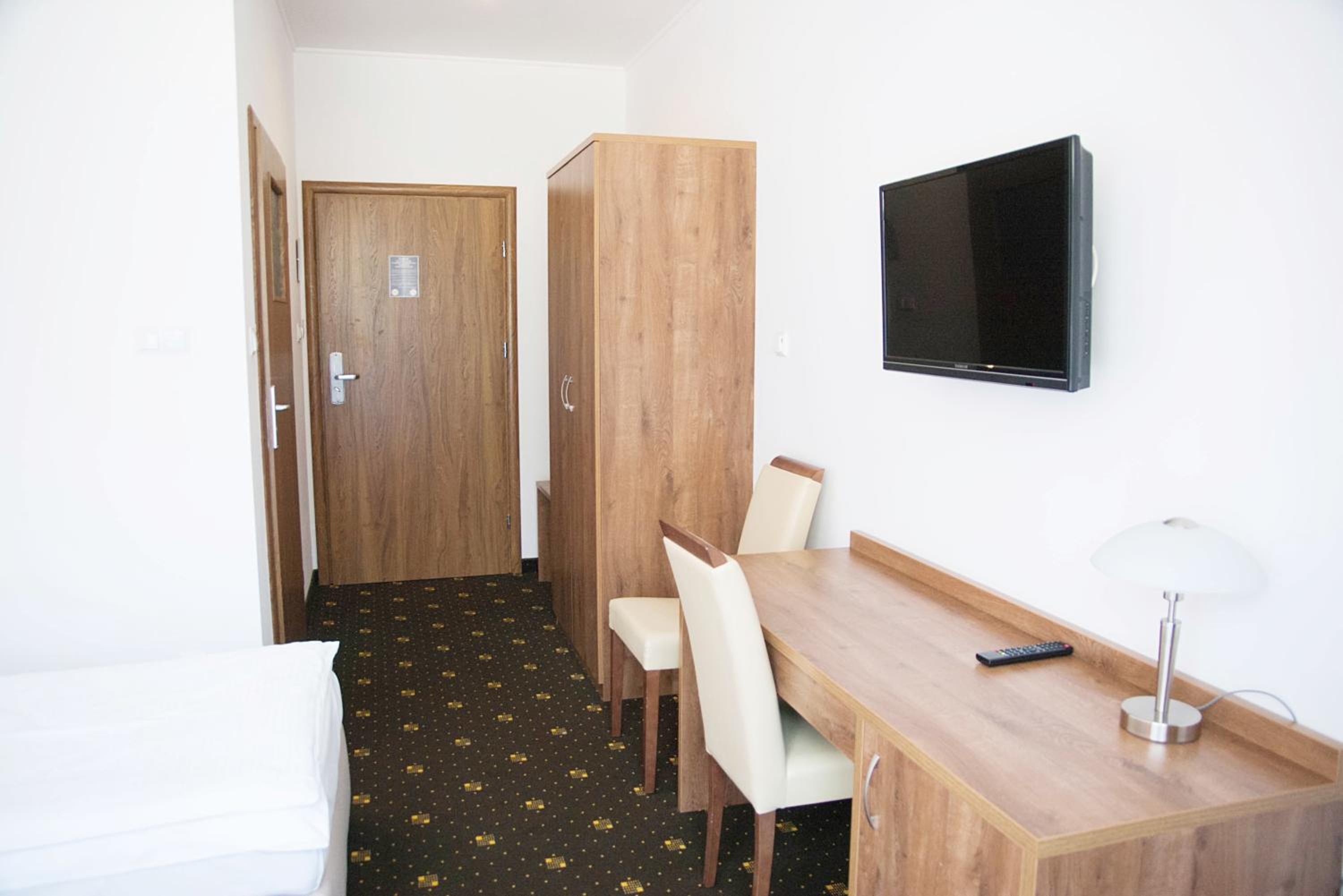 Nice, big hotel. The room was simple and small, but with the huge bathroom. Comfortable bed. We had a quick registration. Good breakfast. Nice parking.