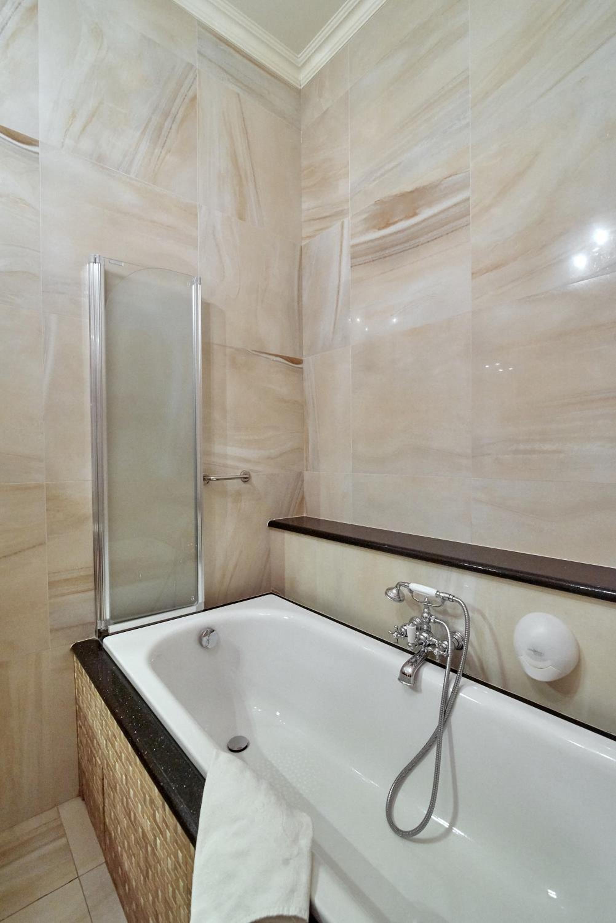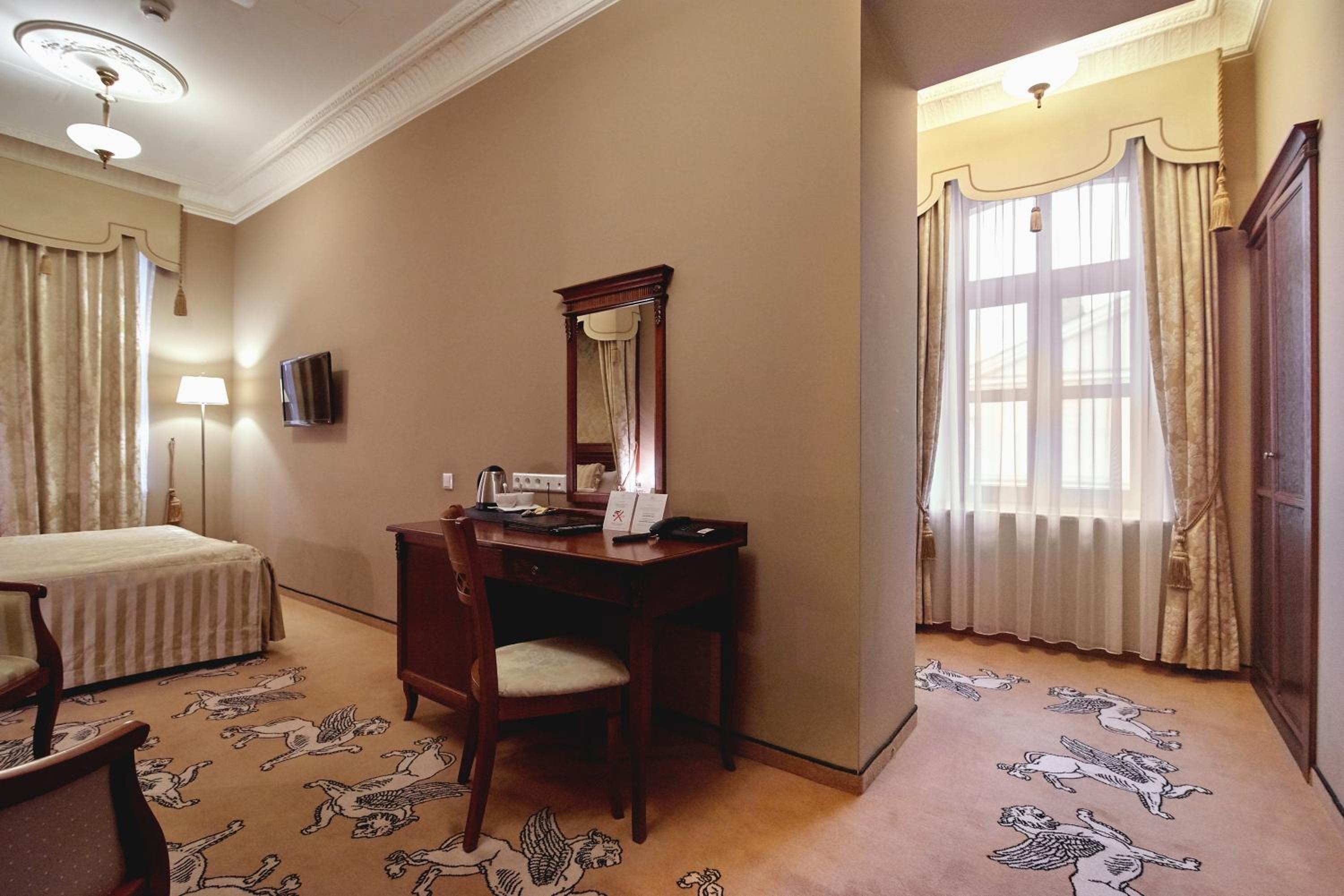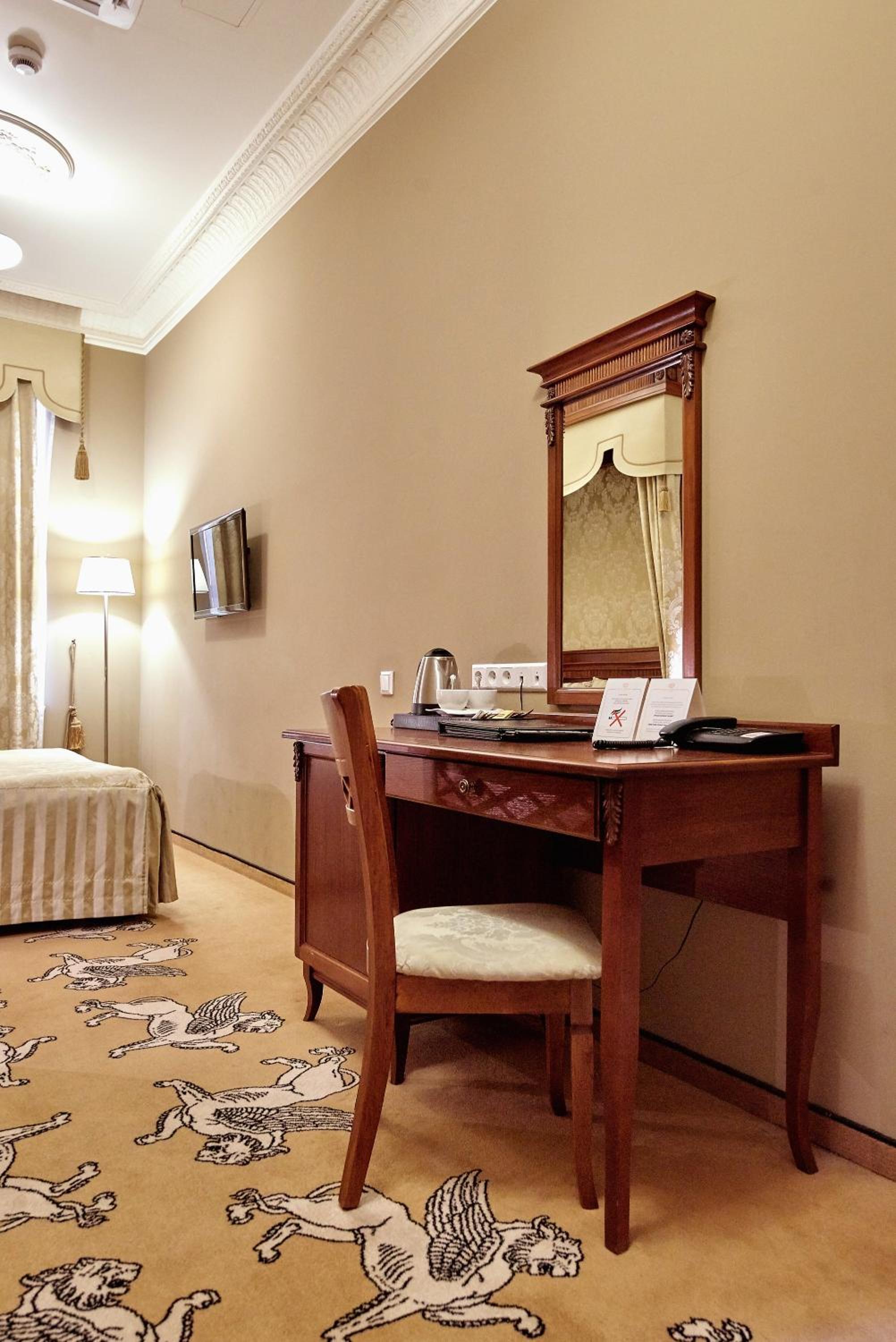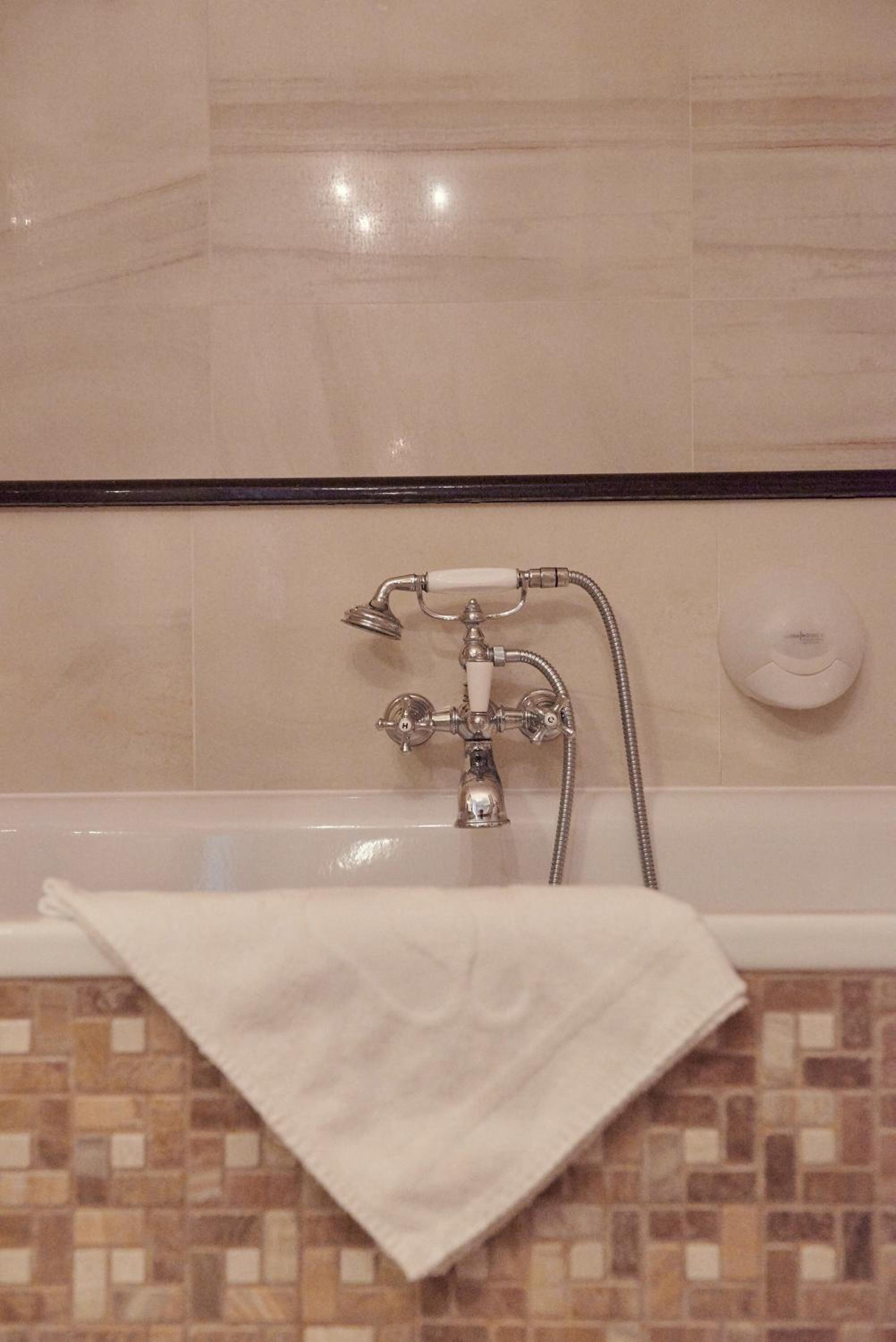 Each room is equipped with a flat-screen TV, laptop safe, and a complimentary mini-bar. The bathroom includes premium toiletries and a choice of shower or bath, ensuring a comfortable stay.