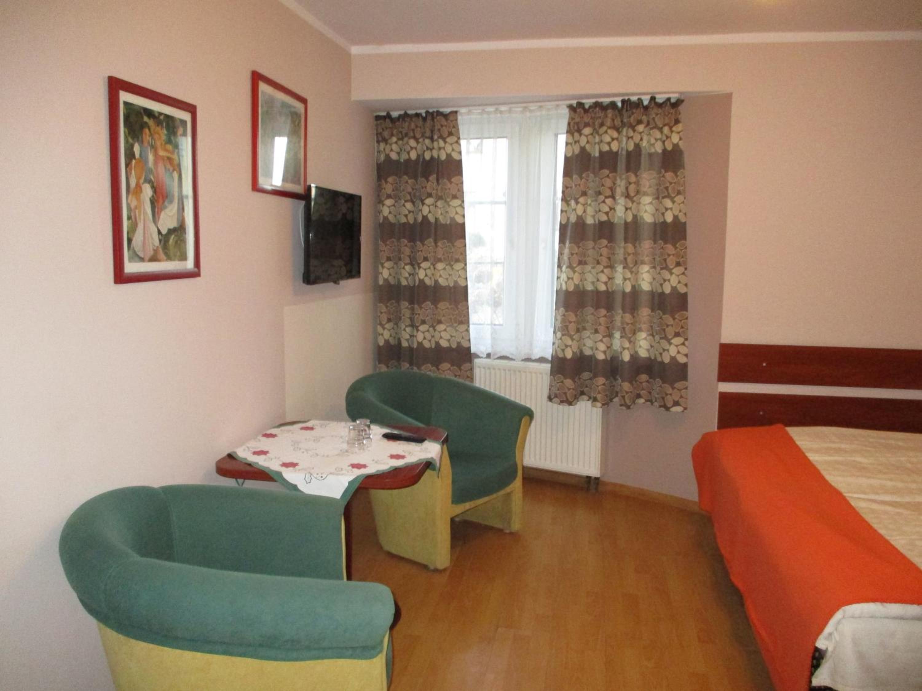 Hotel Pod Platanami in Trzebnica offers bright and spacious rooms equipped with a TV and private bathrooms, ensuring a comfortable stay. The common dining area adds a touch of homeliness to your experience.