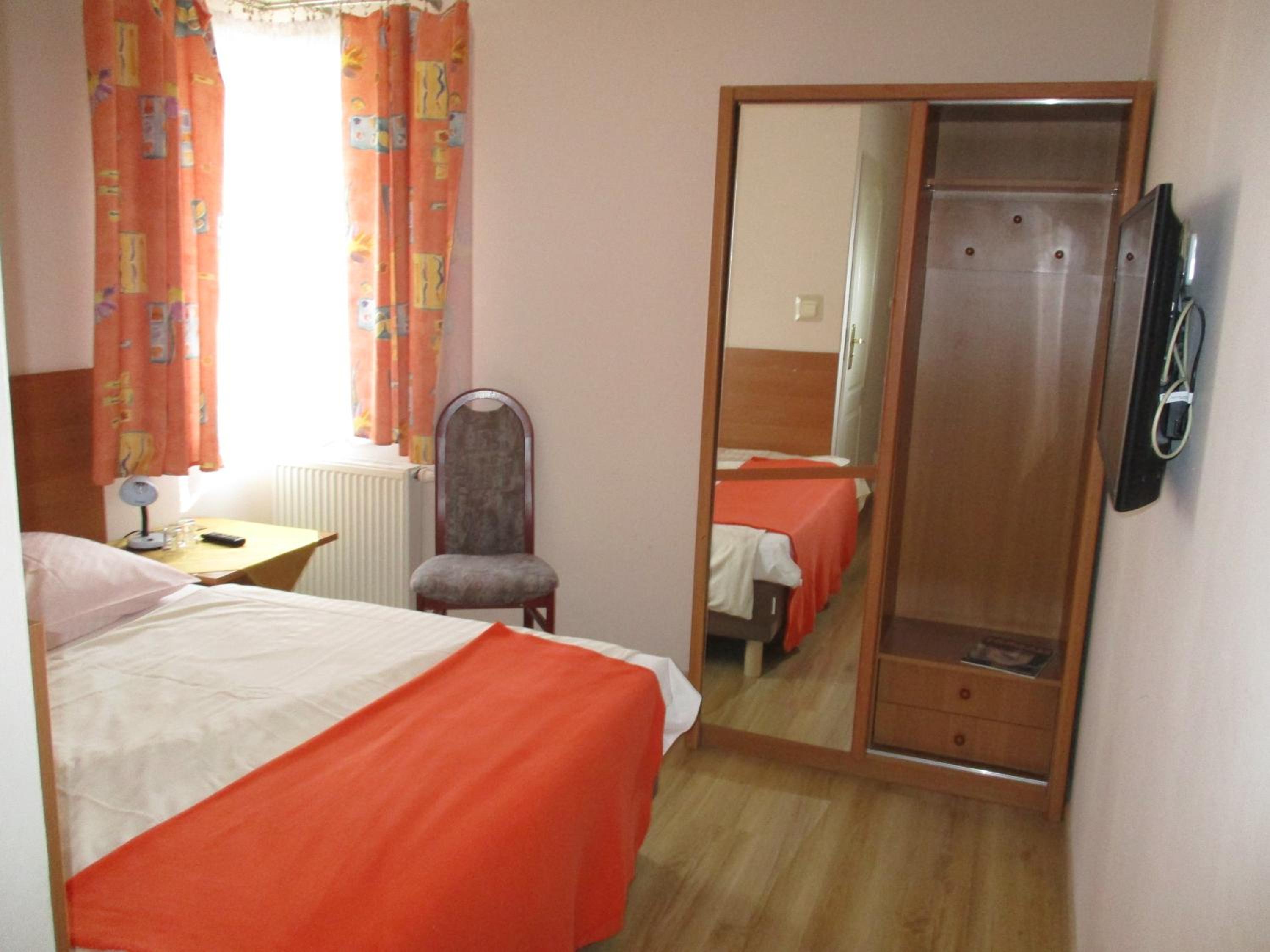 bardzo stary i zaniedbany budynek, wszystko stare, dbanie o czystość na niedostateczny, nieludzko sprana i szarawa pościel. poduszki które widziały pewnie 1 tys. głów plus, ciemny i ponury, miniaturowy pokoik, TV nie działało, internet on/off