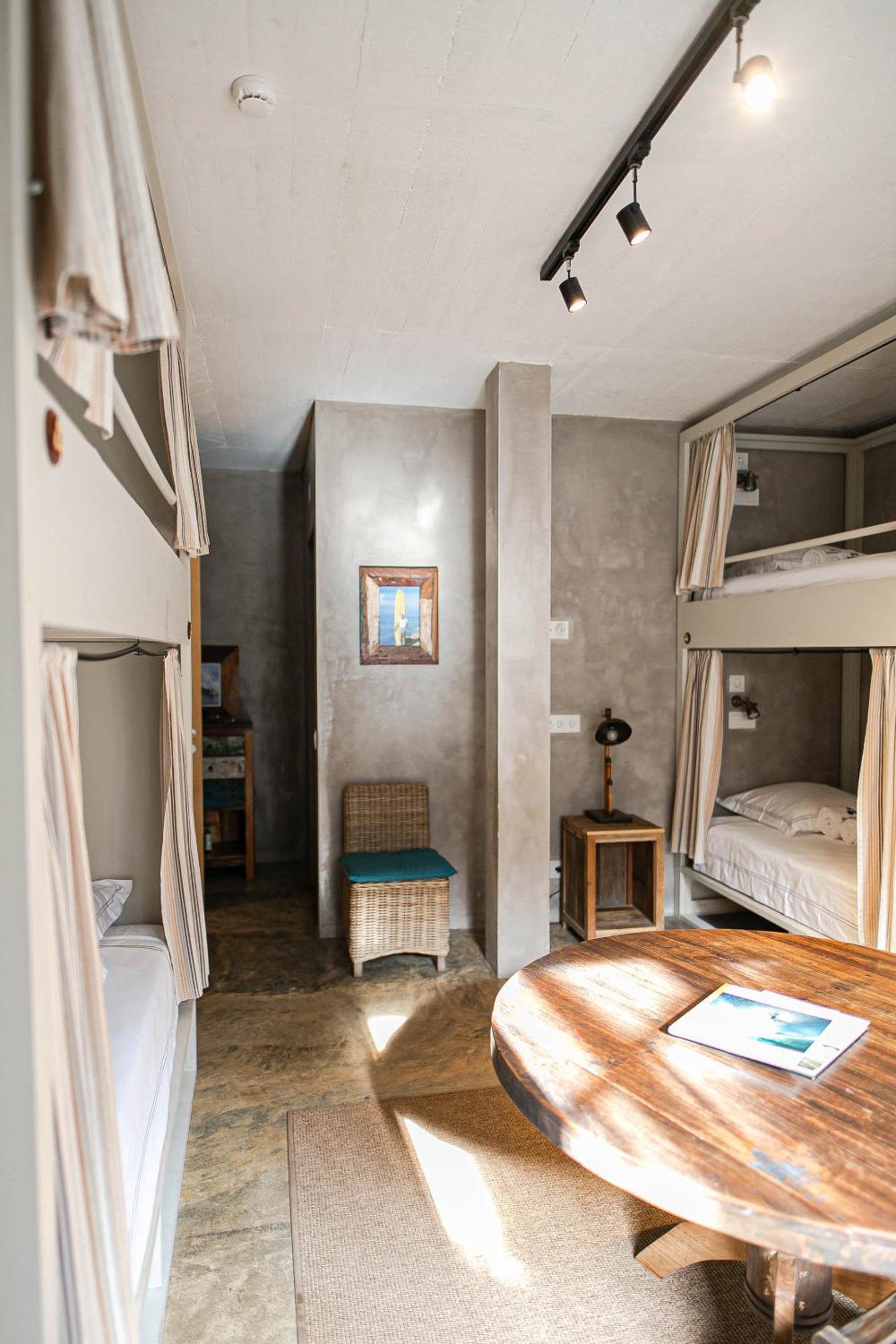 Surfers Lodge Peniche stands out with its environmentally-friendly construction using parts of old boats, offering a charming and sustainable stay.