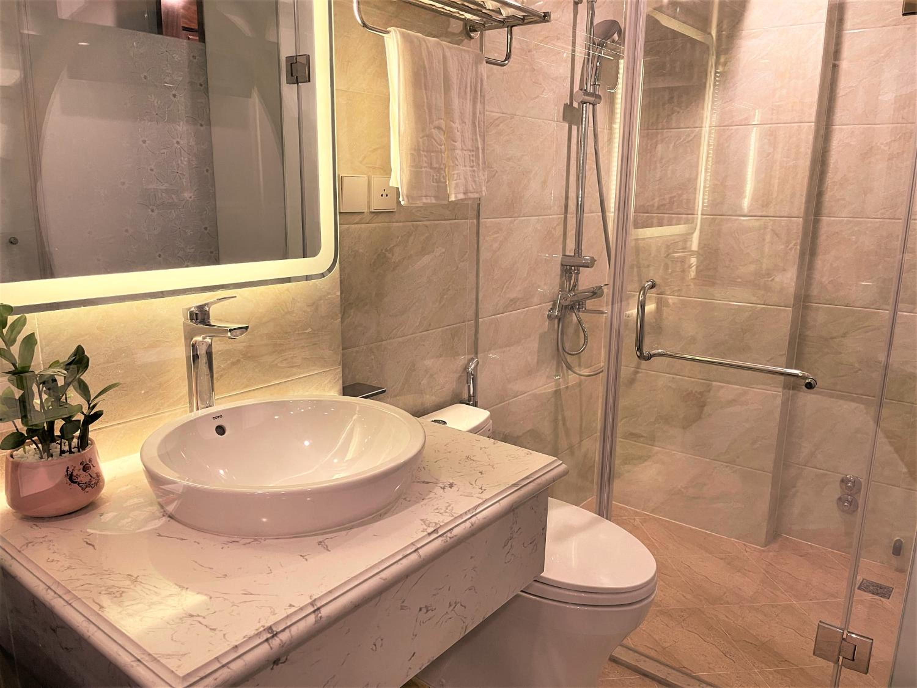 Es ist ein bisschen eng im Zimmer, wenn man mit großem Gepäck unterwegs ist. Auch die Dusche ist nichts für kräftigere Leute. Der originale, nicht reduzierte Booking-Preis von 10 Mio VND pro Nacht ist ein Fantasie-Preis.