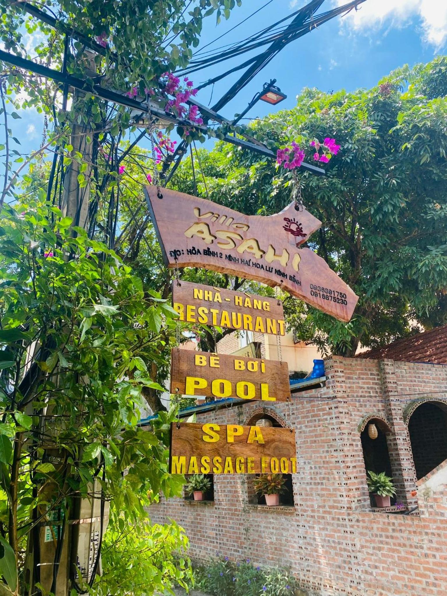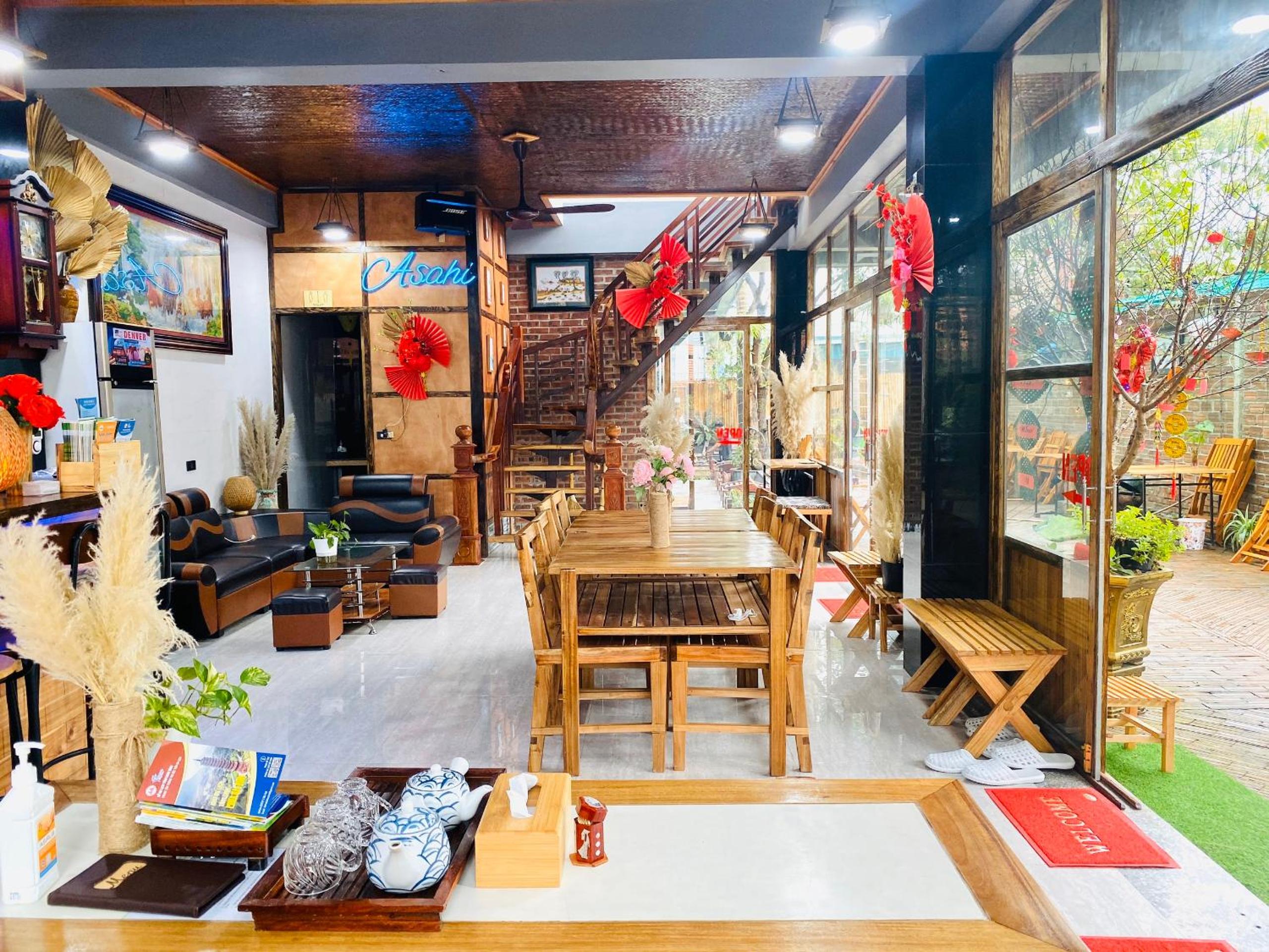 Le Asahi Villa se trouve dans une petite rue qui permet d'être au calme et pourtant tout près - moins de 5 minutes à pied - de l'embarcadère (pour la visite des grottes en barque) et de nombreux restaurants sur l'artère principale de la ville de Tam Côc. Cet emplacement permet de tout faire à pied (même pour aller au mont Hang Mua ou à la pagode Bich Dông).
