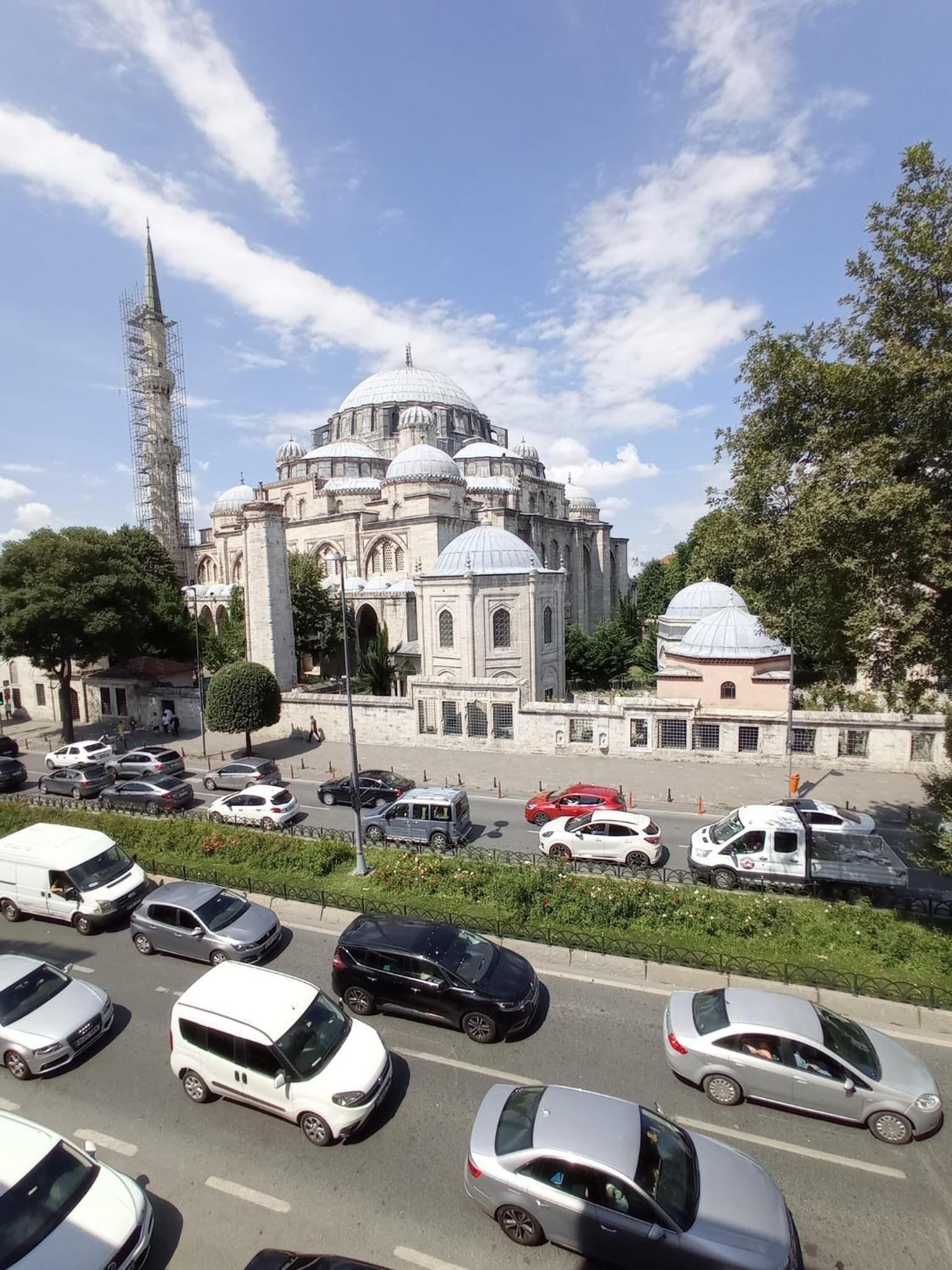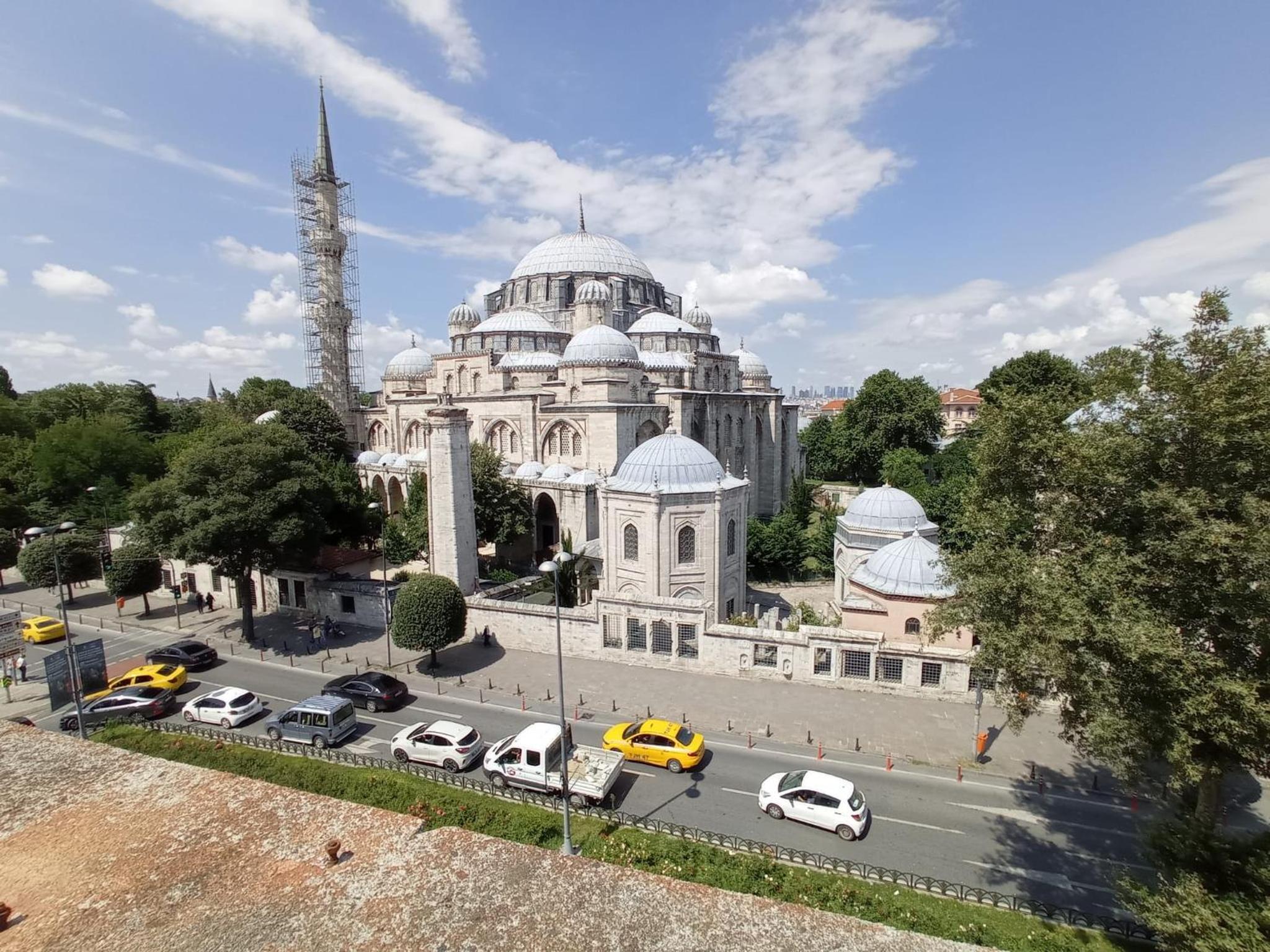 Very convenient location near a metro station, many local food options near the nearby Fatih mosque, helpful and friendly staff, many power outlets