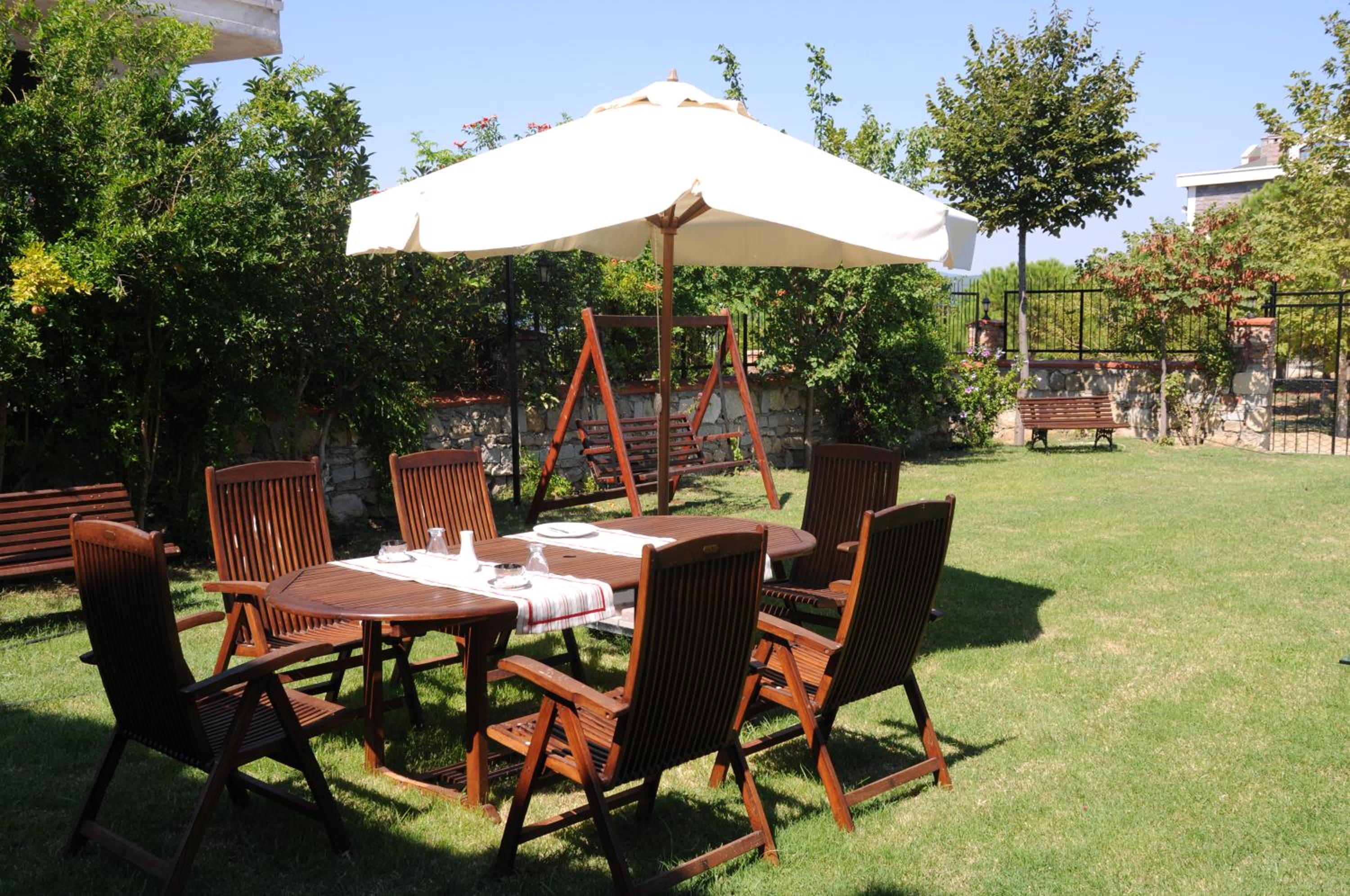 Escape to Hotel Casa Villa's lush green garden and terrace overlooking the picturesque Dardanelles.