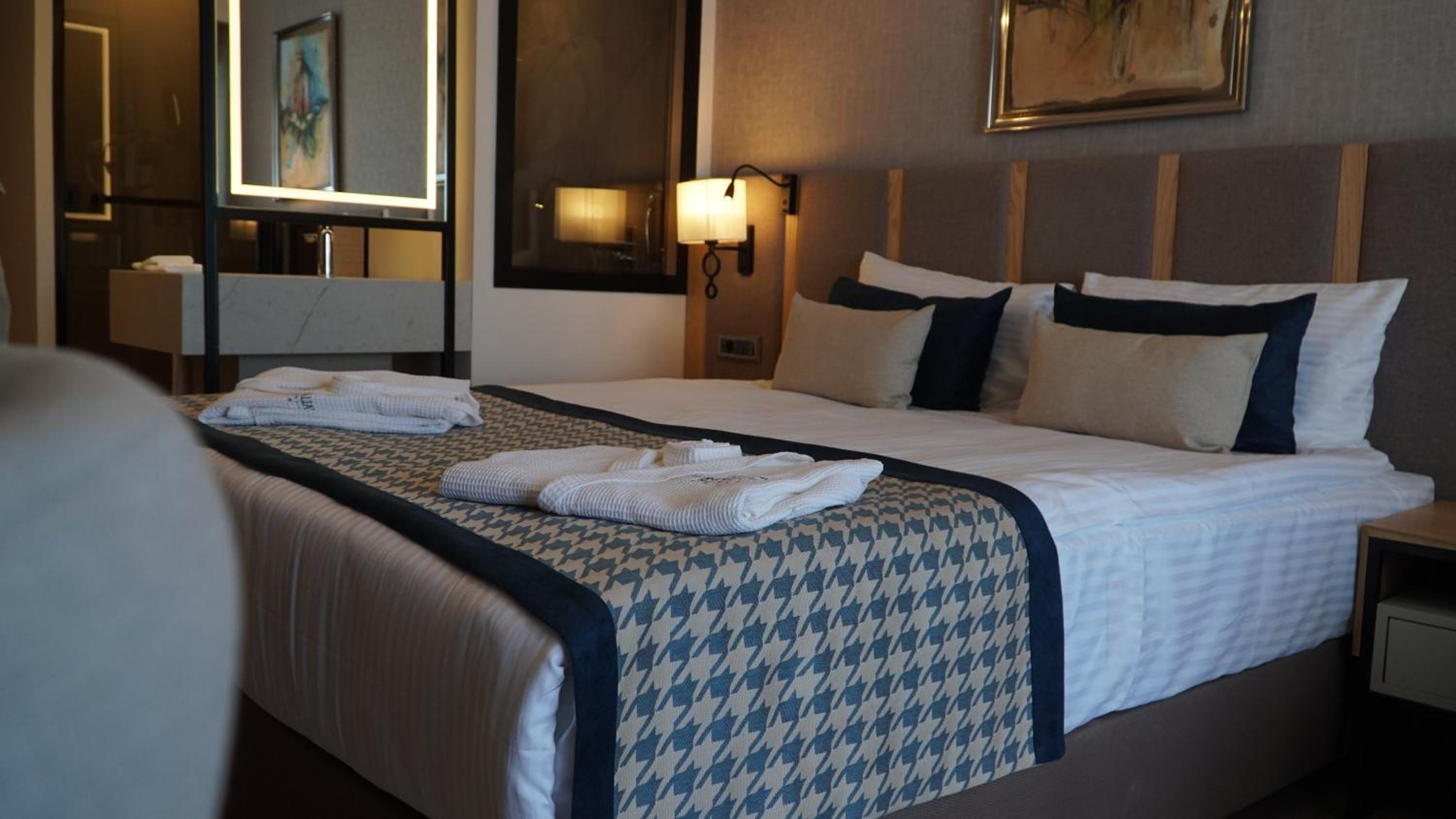 Indulge in our elegantly designed air-conditioned rooms featuring modern amenities such as flat-screen TVs, coffee machines, minibars, and private balconies. Select rooms even offer stunning mountain views, ensuring a stay that ticks all the boxes of comfort and style.