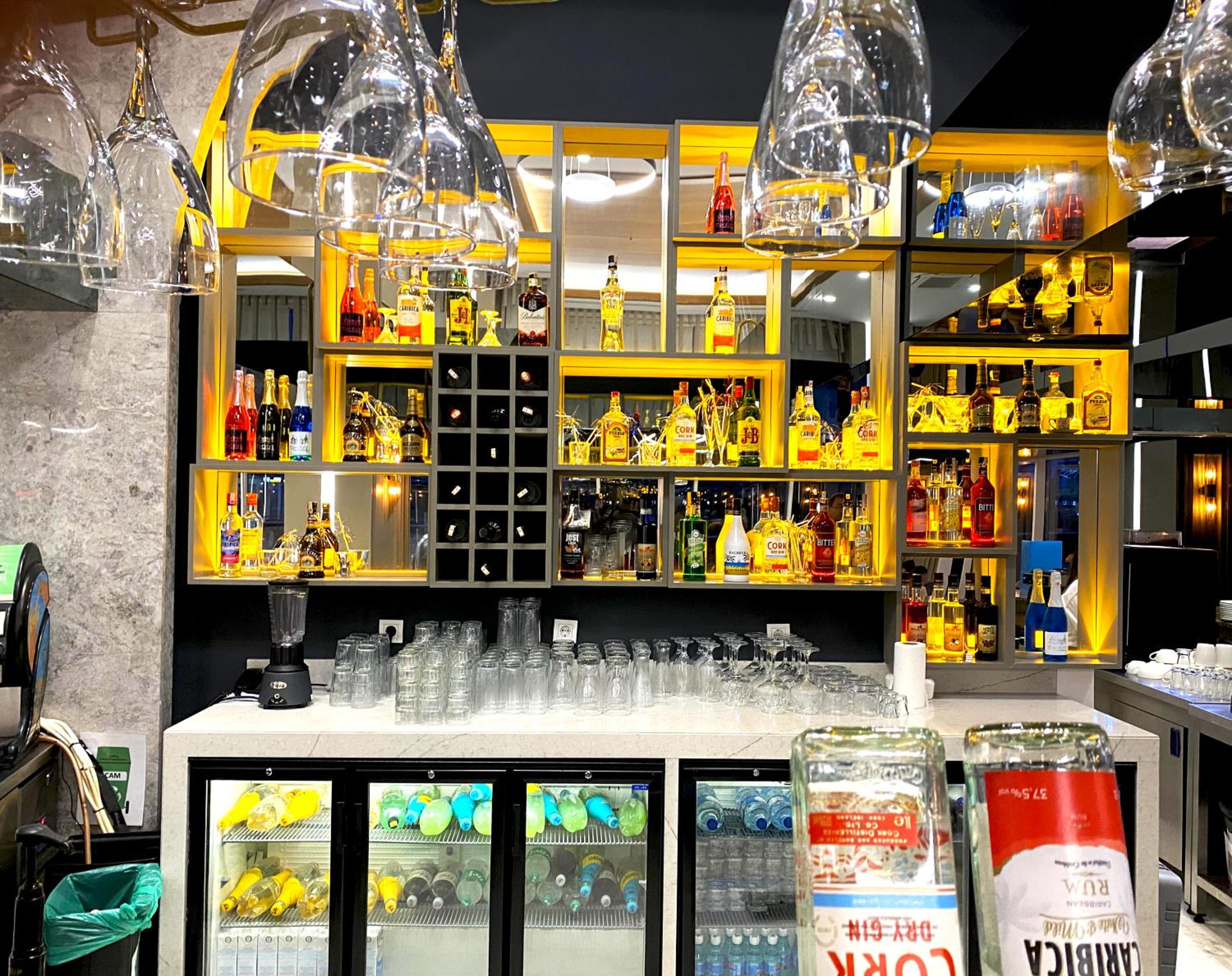 Bara alkoholfria alternativ i minibaren som ingick. Absolut ingen ”finare” dryck i barerna heller, bara vanlig all-inclusivedricka. Ett litet försök i lobbybaren men inga drinkar att skryta om.