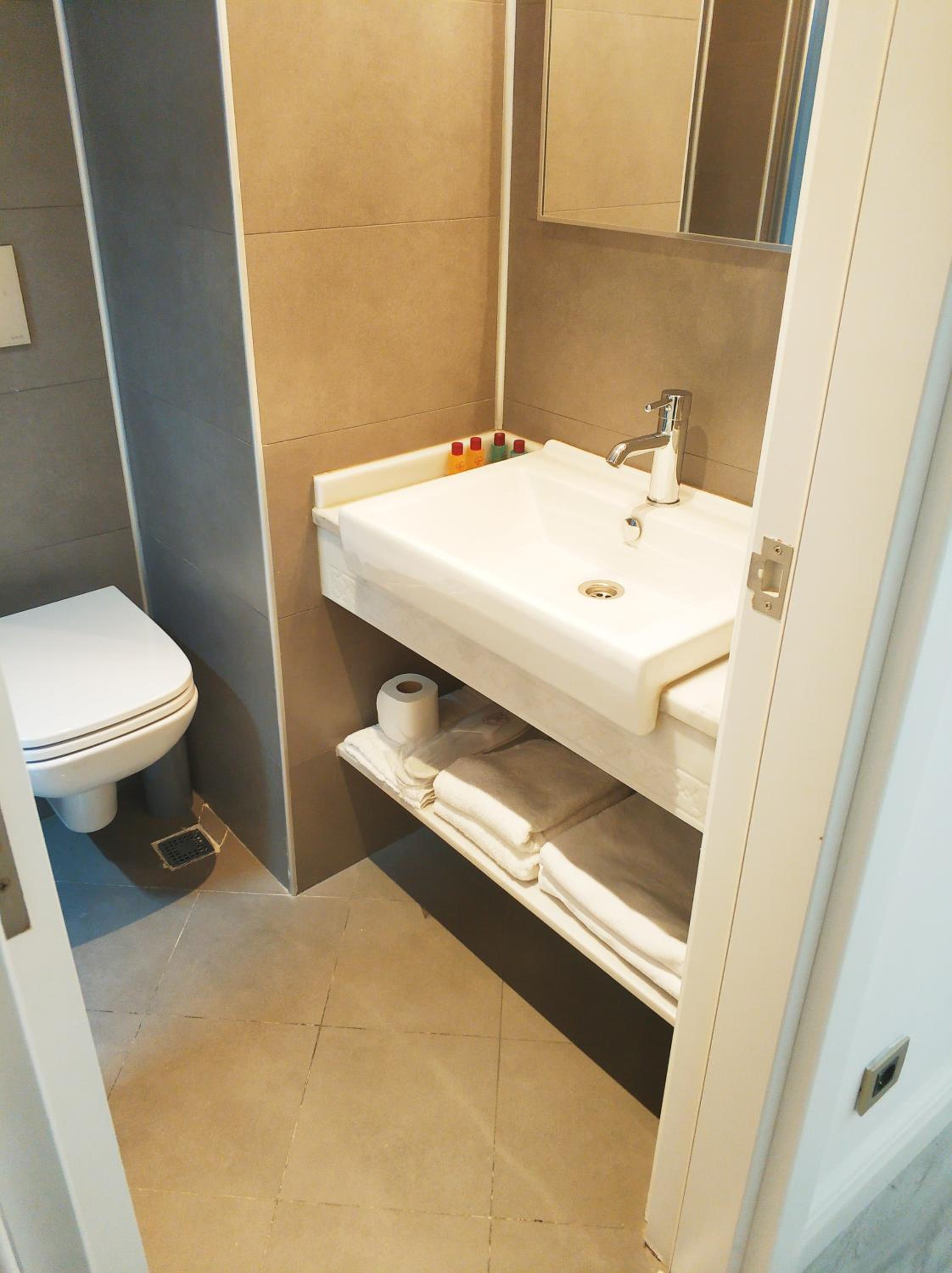И, как отмечала выше, учитывайте, что номер очень маленький- нет ни полок, ни где повесить одежду просушить ( мы сильно промокли под дождем- я вешала куртки просто на дверцы шкафа).