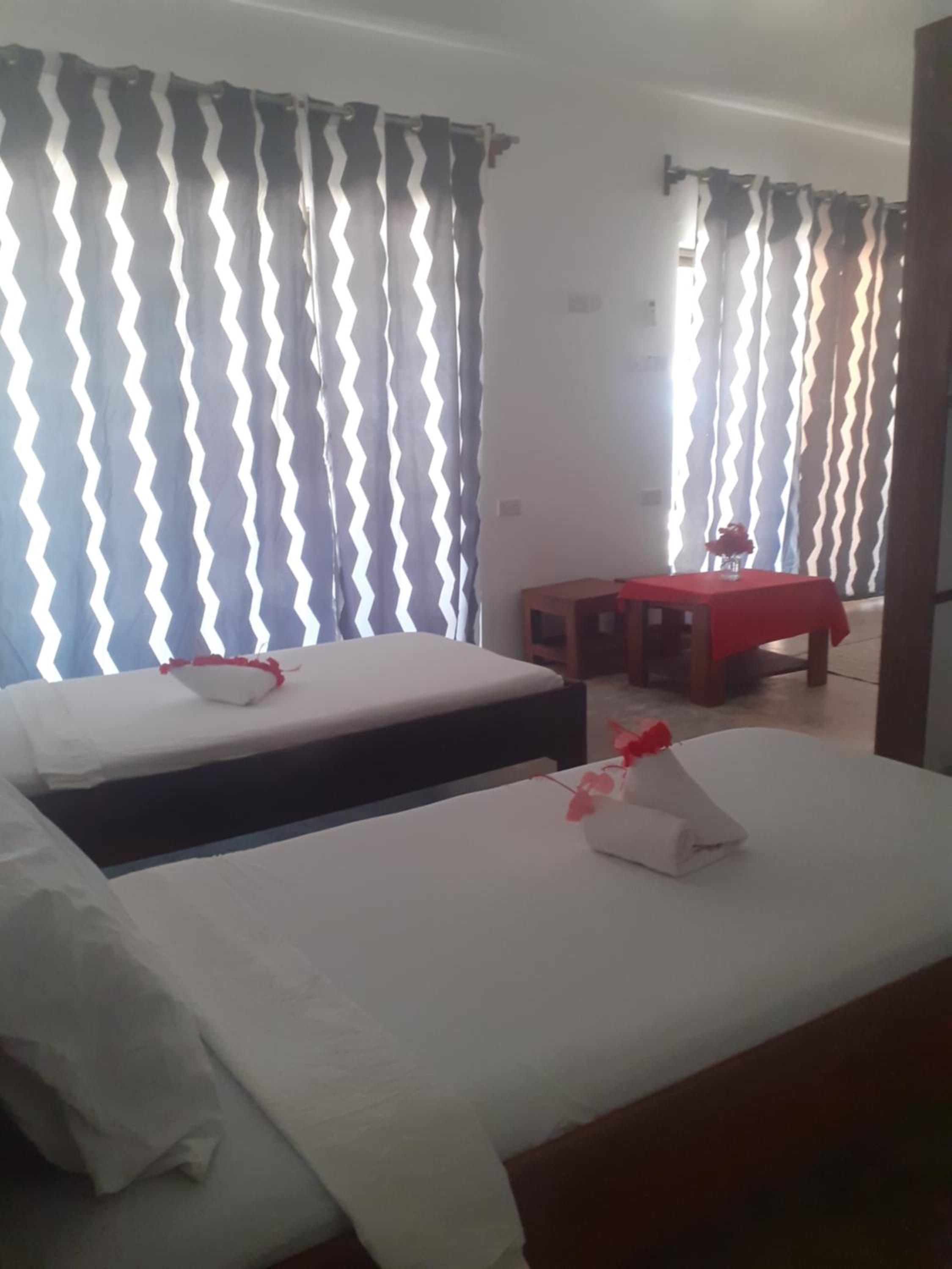 Abbiamo pagato due notti ma ne abbiamo fatta una sola, non ci hanno voluto dare la camera pagata e confermata da booking chi ha fatto le veci della proprietaria è veramente maleducata per come ha trattato noi e il ragazzo che ci ha accolto ci ha rifilato una stanza piccola e a ridosso della strada con i camion che sembravano ci entrassero dentro, la porta non si chiudeva era rotta, l'aria condizionata non si poteva gestire era tarata a 26 gradi e faceva caldo, il water era all'aperto senza una copertura e ha pure piovuto, sporco, tutto sporco, in un mese di Zanzibar questo è stato il posto peggiore , peccato perché avrei voluto passare la fine della vacanza qui prolungando anche le notti ma alla fine ci ho rimesso 60 USD non merita affatto quei soldi