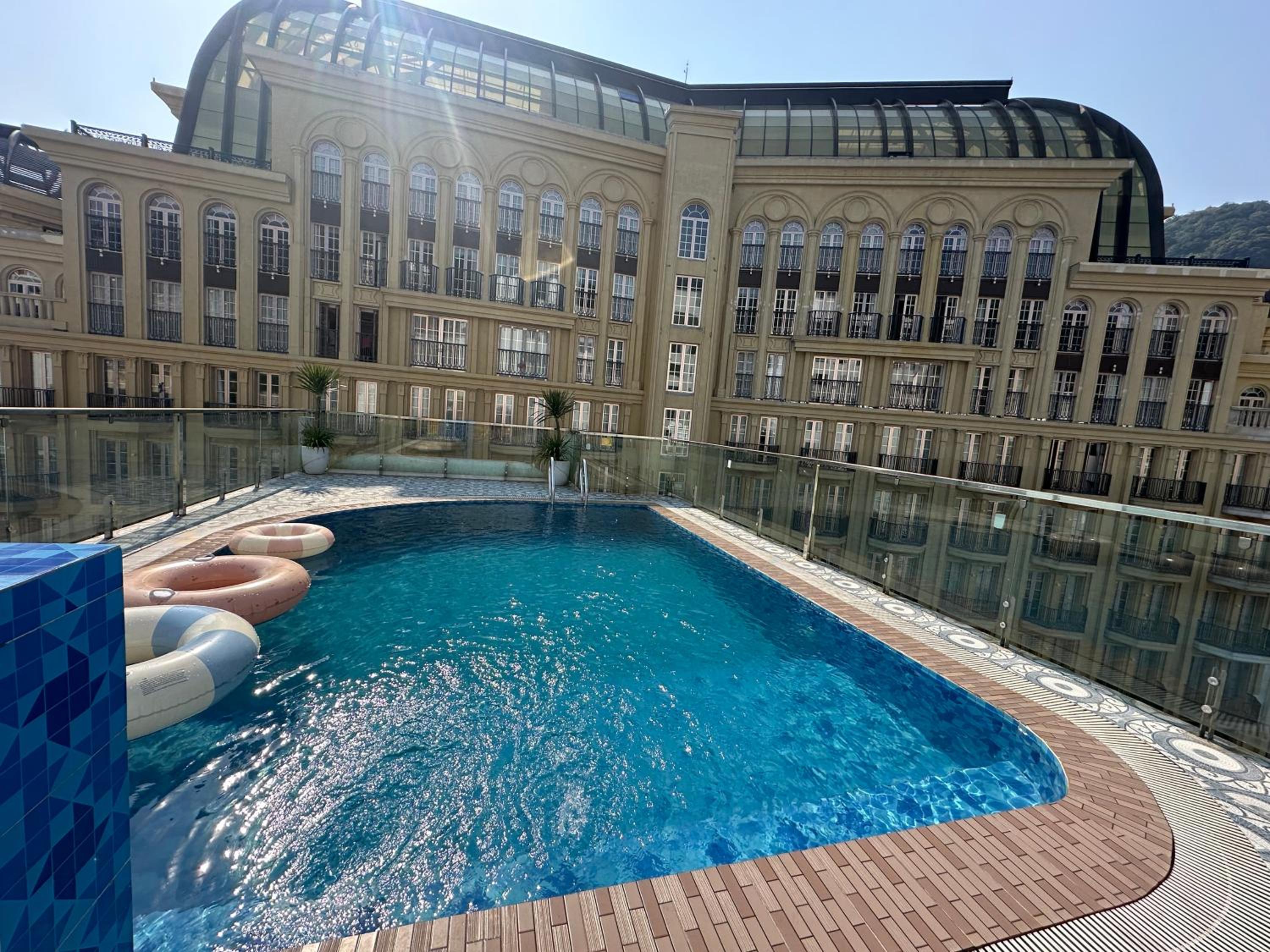 Luxurious Outdoor Swimming Pool: Enjoy a refreshing dip in our outdoor swimming pool, perfect for relaxation and leisure.